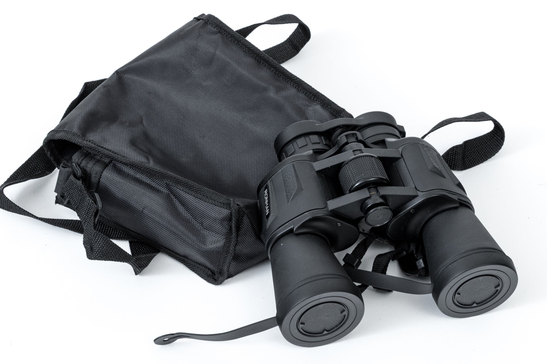 Ronhan 20 X 50 56m/1000m binoculars with lens caps for both ends. With its case