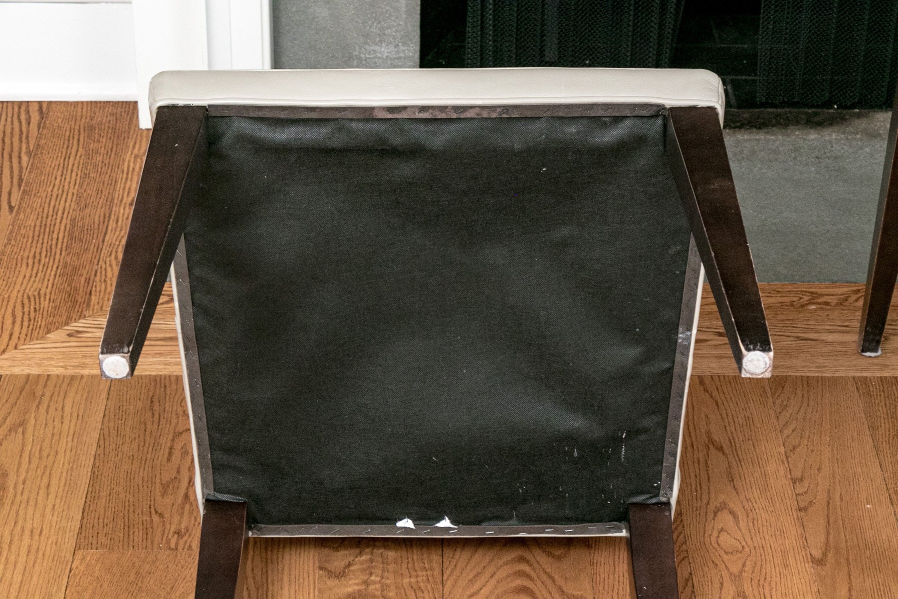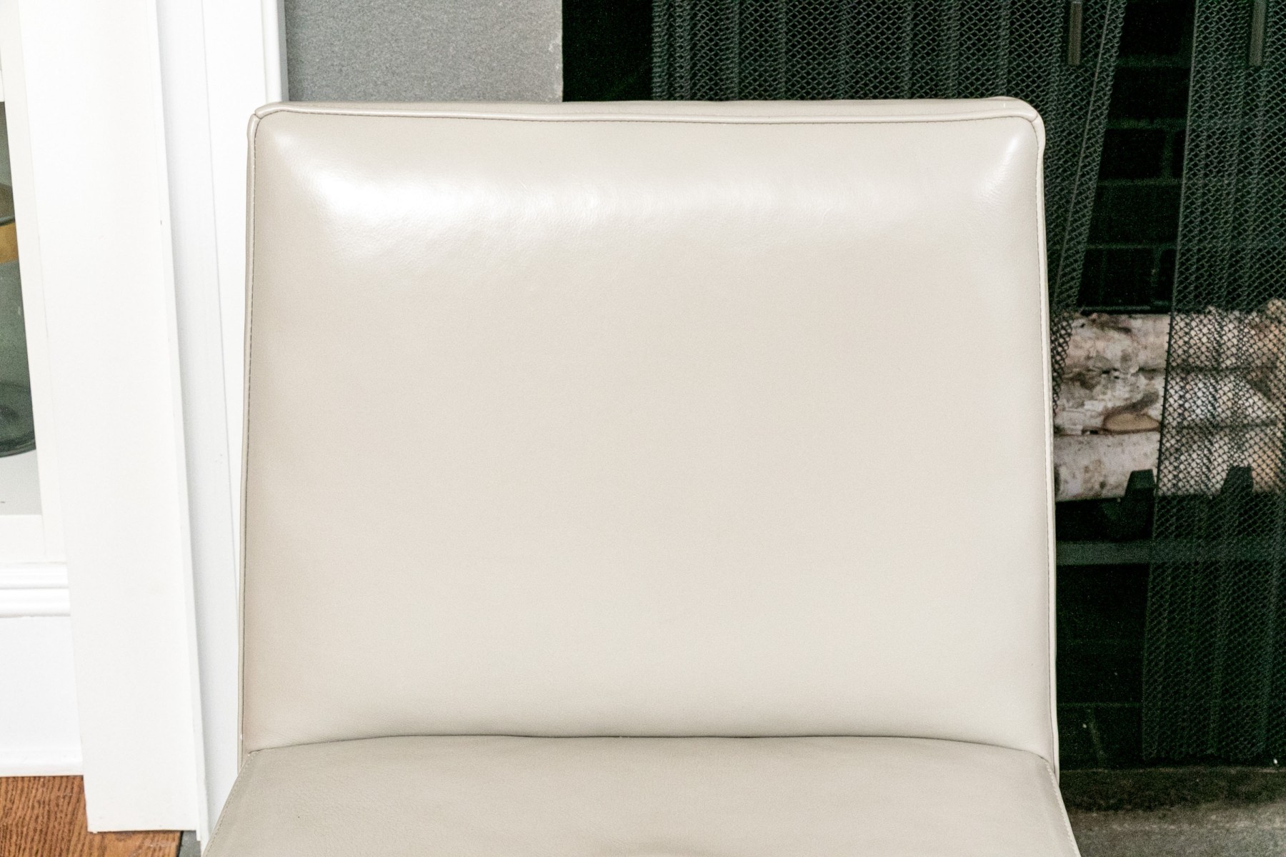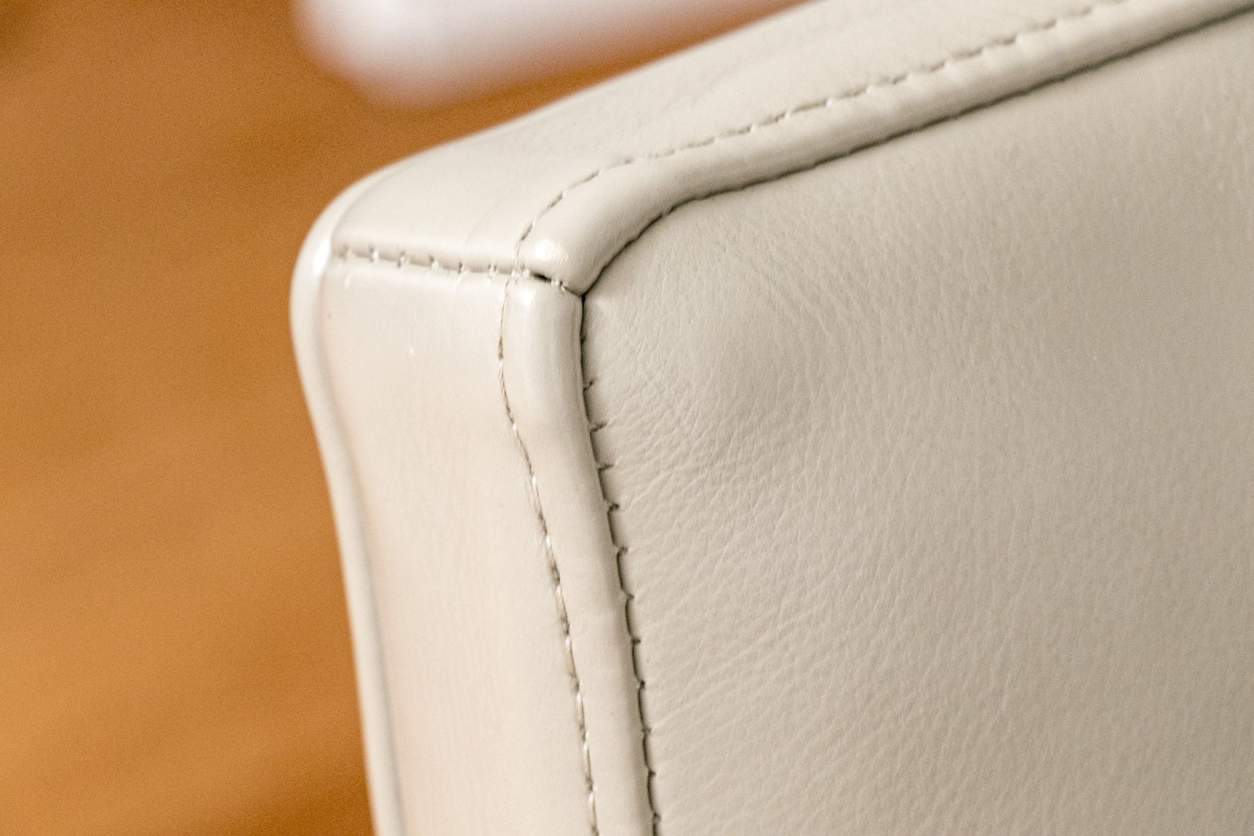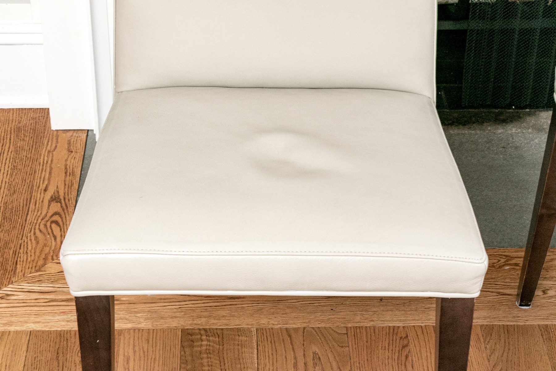 These faux leather white upholstered side chairs would make a great addition to any table to add a nice and sleek look. The chairs are raised on tapering legs.
