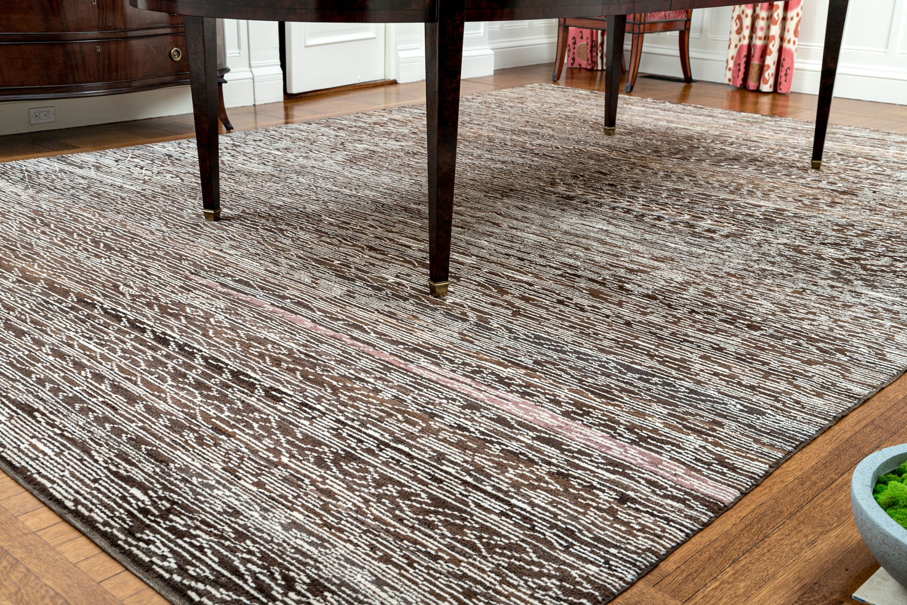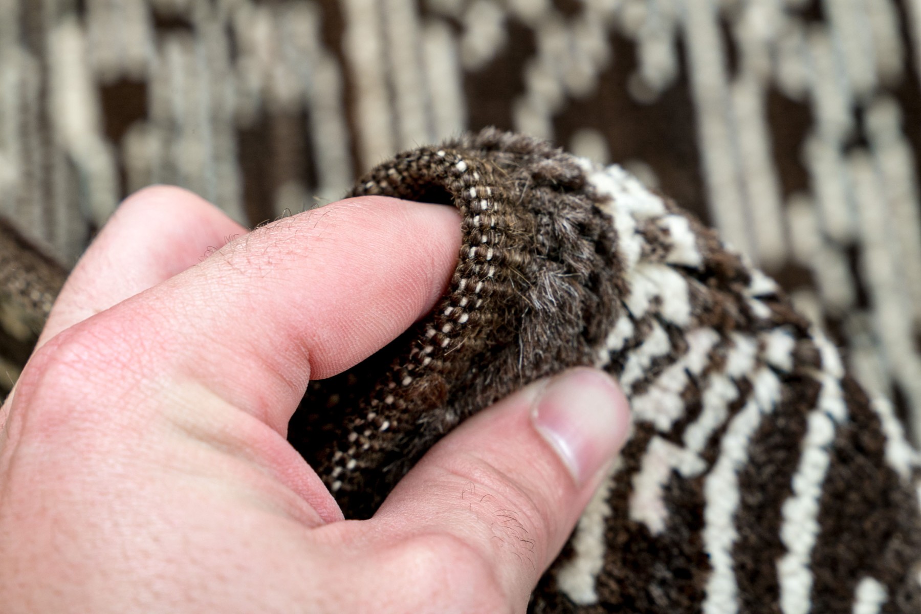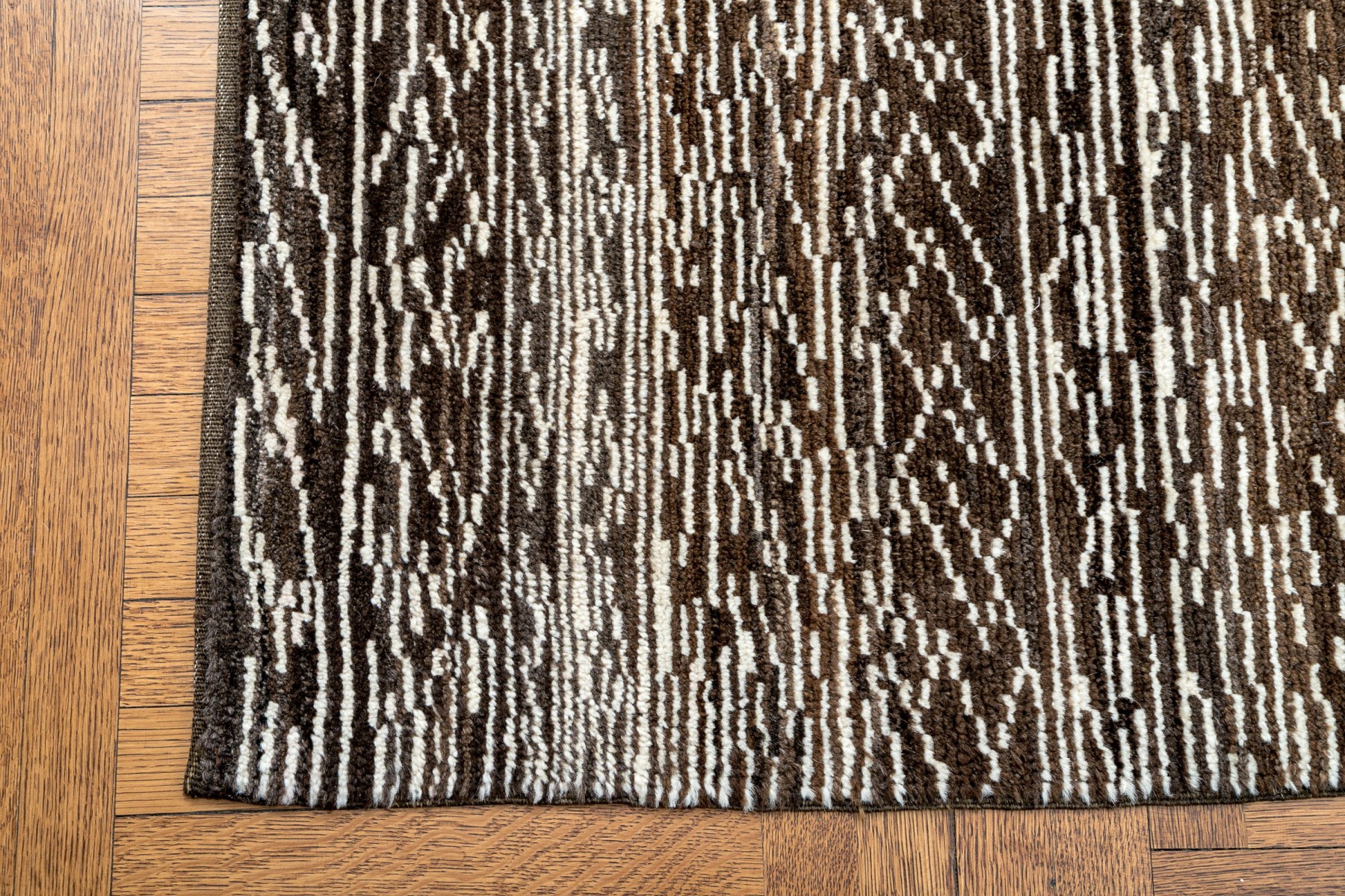 Brown and cream colorway with linear pattern. Original purchase price +$15,300. Not noted issues.