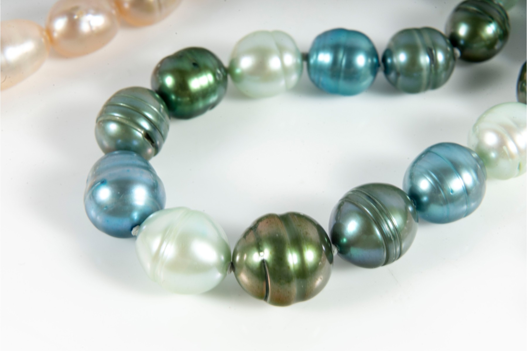 This beautiful set of rose pink and green pearl necklaces, accompanied by a matching bracelet, offers a fresh and elegant take on classic pearl jewelry.
