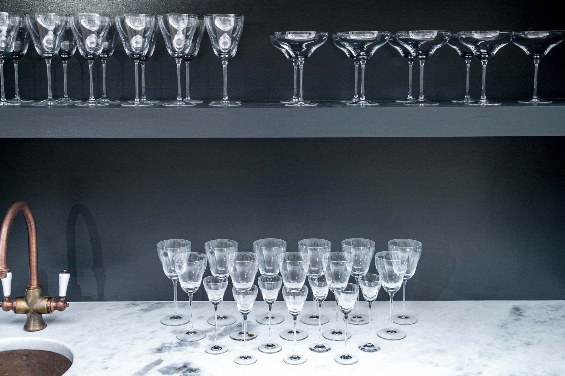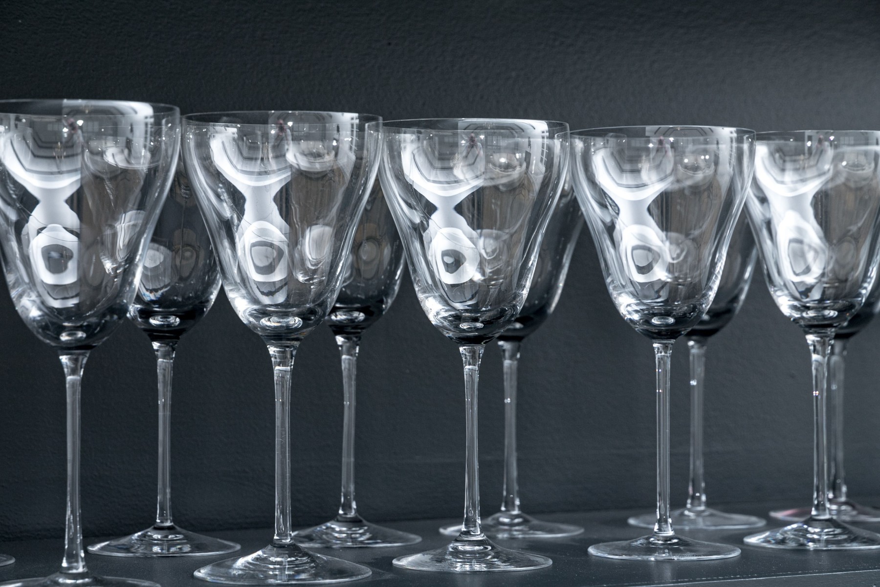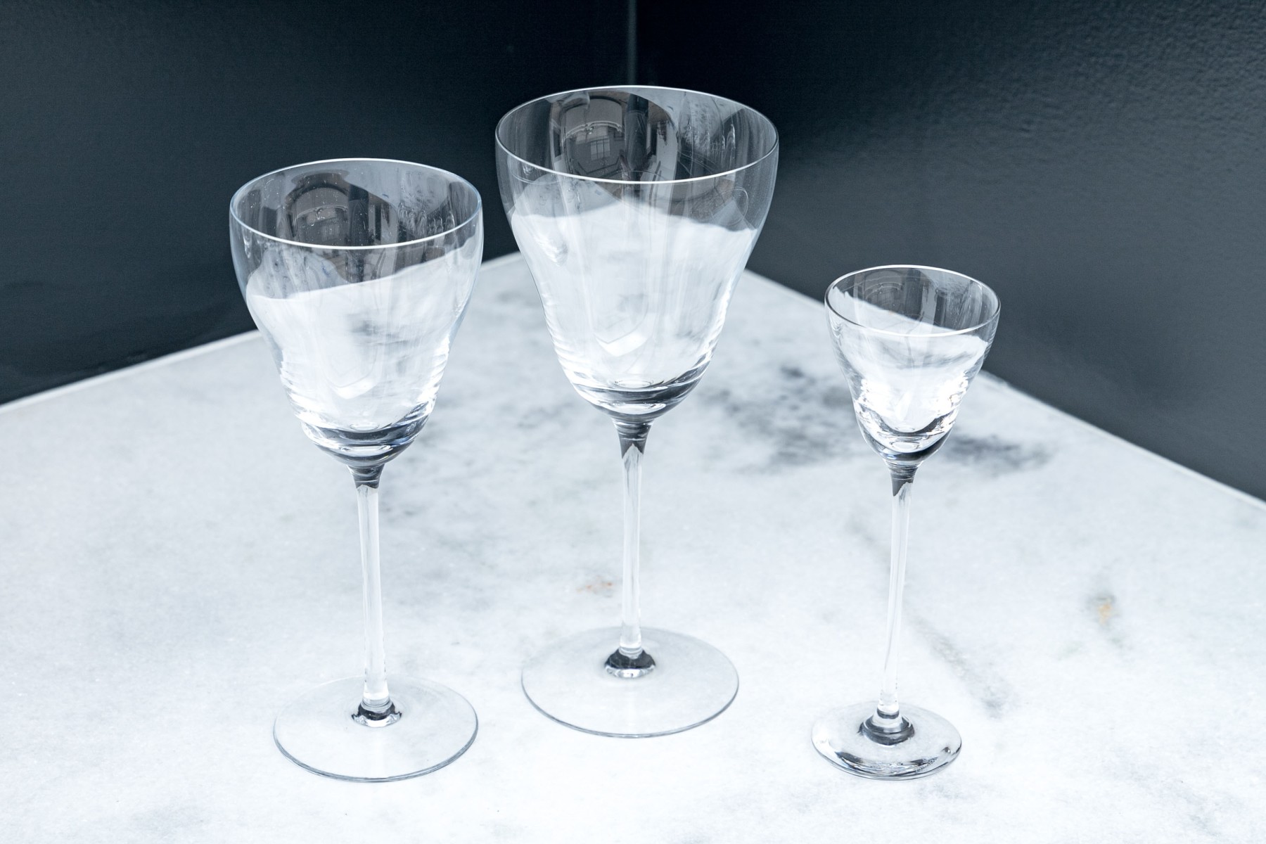The white wine goblets are of two very slightly different sizes. Overall very minor wear commensurate with age and use.