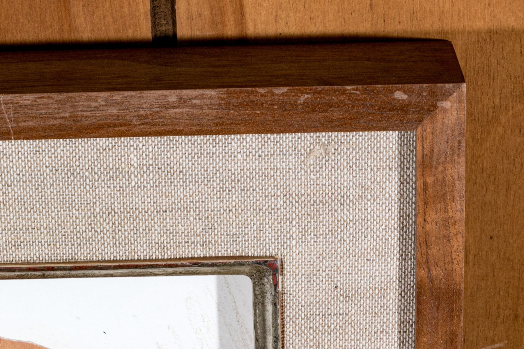 Displayed with a linen mat and a gray gilt fillet in a simple wood frame.