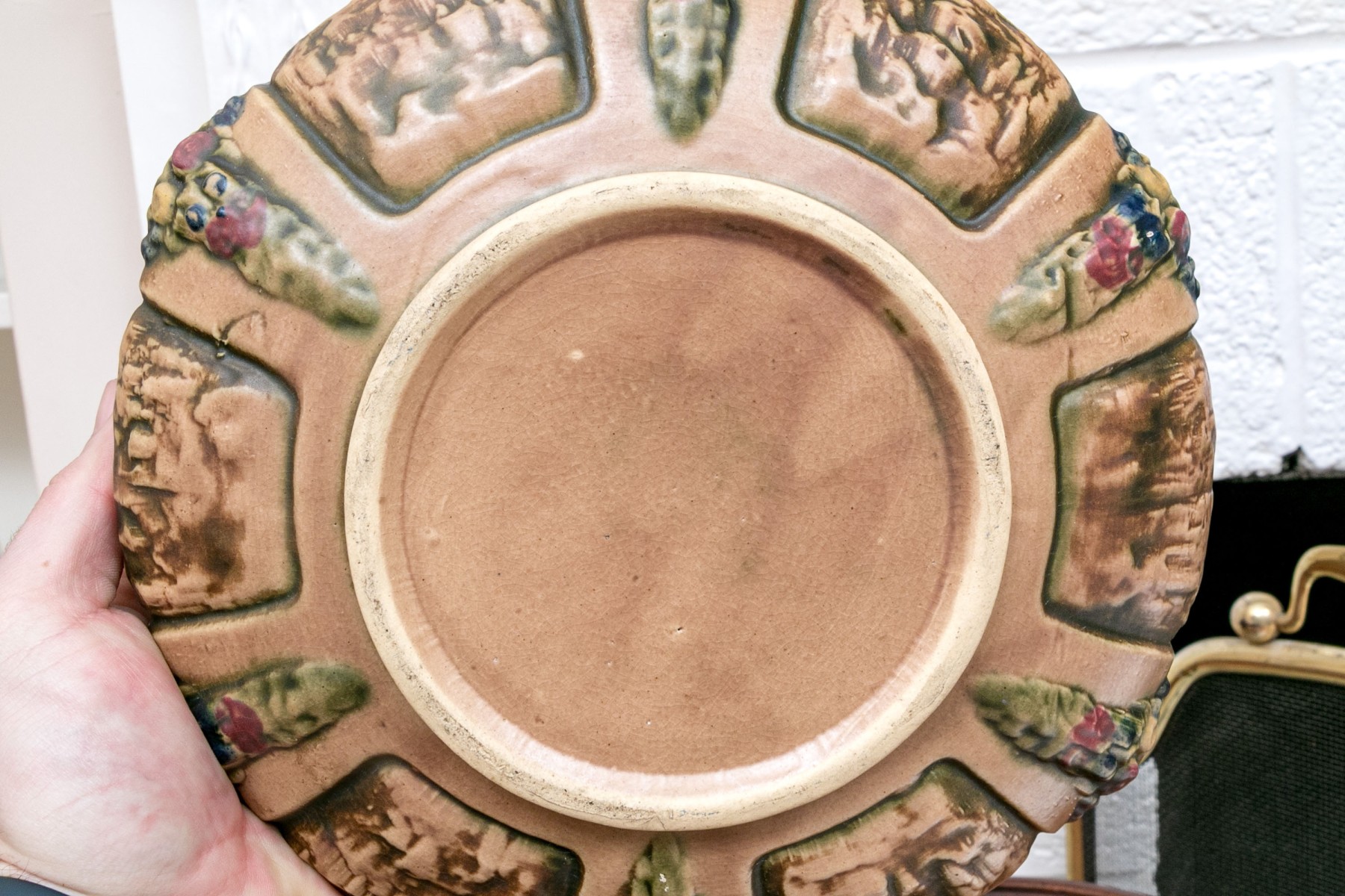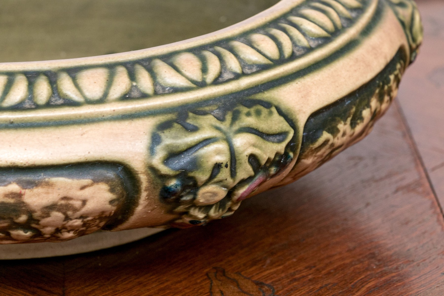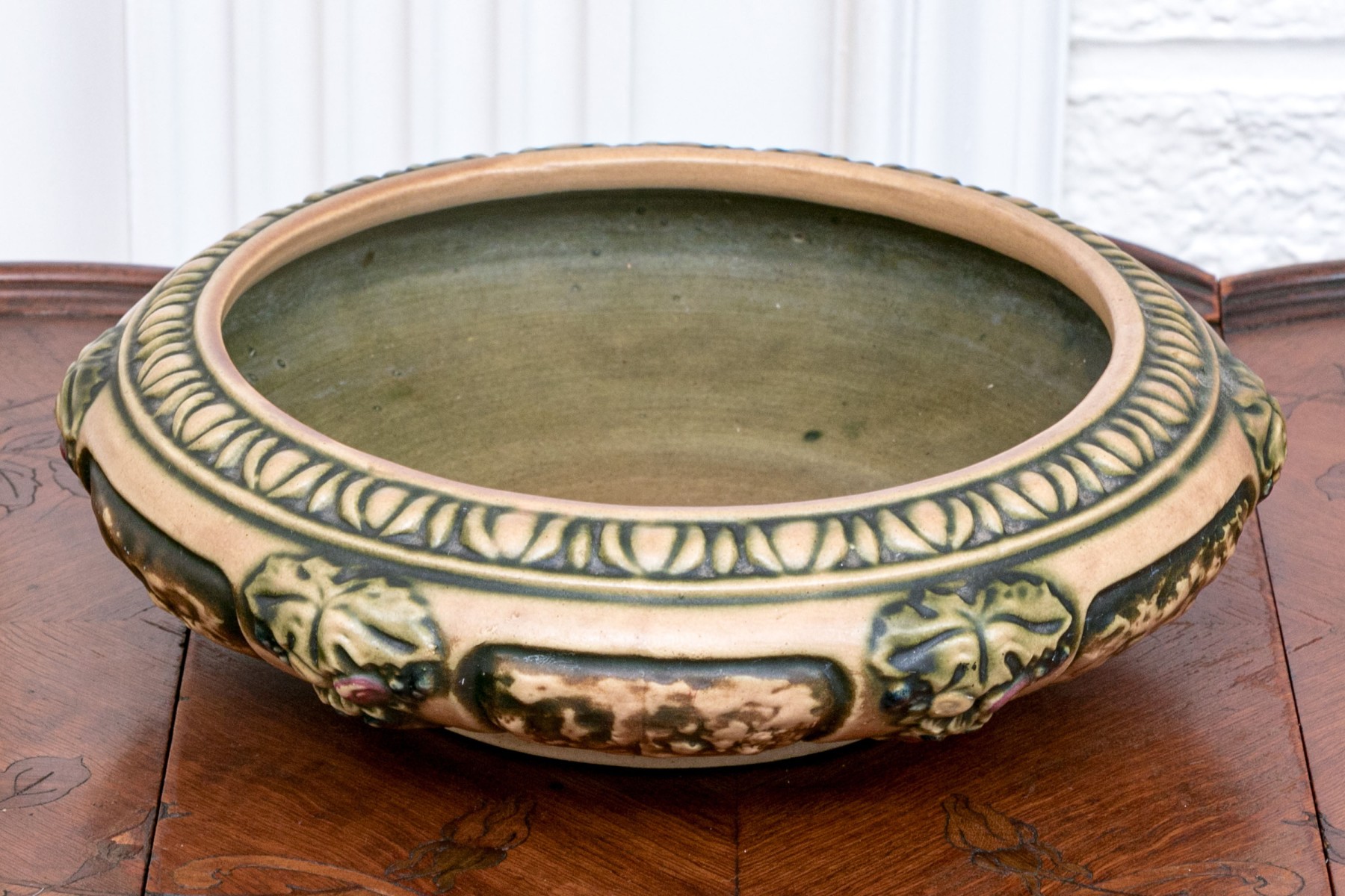 A shallow Roseville Style Florentine bowl made, possibly Roseville but unmarked.