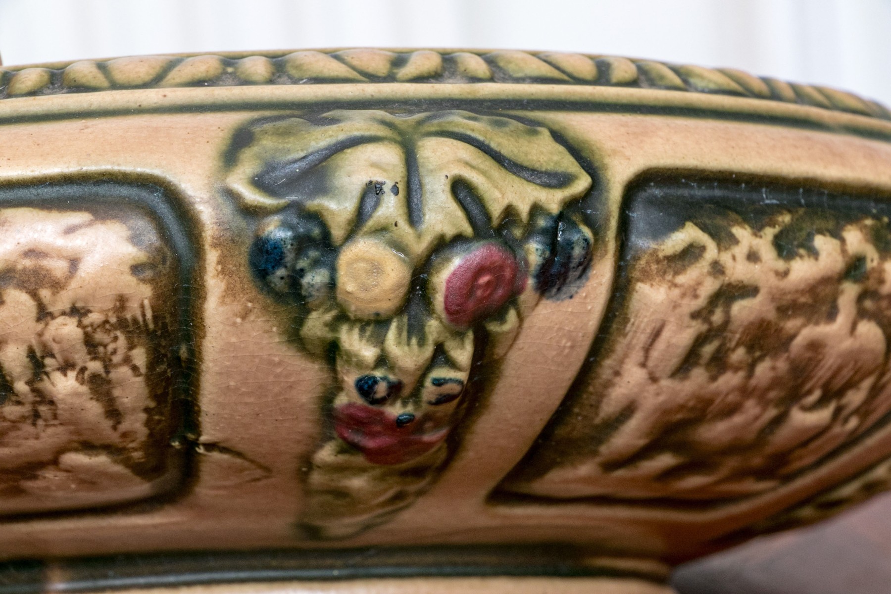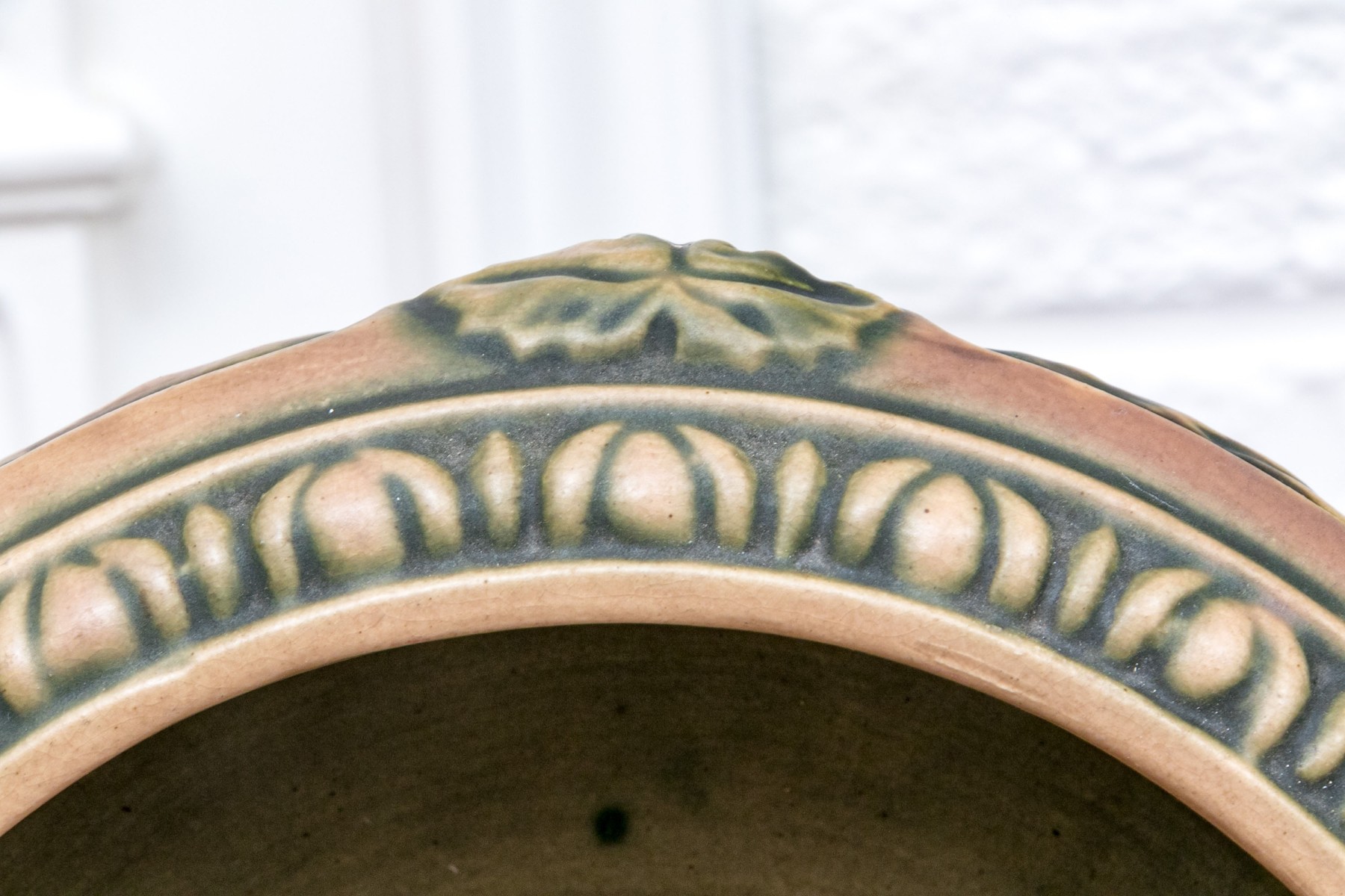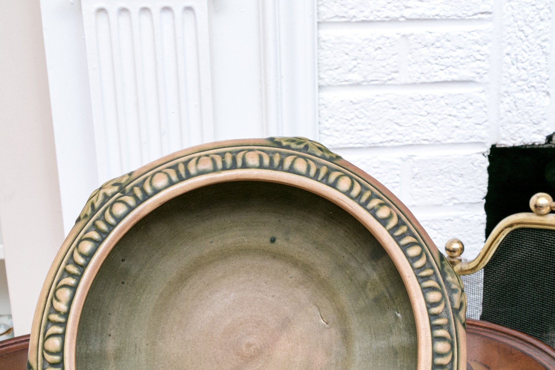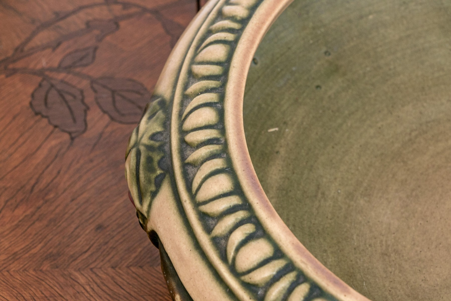 A shallow Roseville Style Florentine bowl made, possibly Roseville but unmarked.