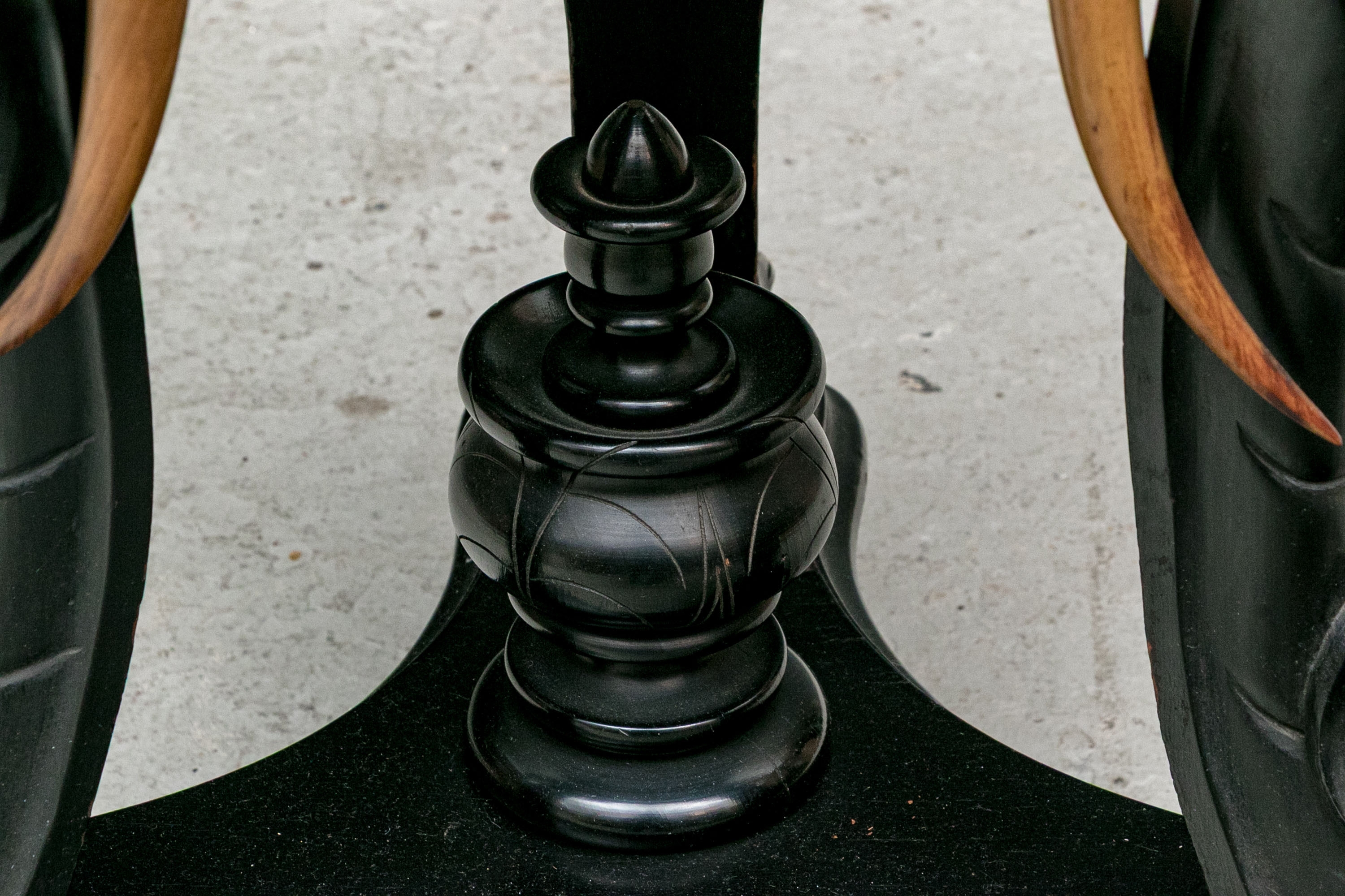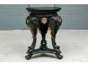 Round Carved Three Elephant Heads Ebonized Pedestal Side Table