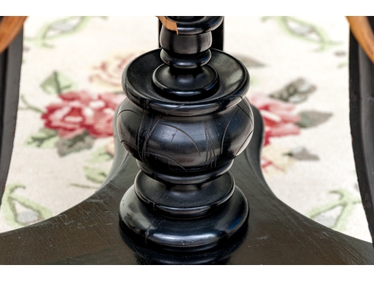 The ebonized top with moulded trim is 20 1/2" W, 30" H