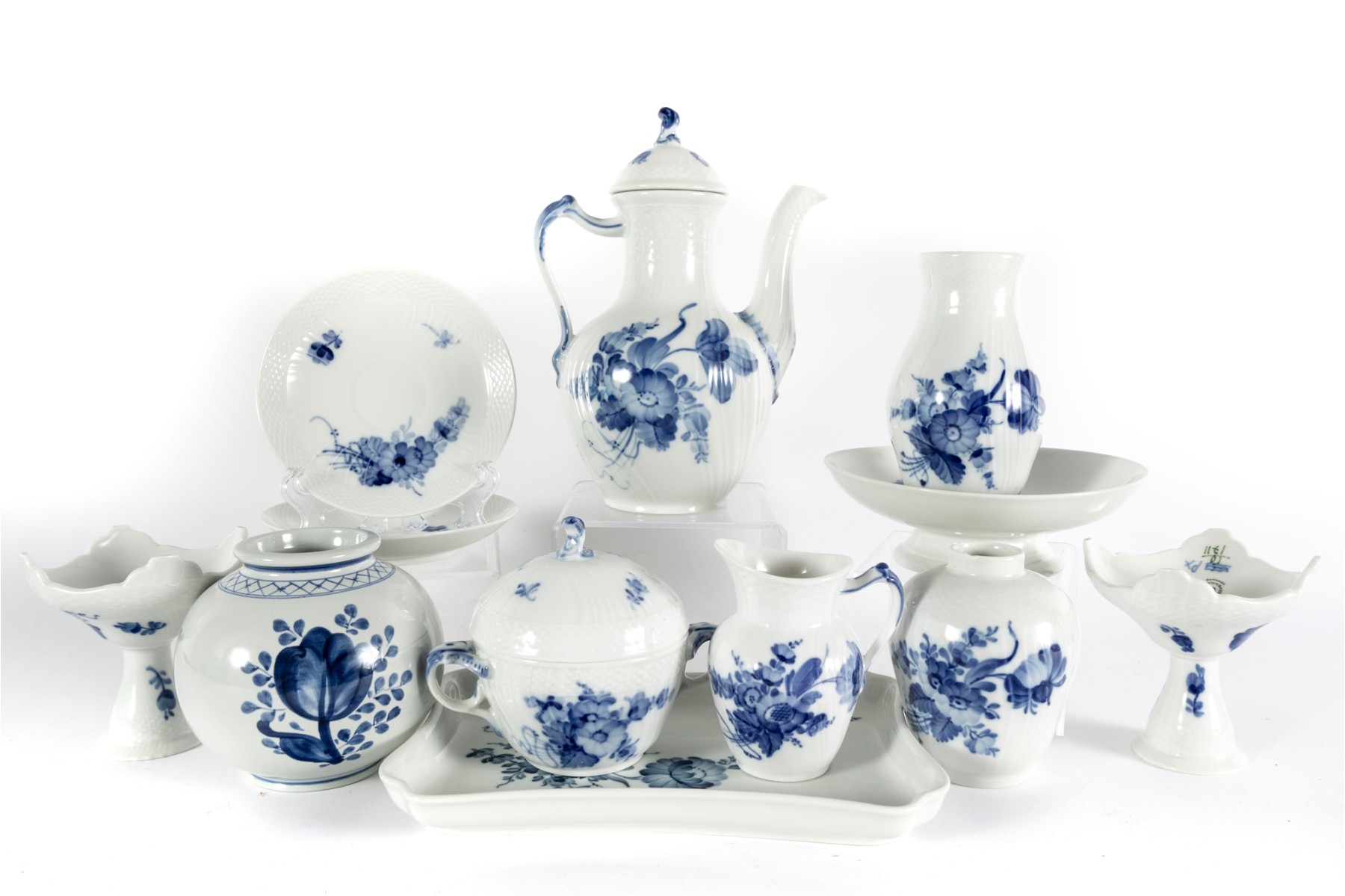 A set of Royal Copenhagen Demark porcelains -- Circa 1950's onward. Entirely hand-painted, each bouquet is individually designed and captured with a gloss finish.