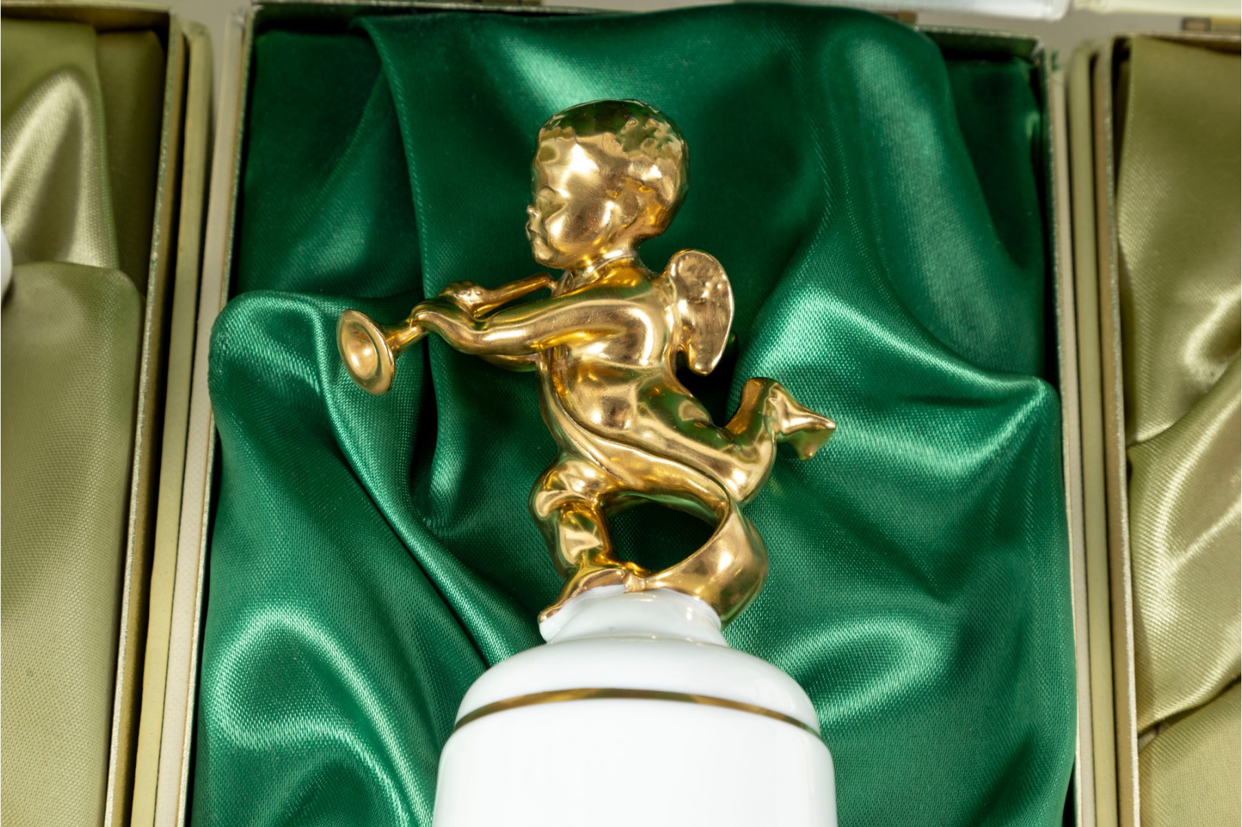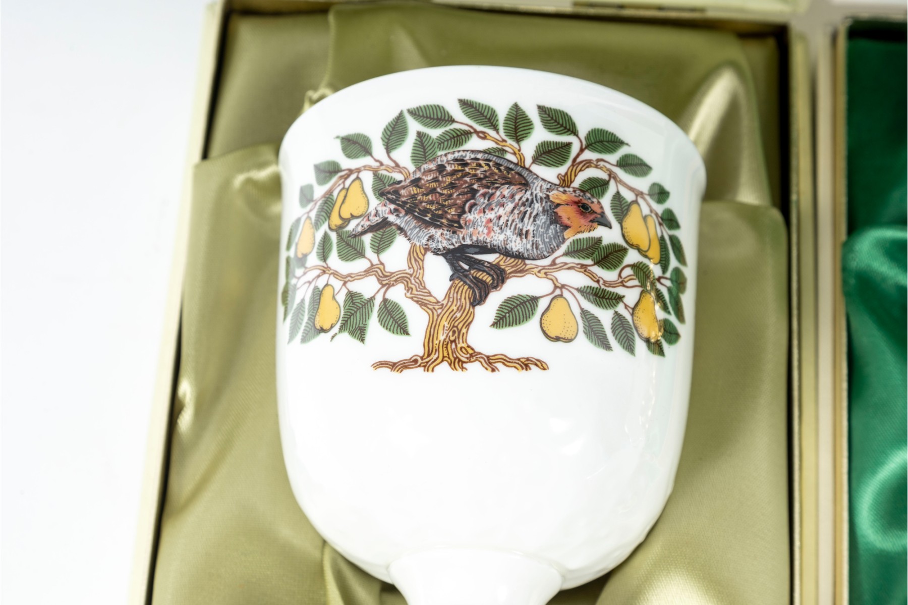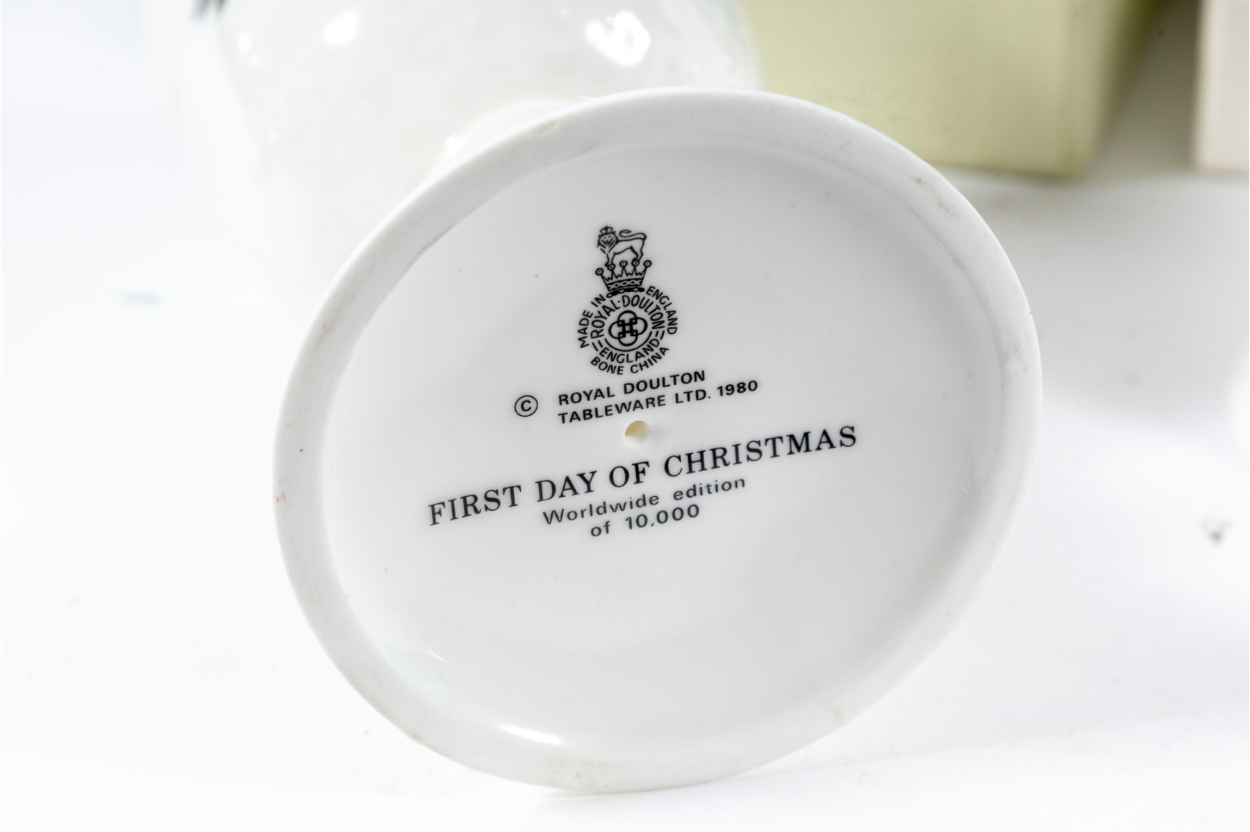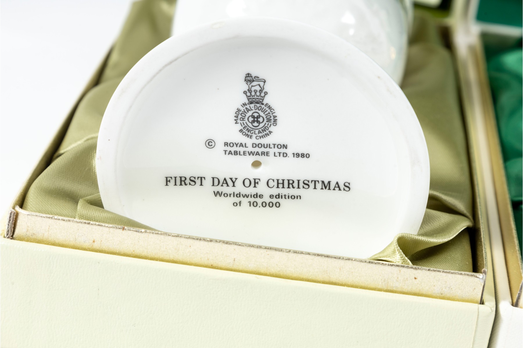 A set of three limited edition Royal Doulton porcelains. Includes two chalices from Royal Doulton's "The Twelve Days of Christmas", and one bell from "The Speech of Angels" collection. See photos for details.