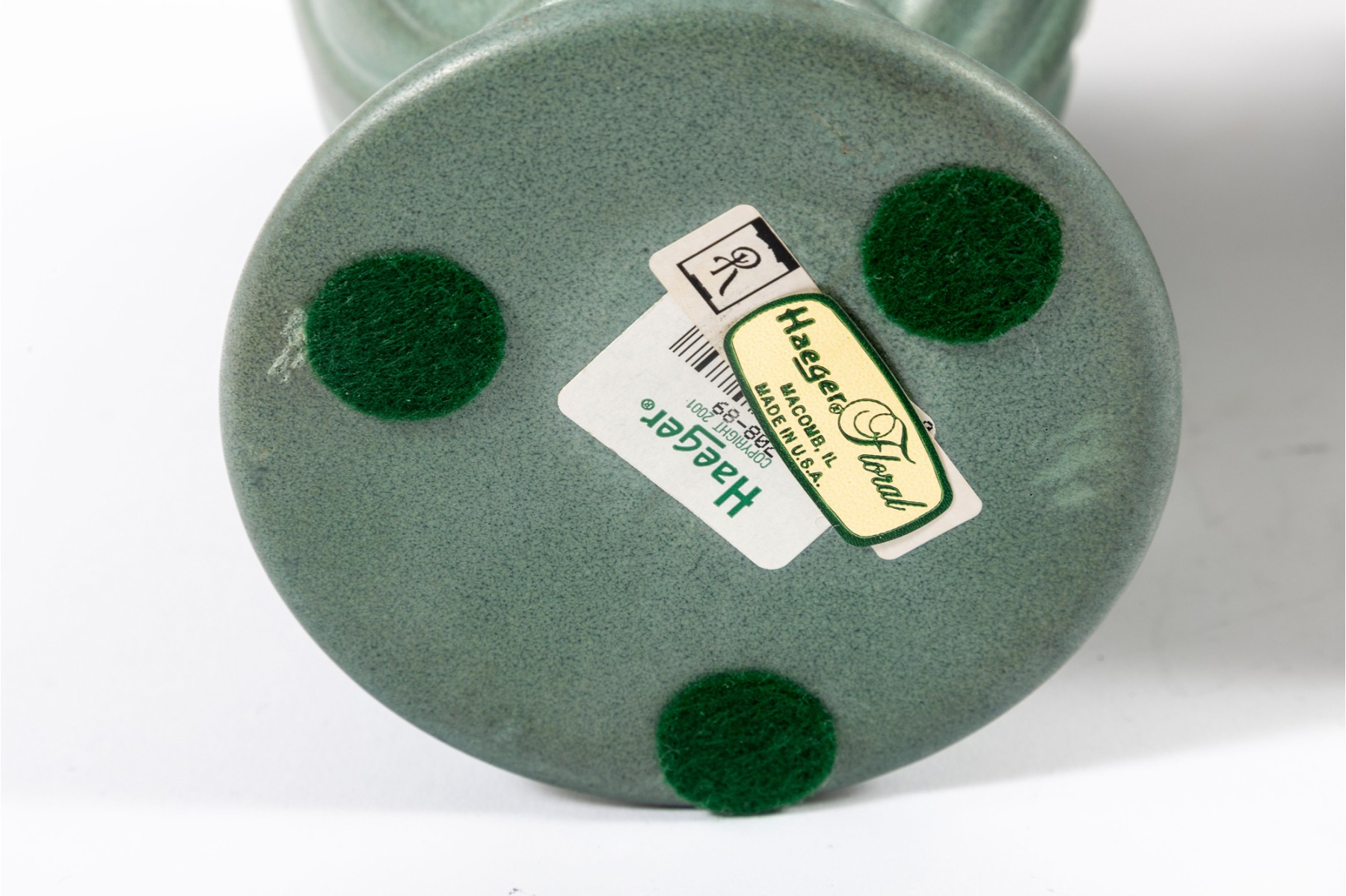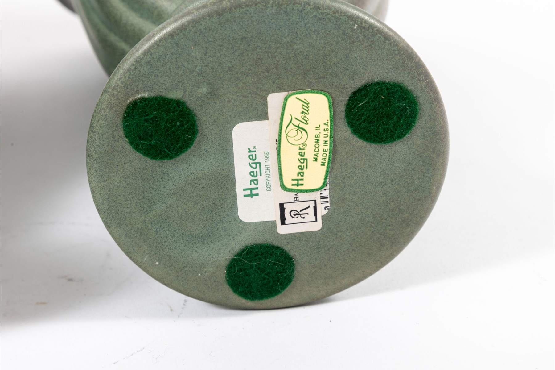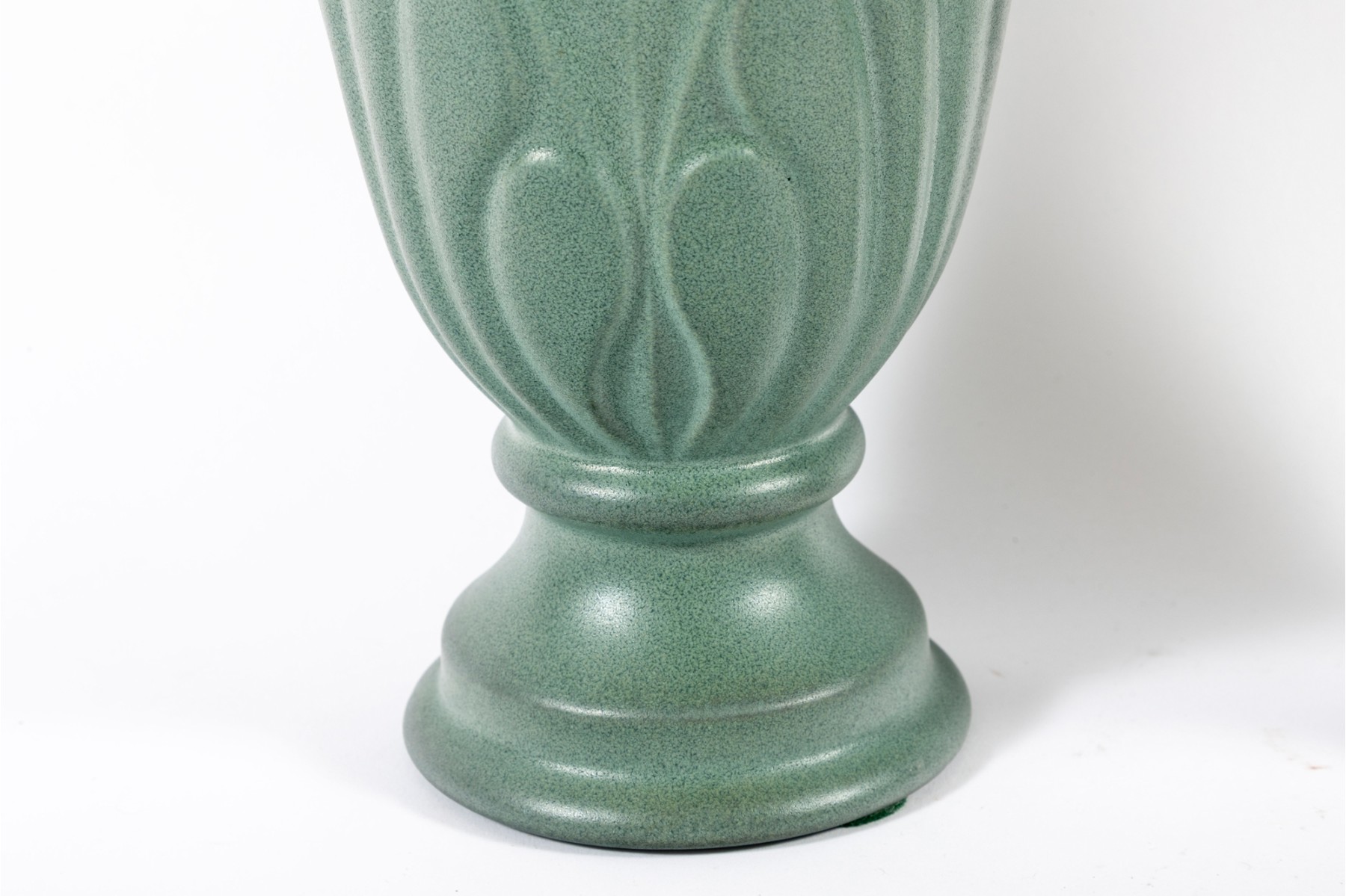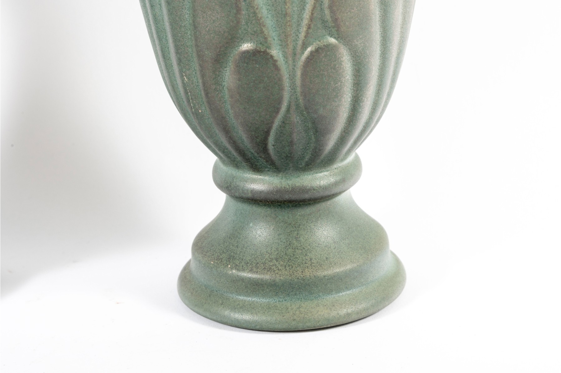 A pair of 1999 'Floral' line ceramic pottery petal vases glazed in a matte moss green.