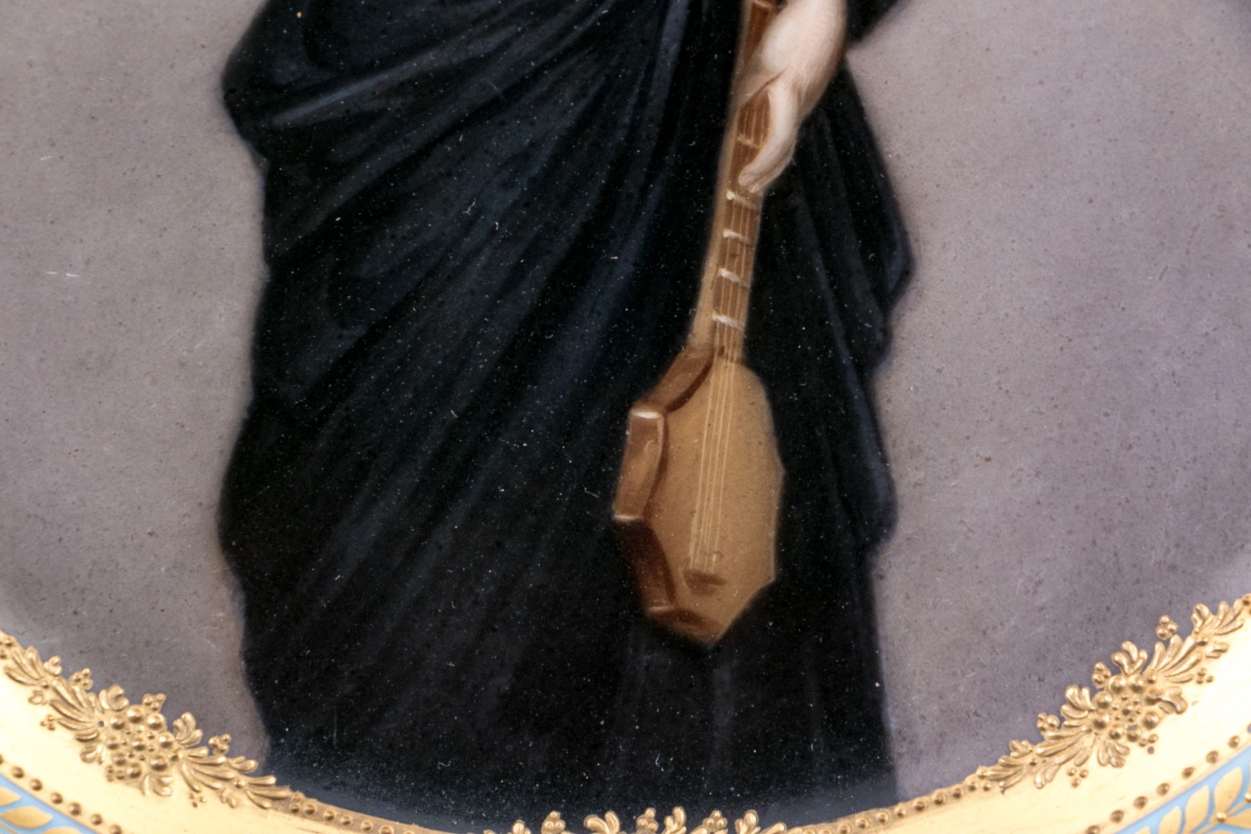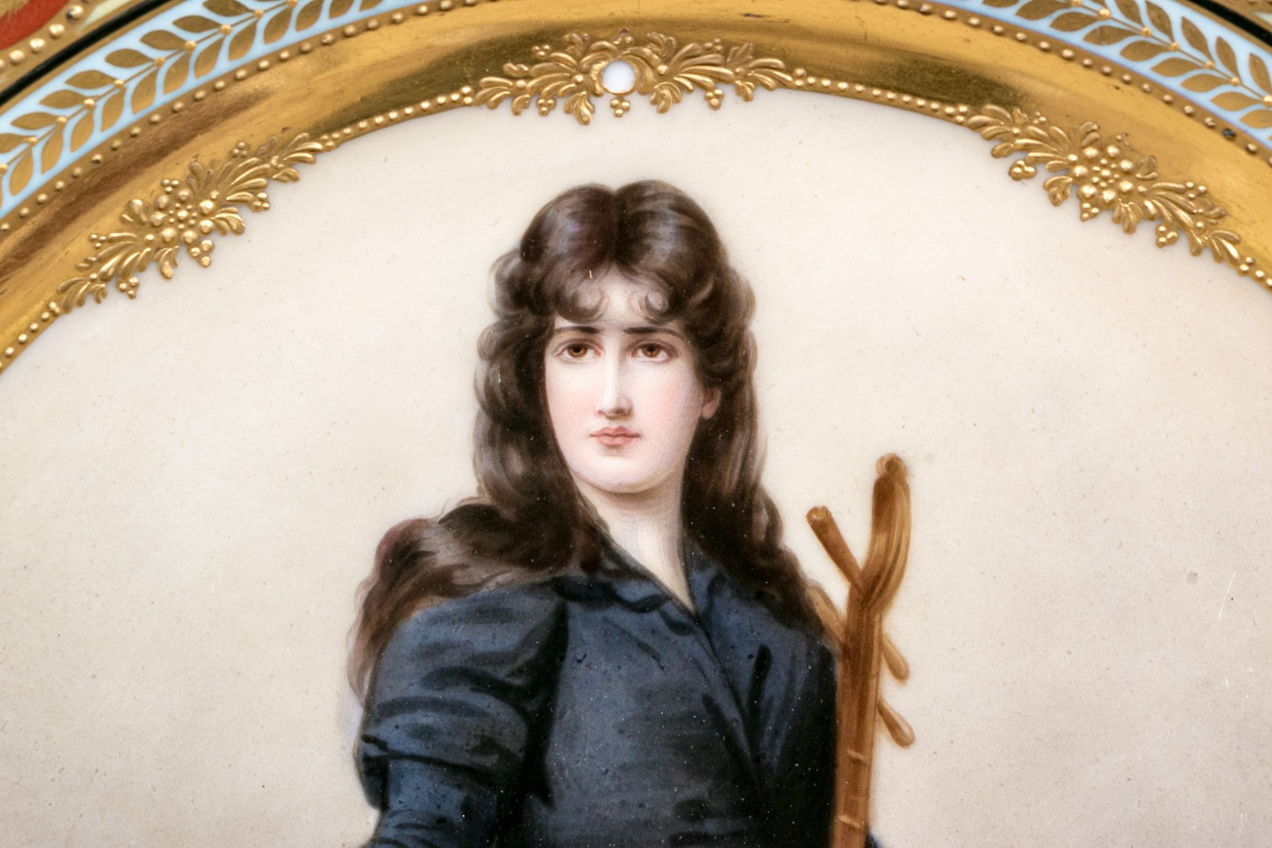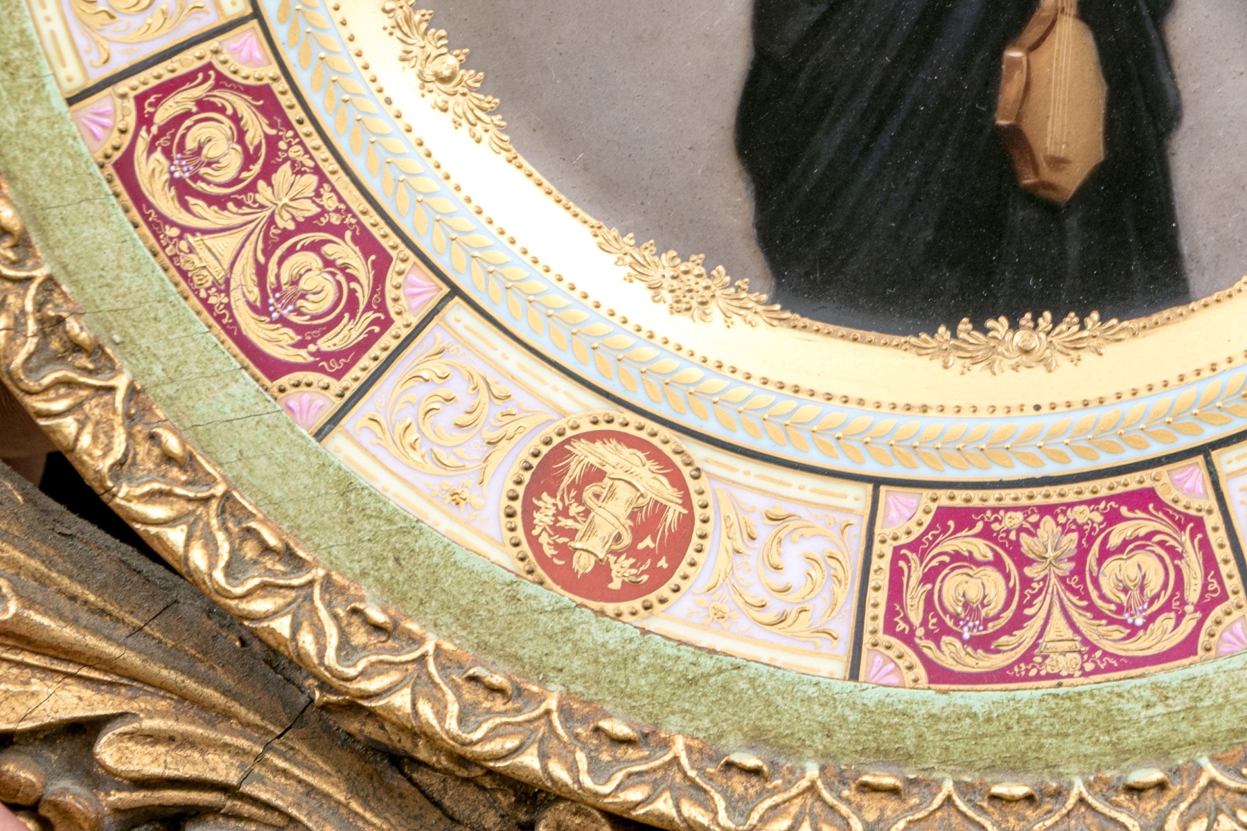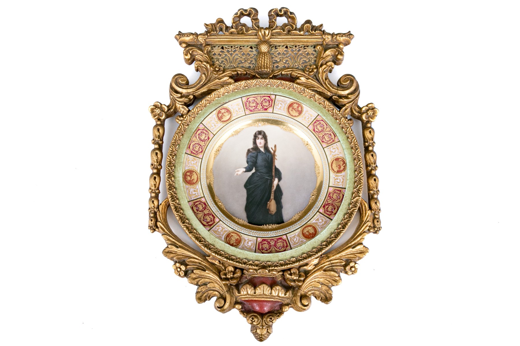 Royal Vienna marked display dish within ornate gilt finished frame.