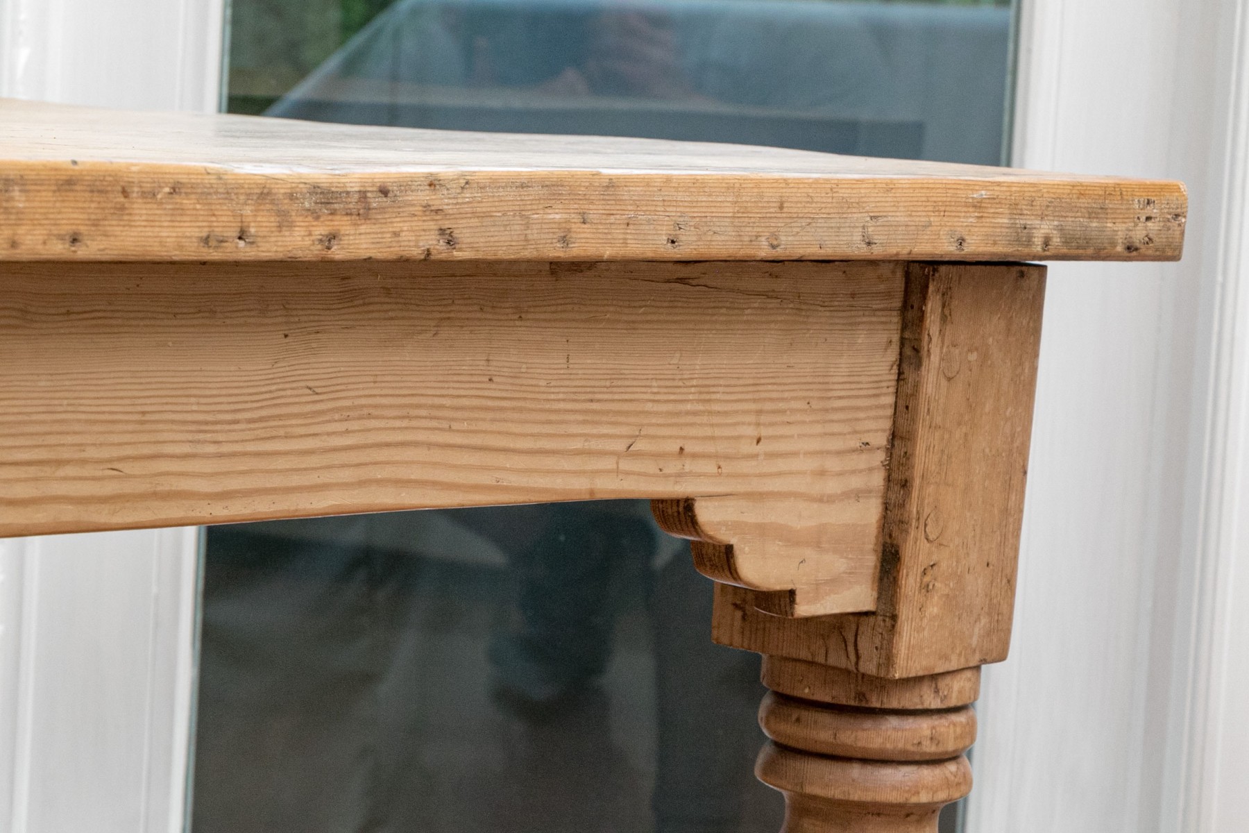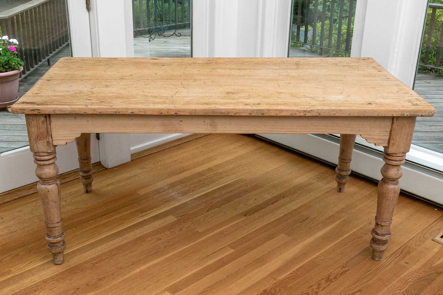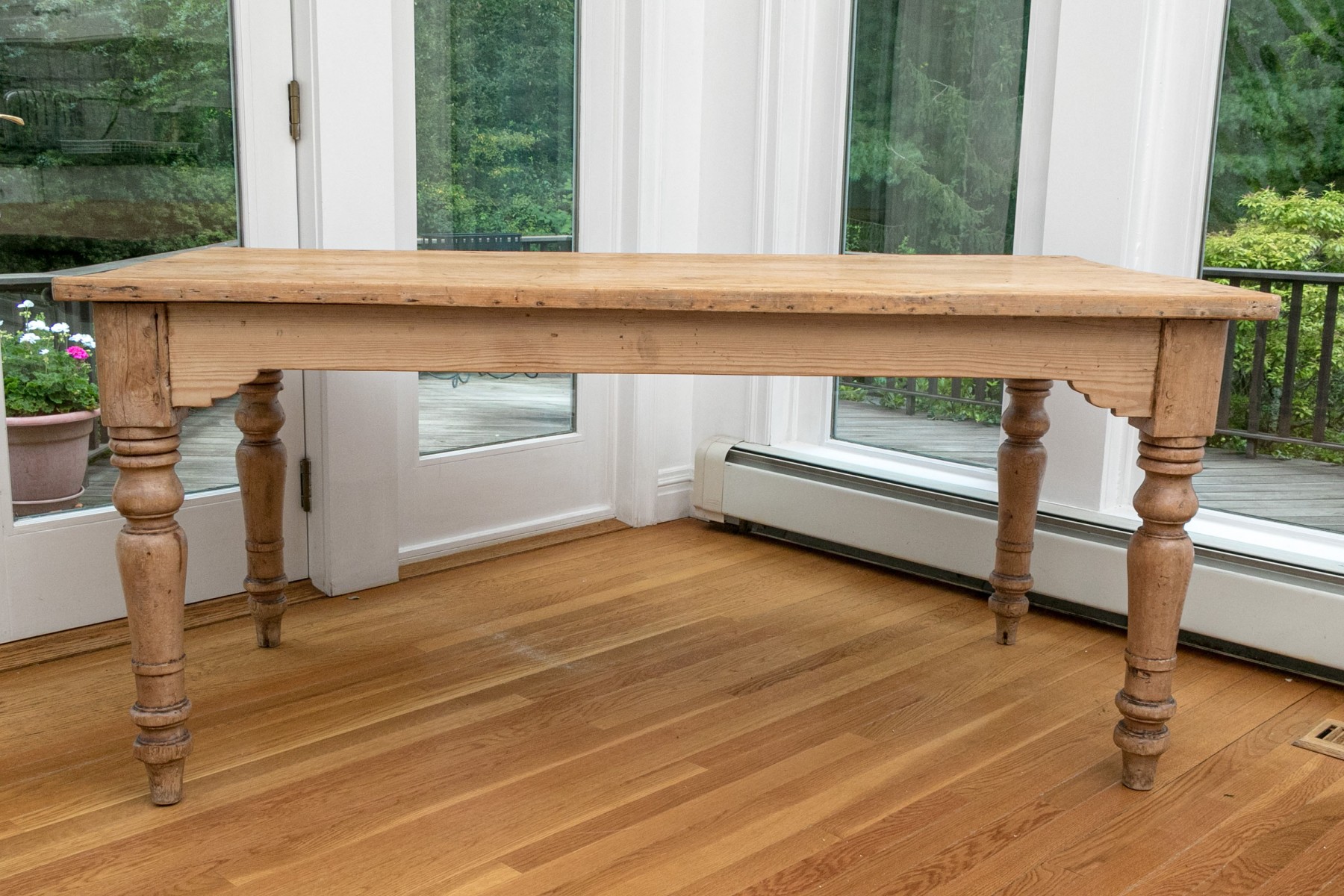 Raised on four turned legs with natural finished pine top.
