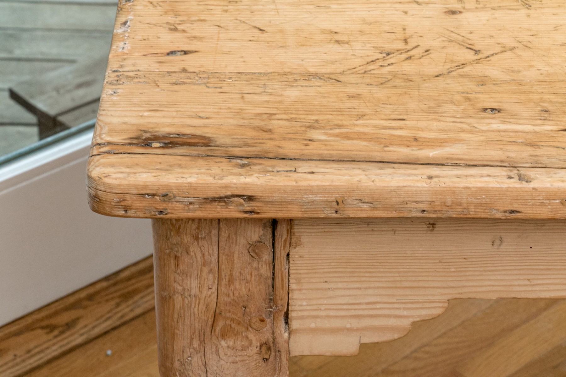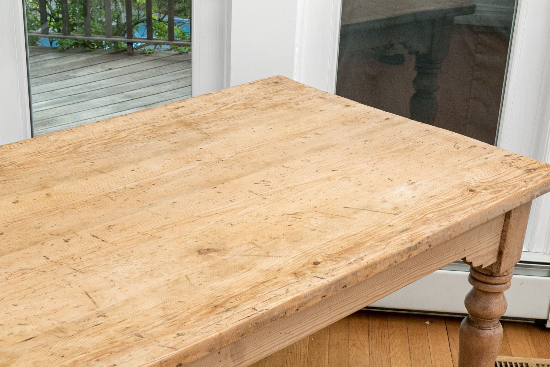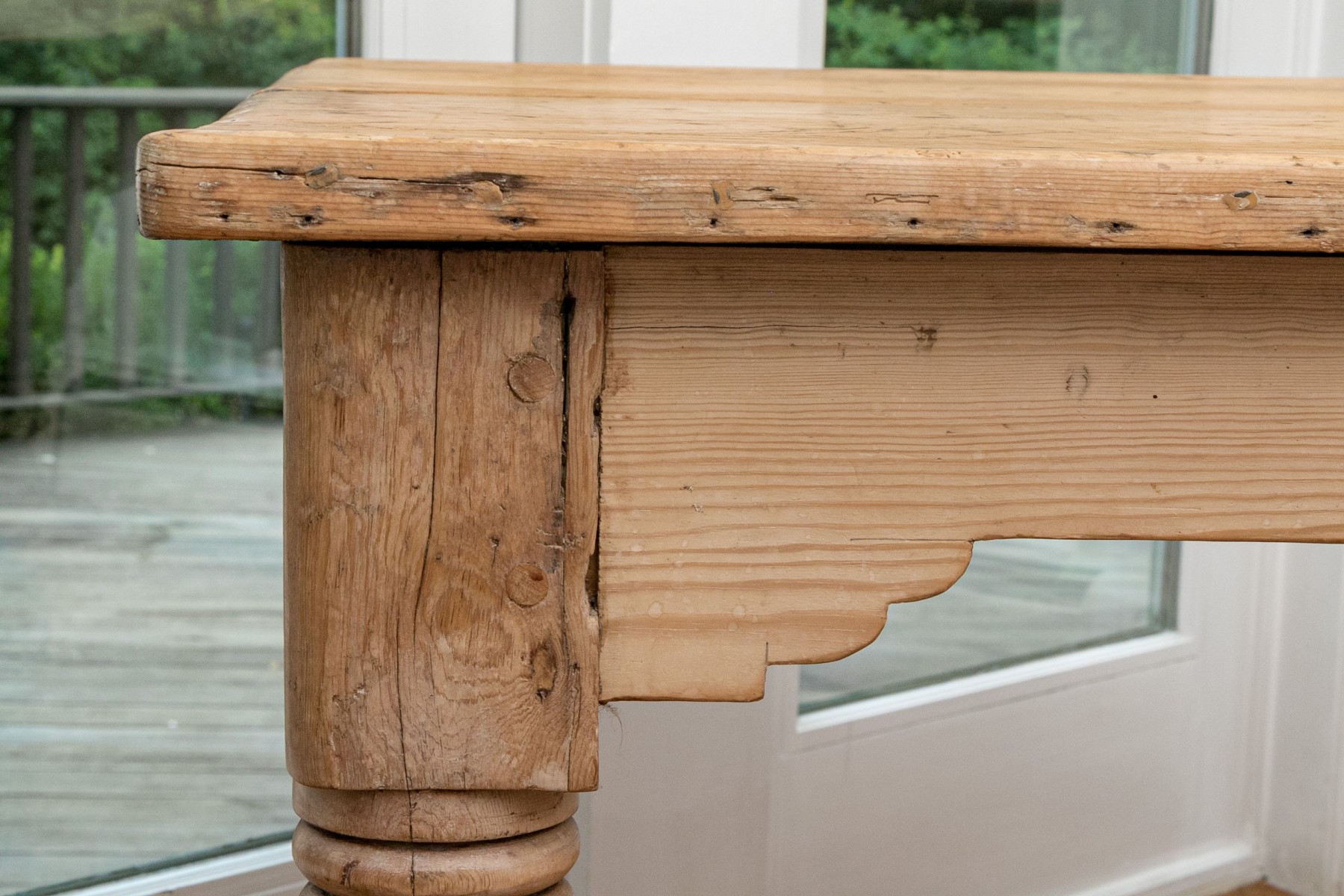 Raised on four turned legs with natural finished pine top.