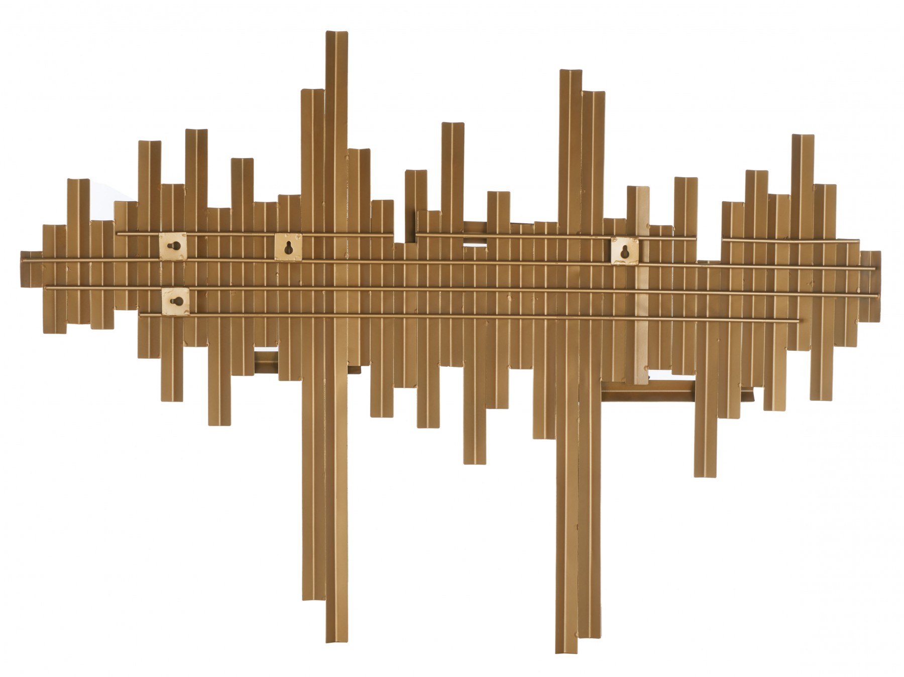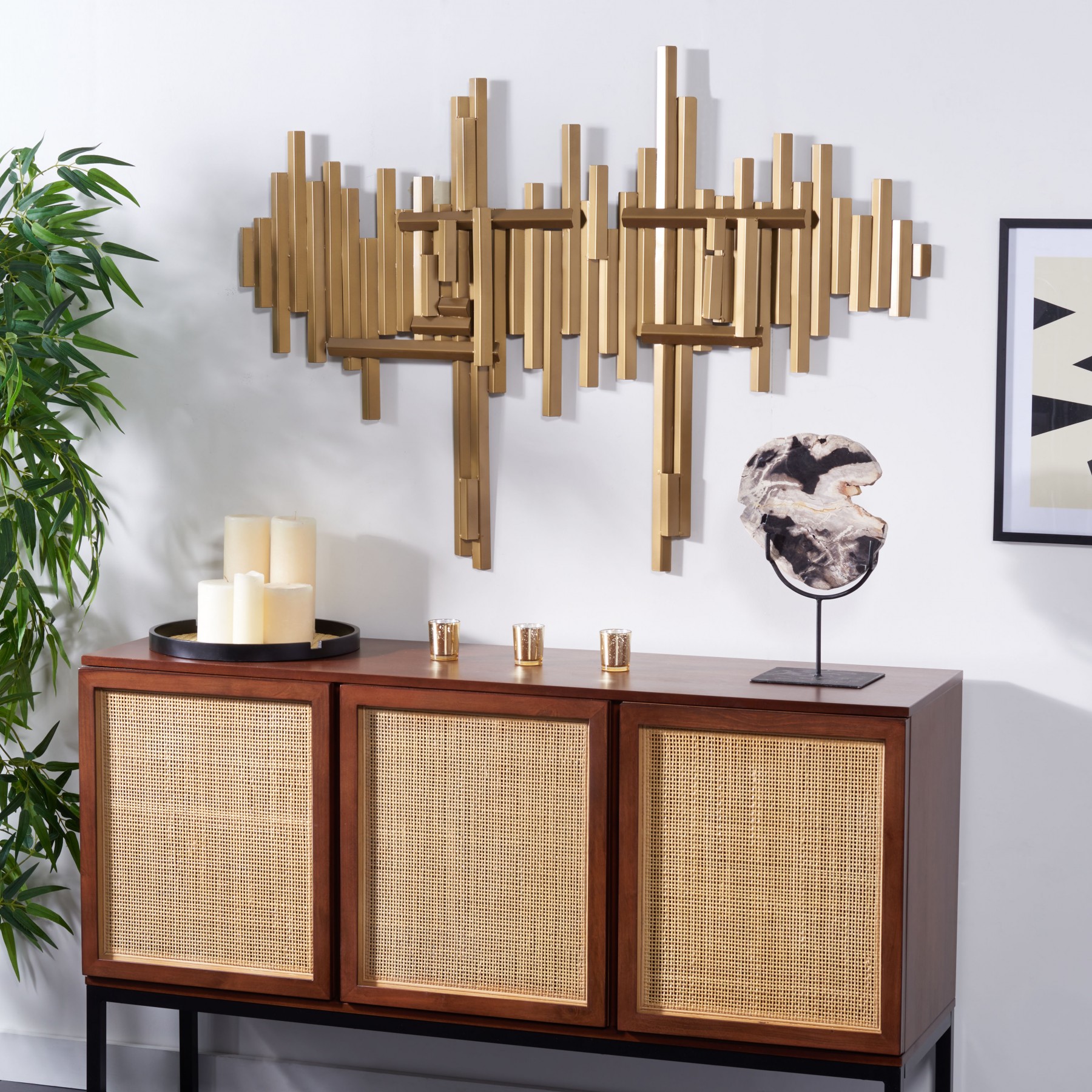 Give a contemporary upgrade to your walls with our stylish and captivating Ryona wall decor. Horizontal and vertical metallic strips juxtapose and overlap in a rhythmic and striking composition. The dramatic visual play and intricate styling of our wall decor are accentuated with a luscious antique brass finish. With a high-end appeal, our wall decor serves as a stylish and eye-catching addition to your foyer, living room, bedroom, or dining area.
