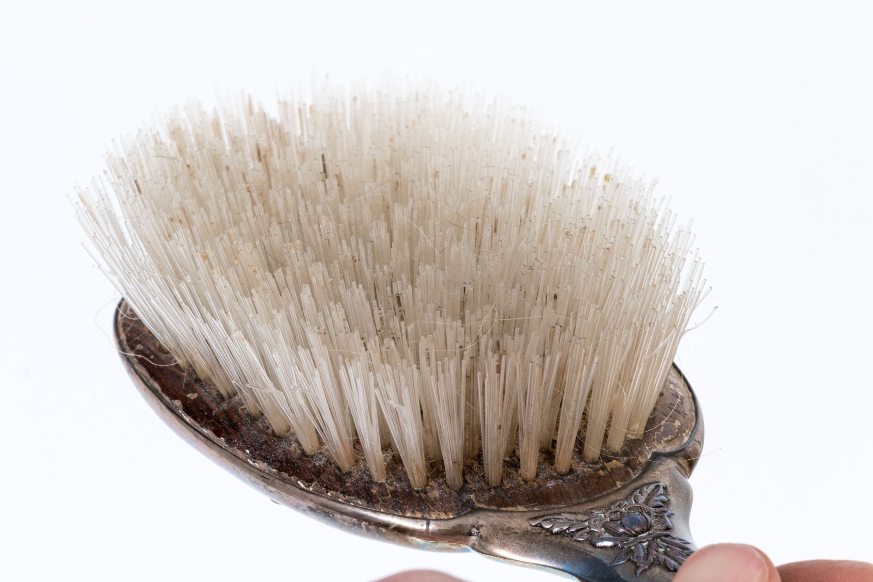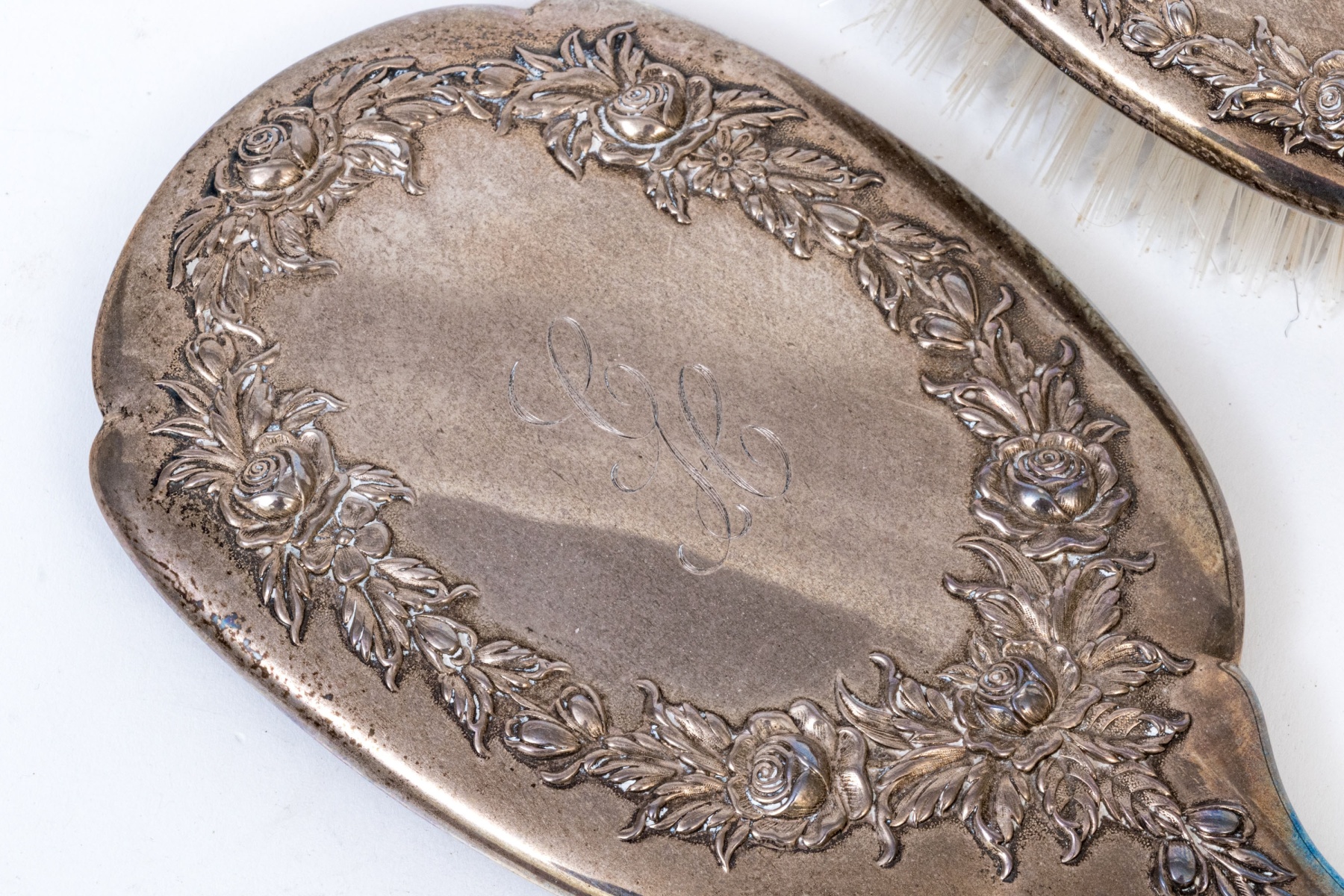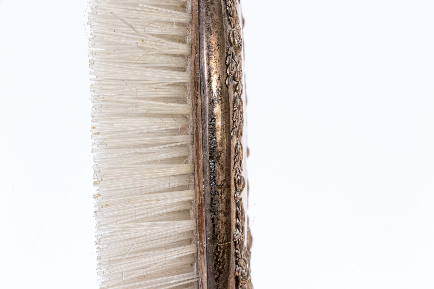 Tarnished with gentle wear to bristles and frames commensurate with age and gentle use. See lot images. Would look great polished.