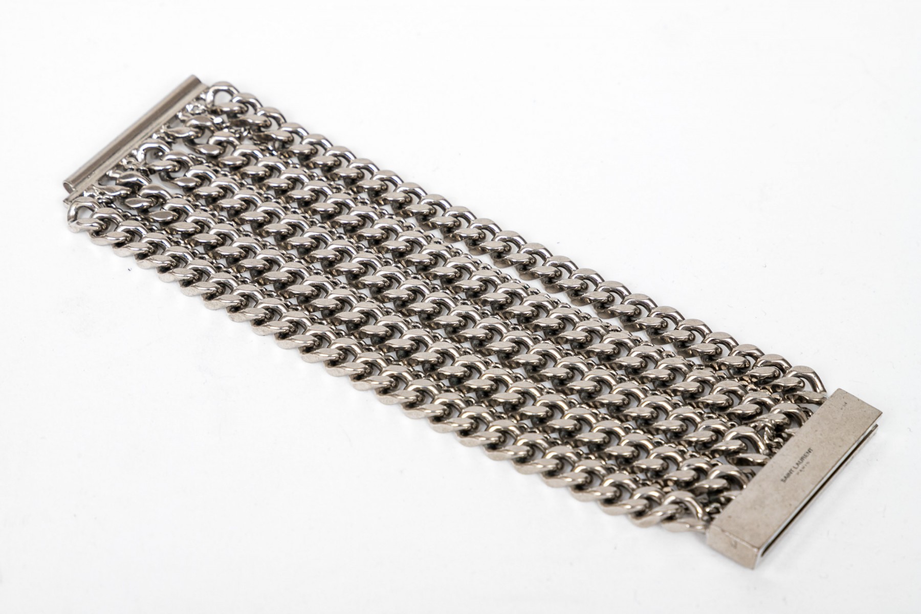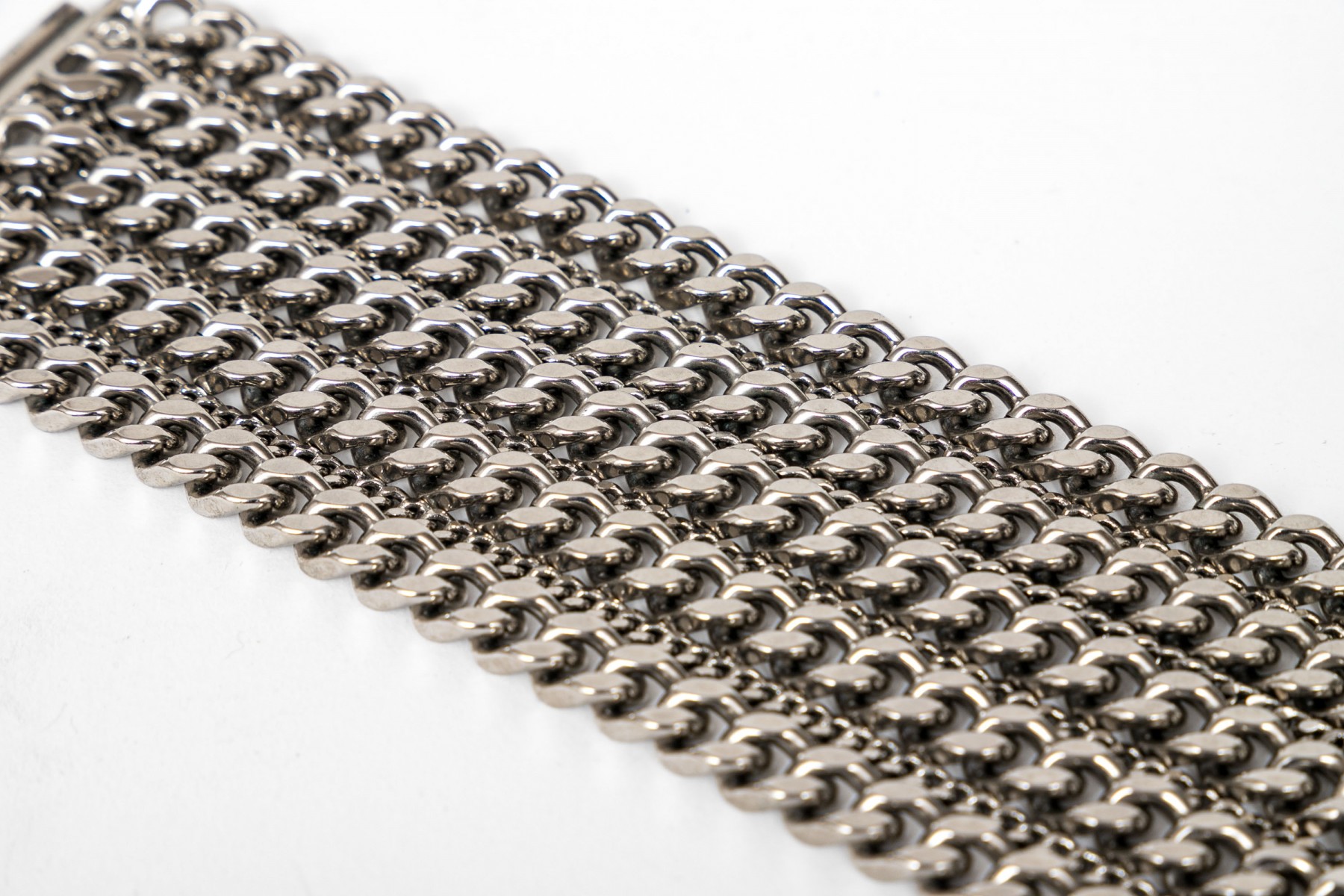 Saint Laurent, Paris fabulous ultra wide nine row steel curb link chain bracelet, with slide style clasp