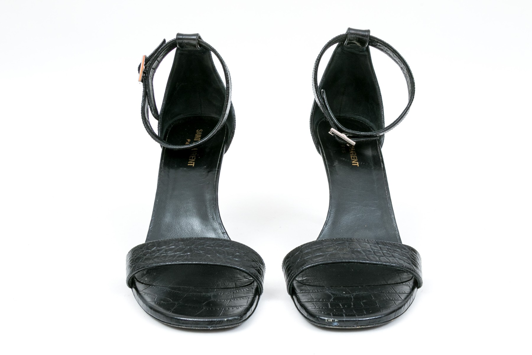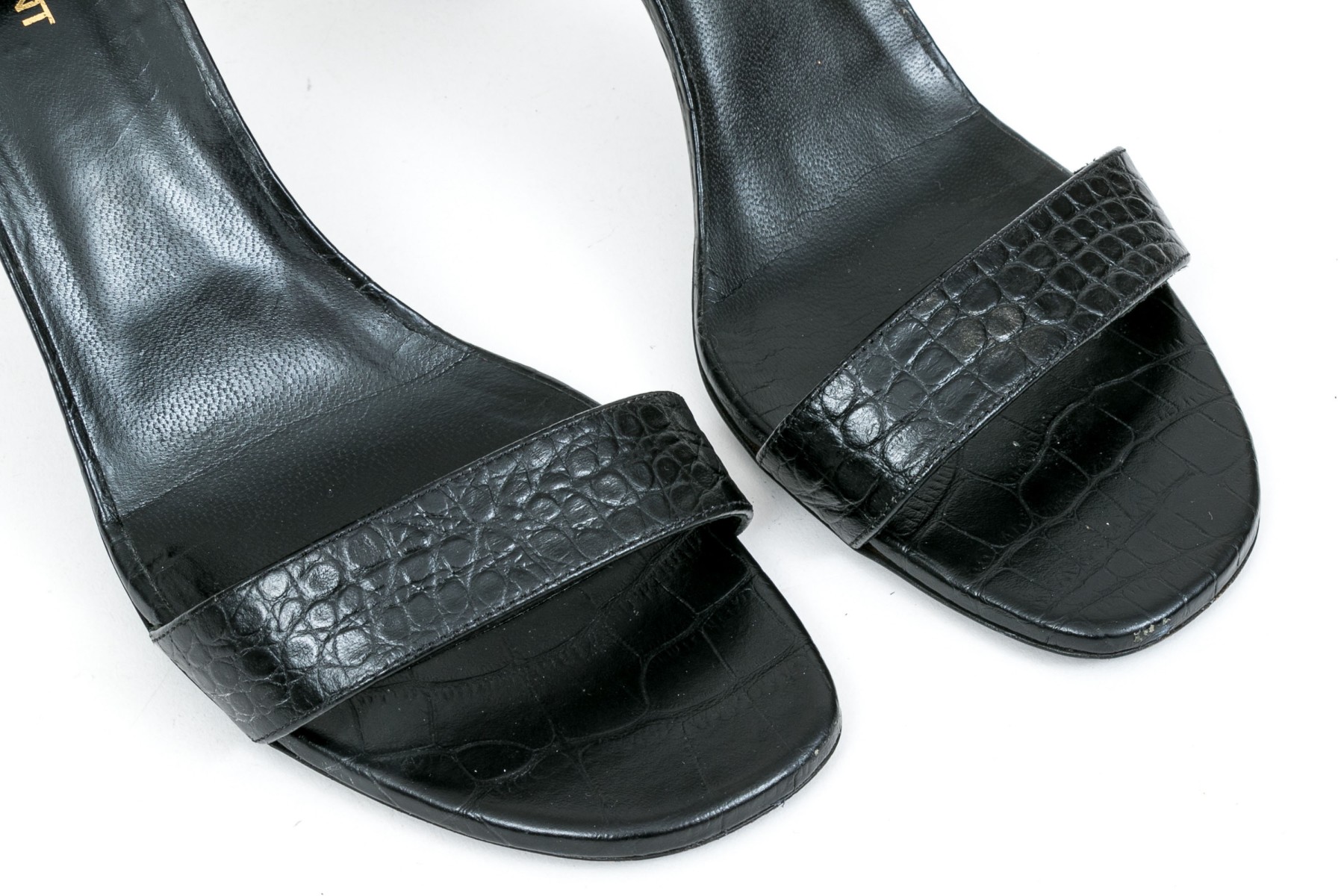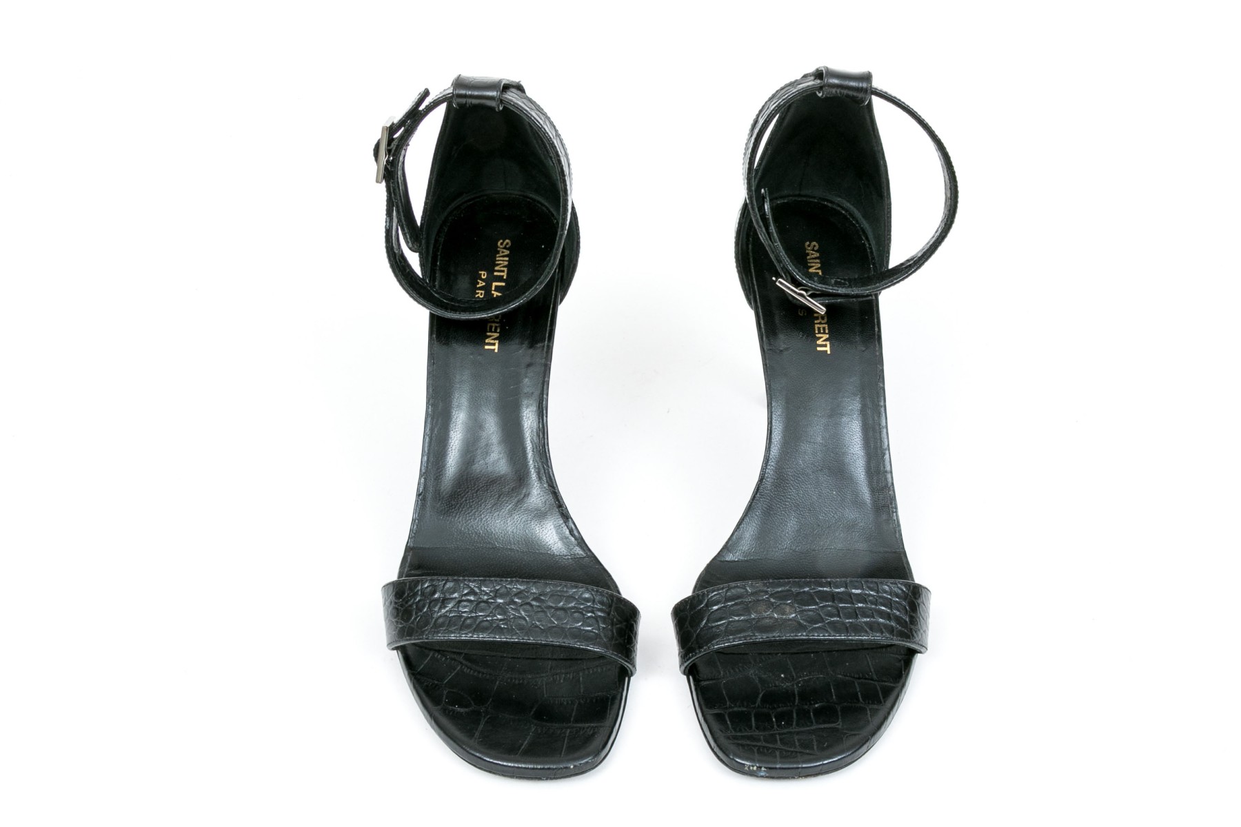 Saint Laurent striking black crocodile grained sandals, size 41, with box