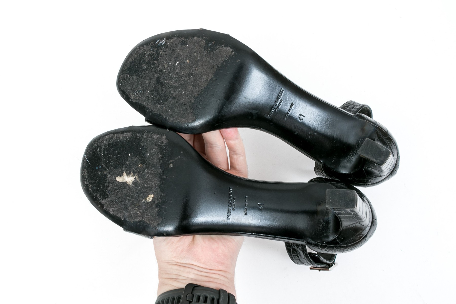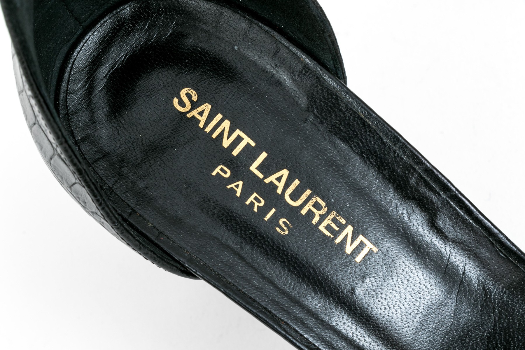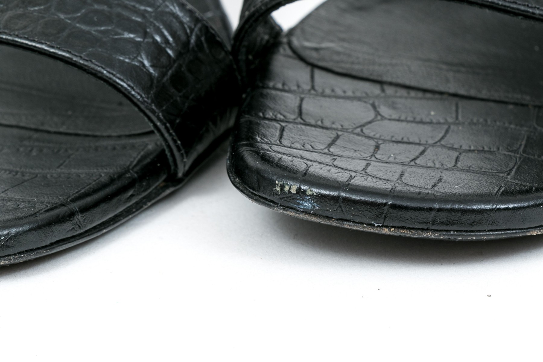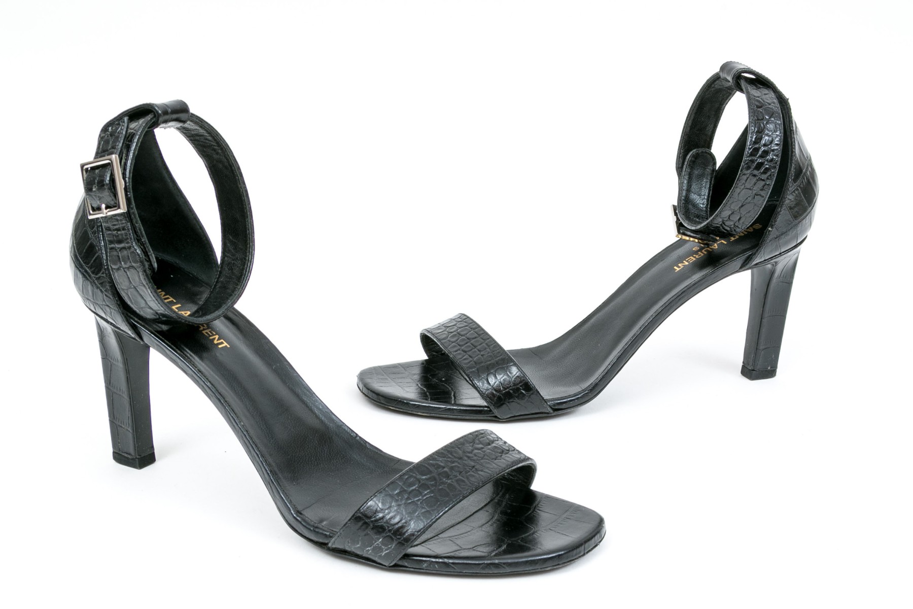Saint Laurent striking black crocodile grained sandals, size 41, with box
