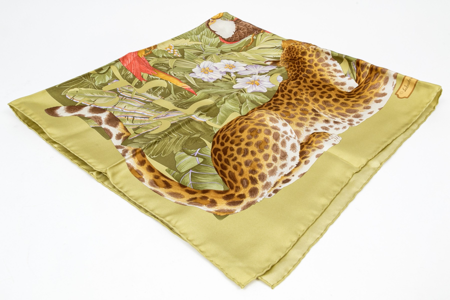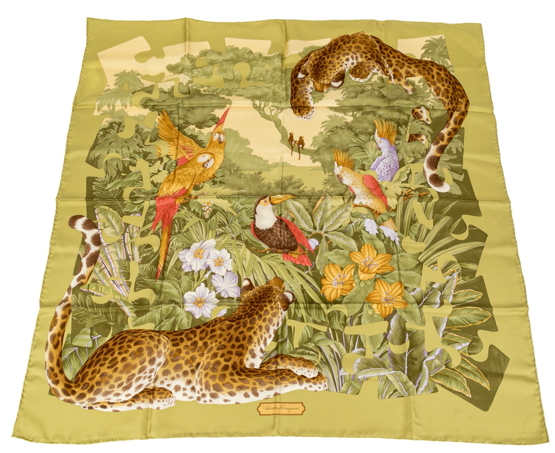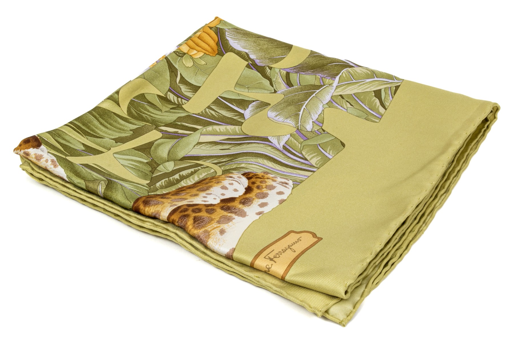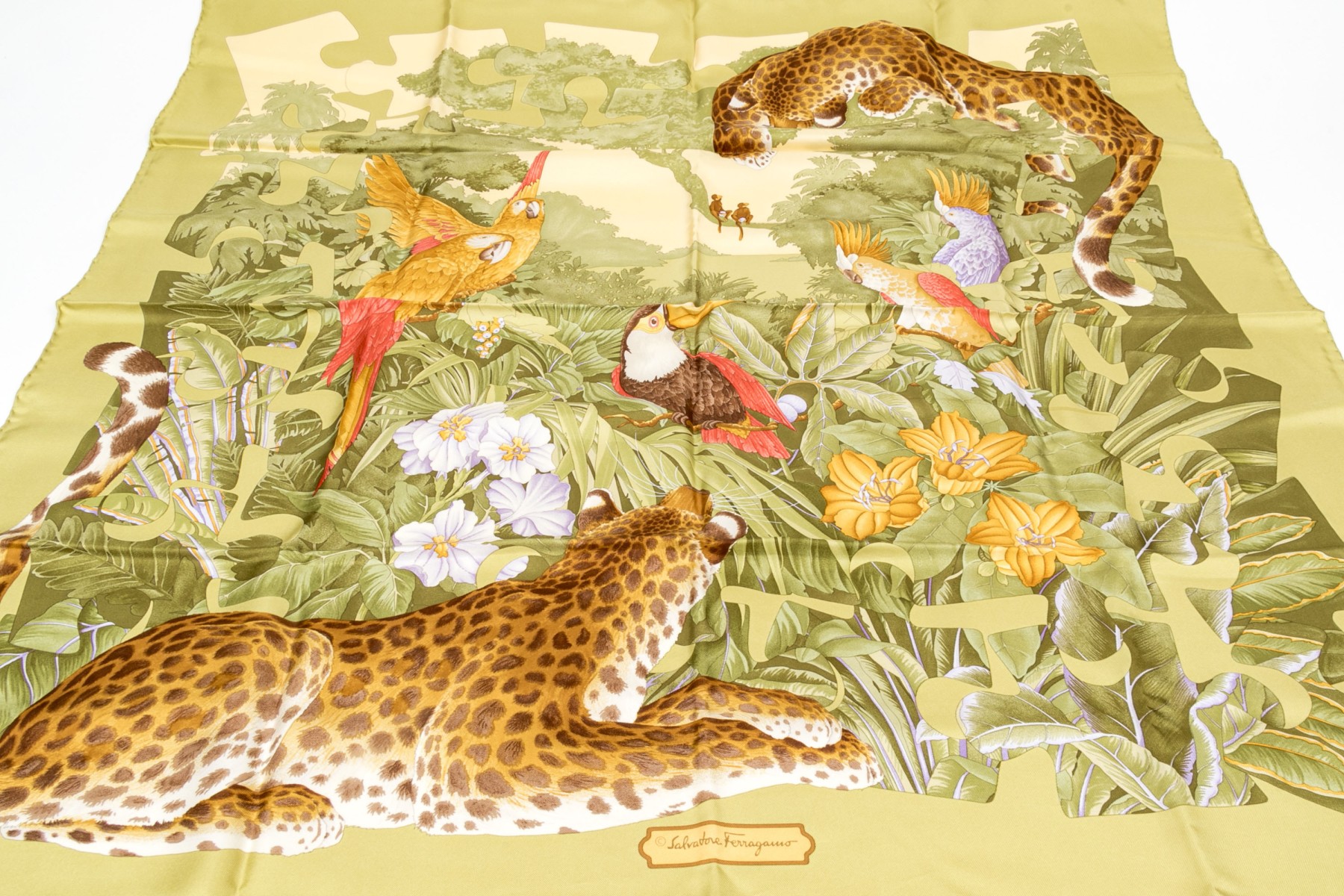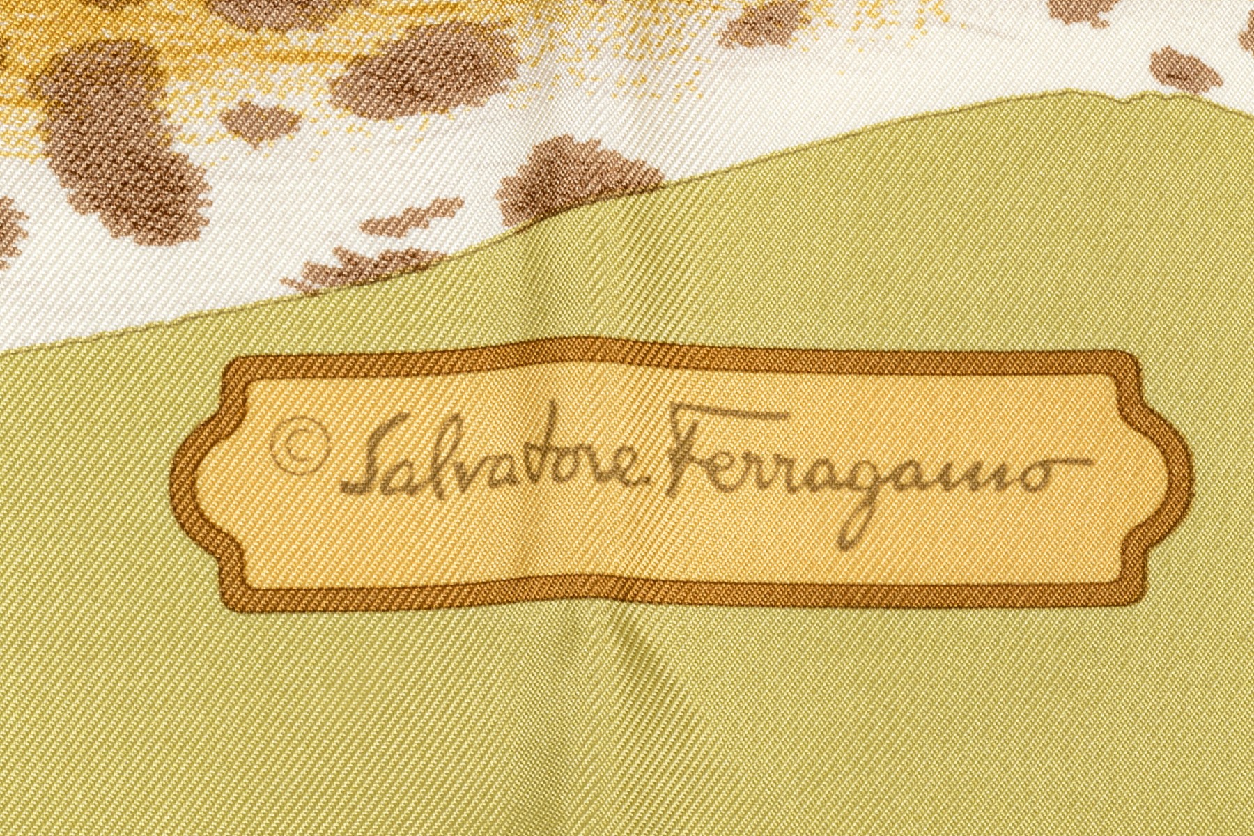 Salvatore Ferragamo beautiful green toned leopard motif silk scarf