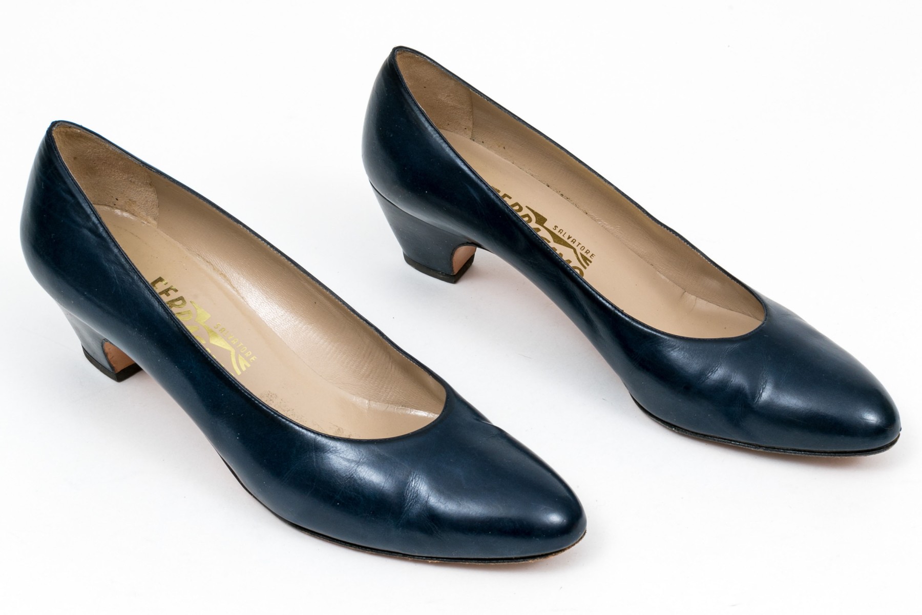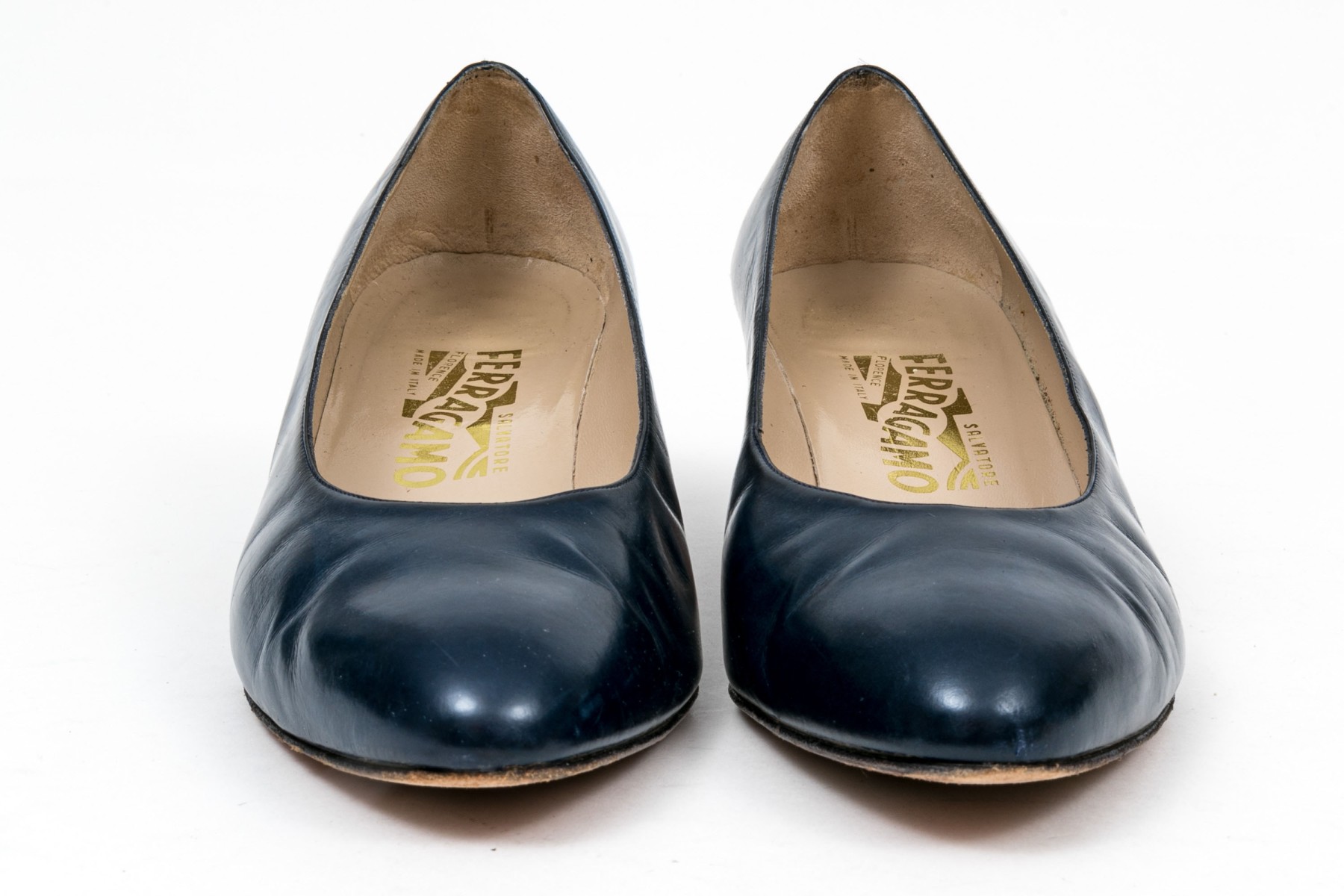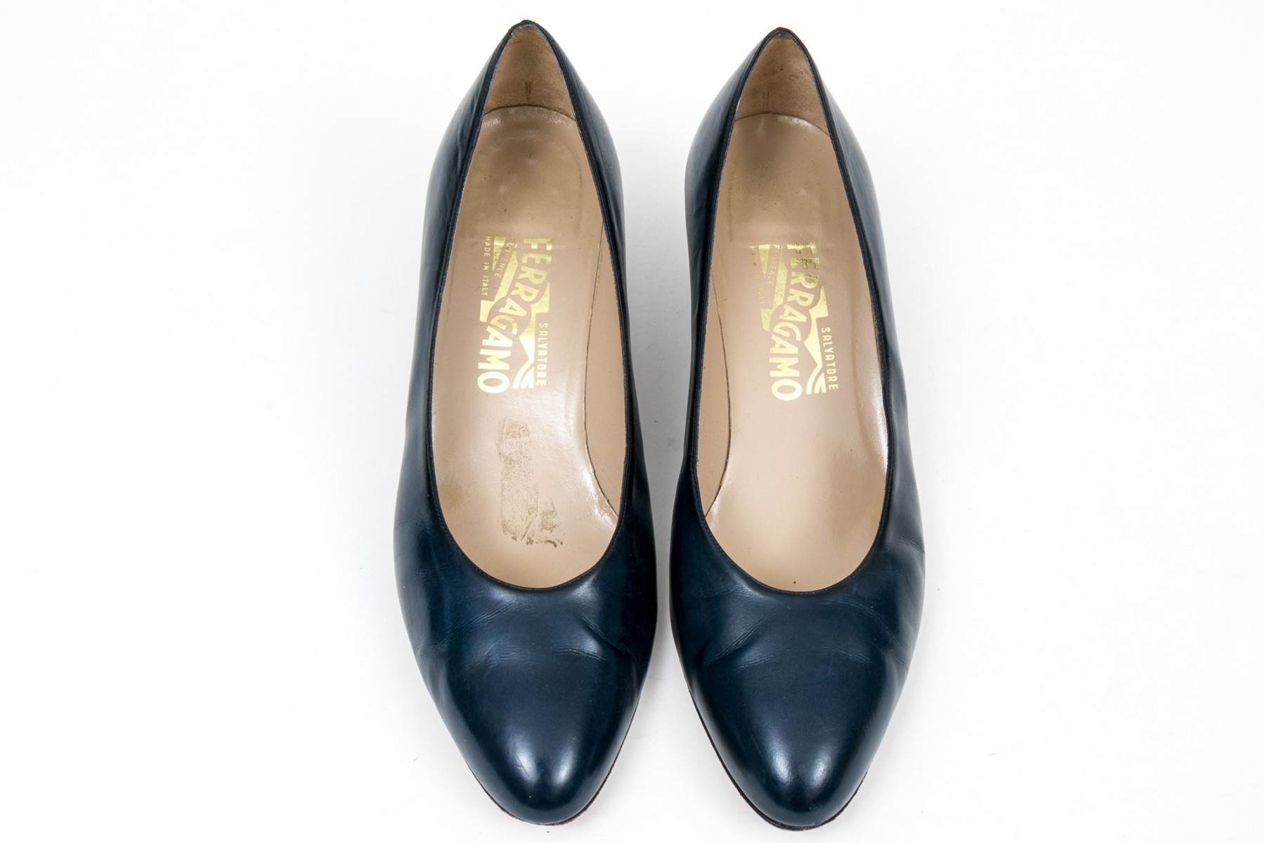 Salvatore Ferragamo classic navy blue leather pumps, size 10B