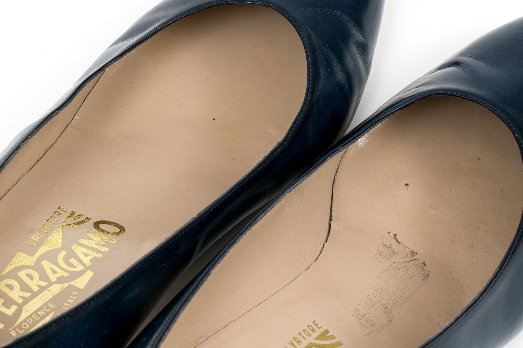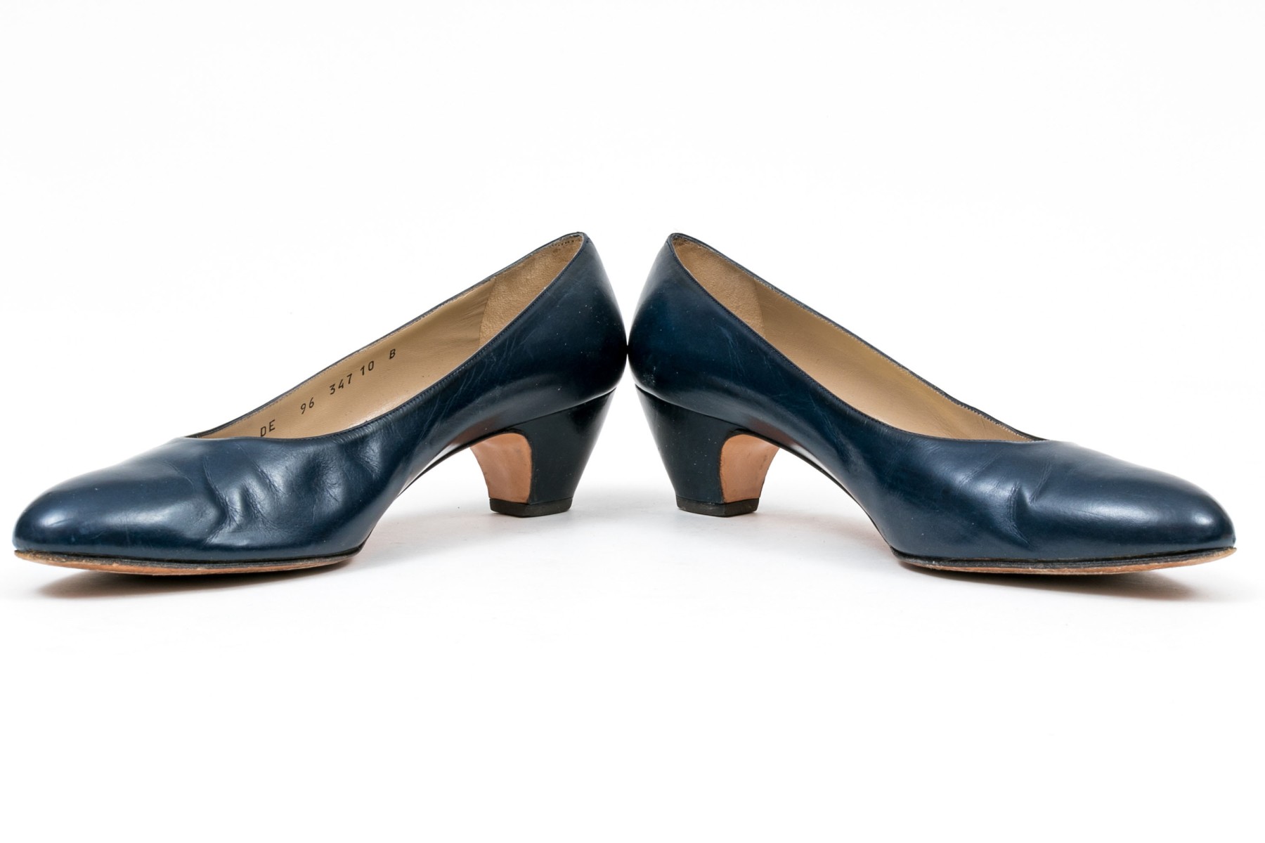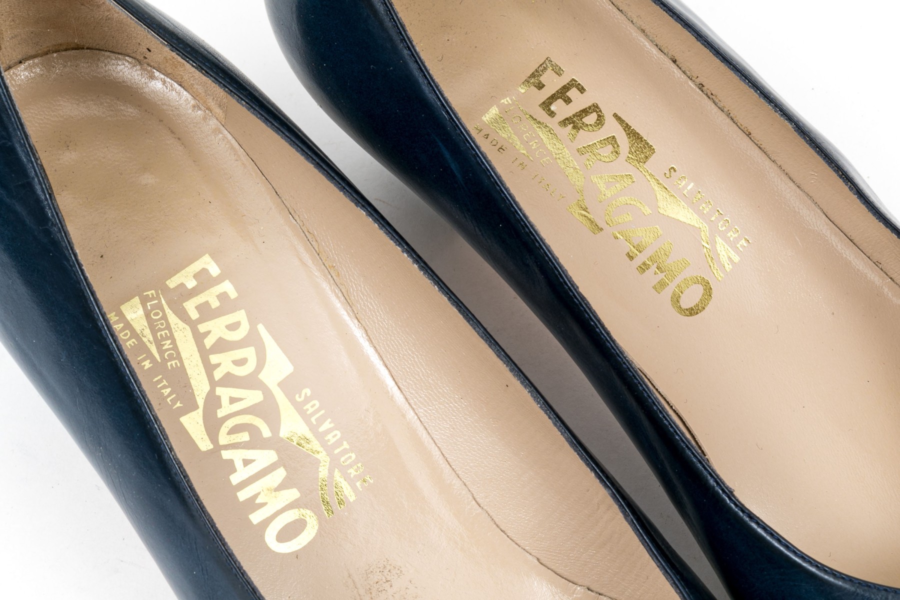 Salvatore Ferragamo classic navy blue leather pumps, size 10B