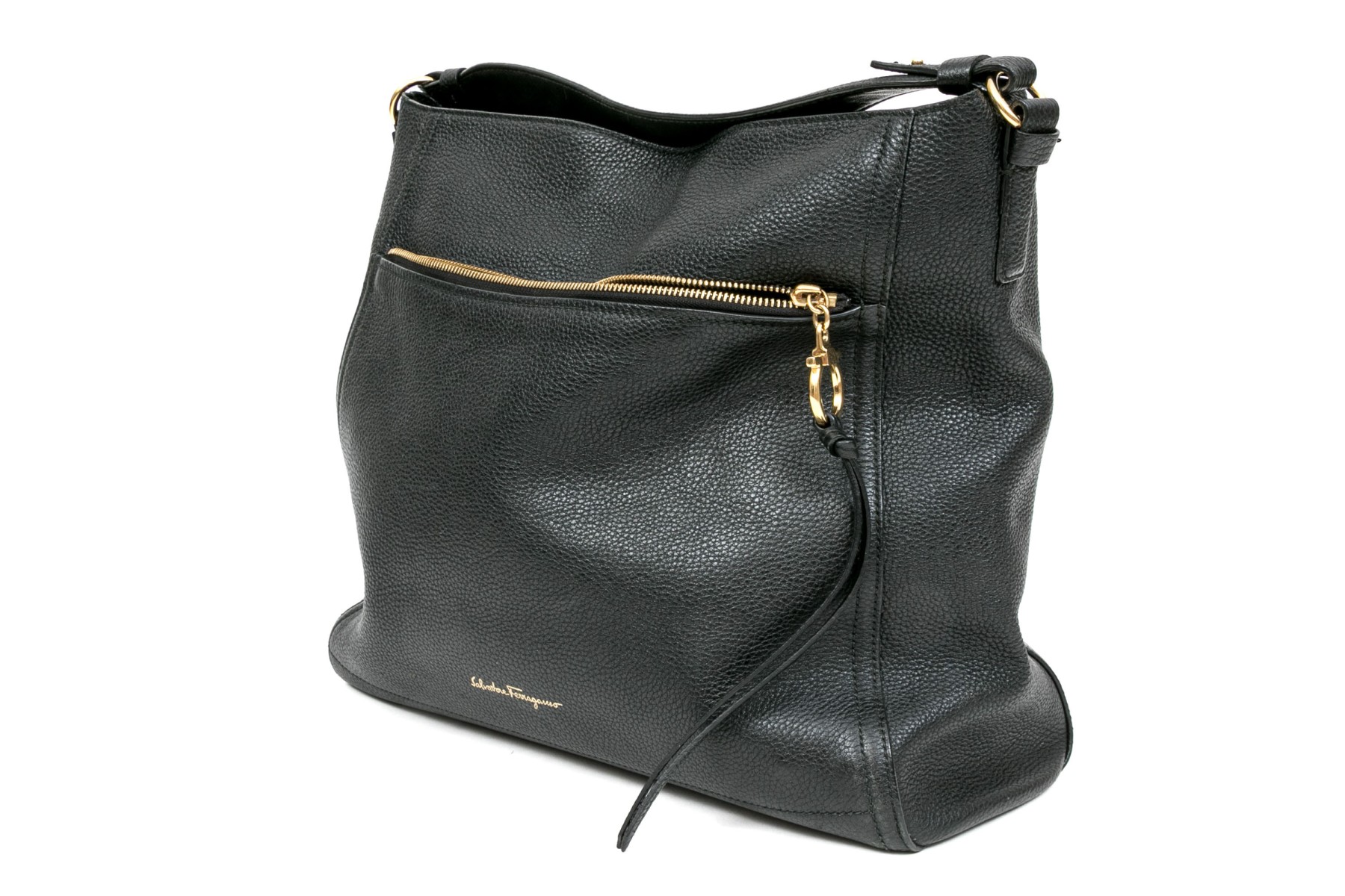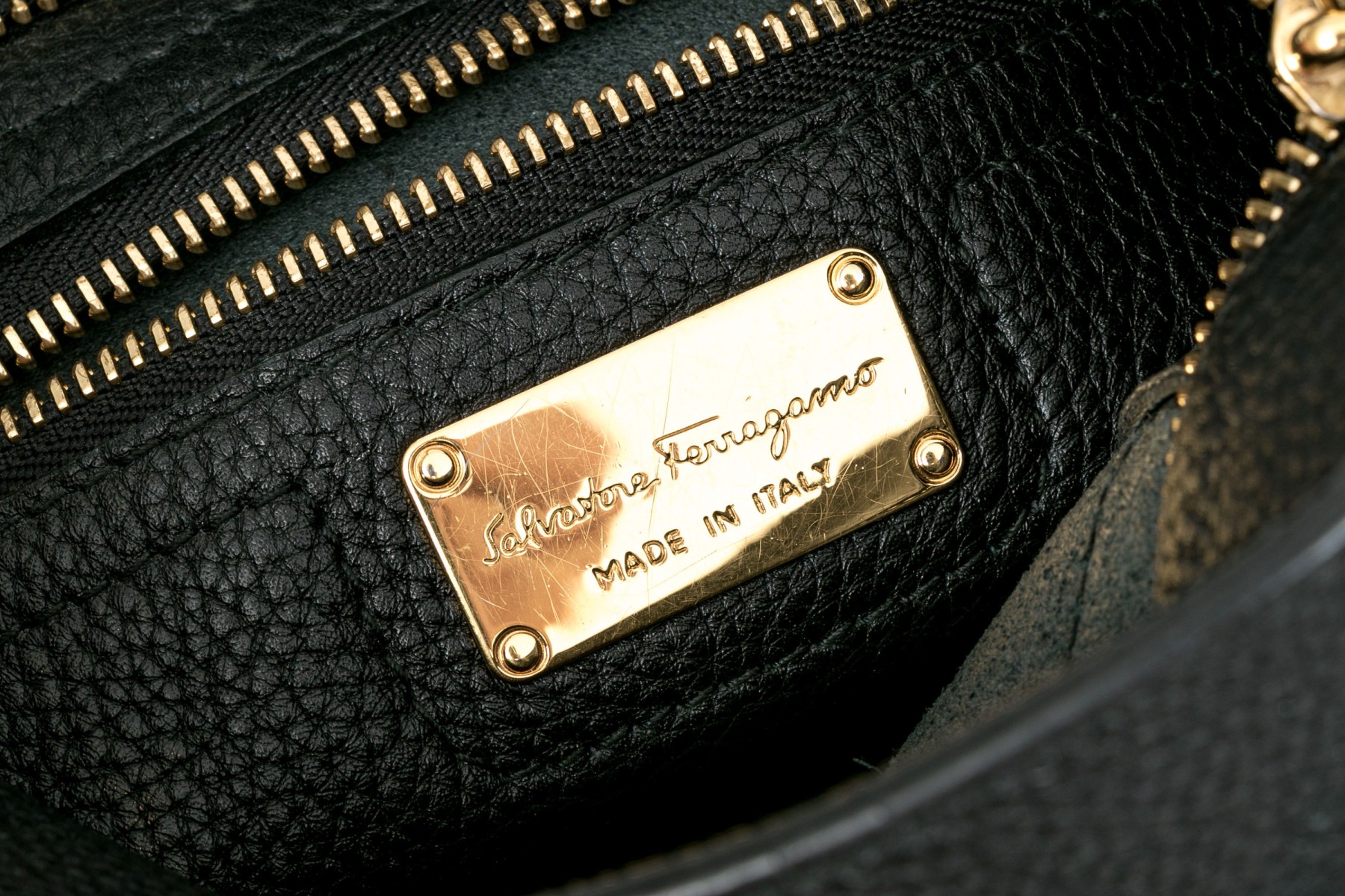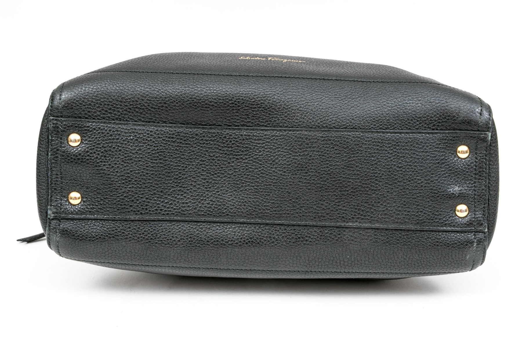 Salvatore Ferragamo handsome navy blue leather top handle tote bag, zip top