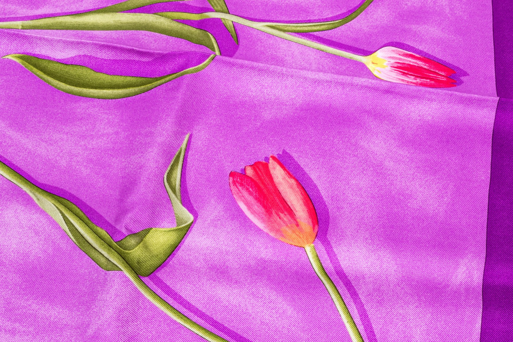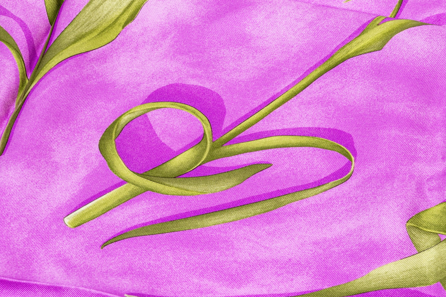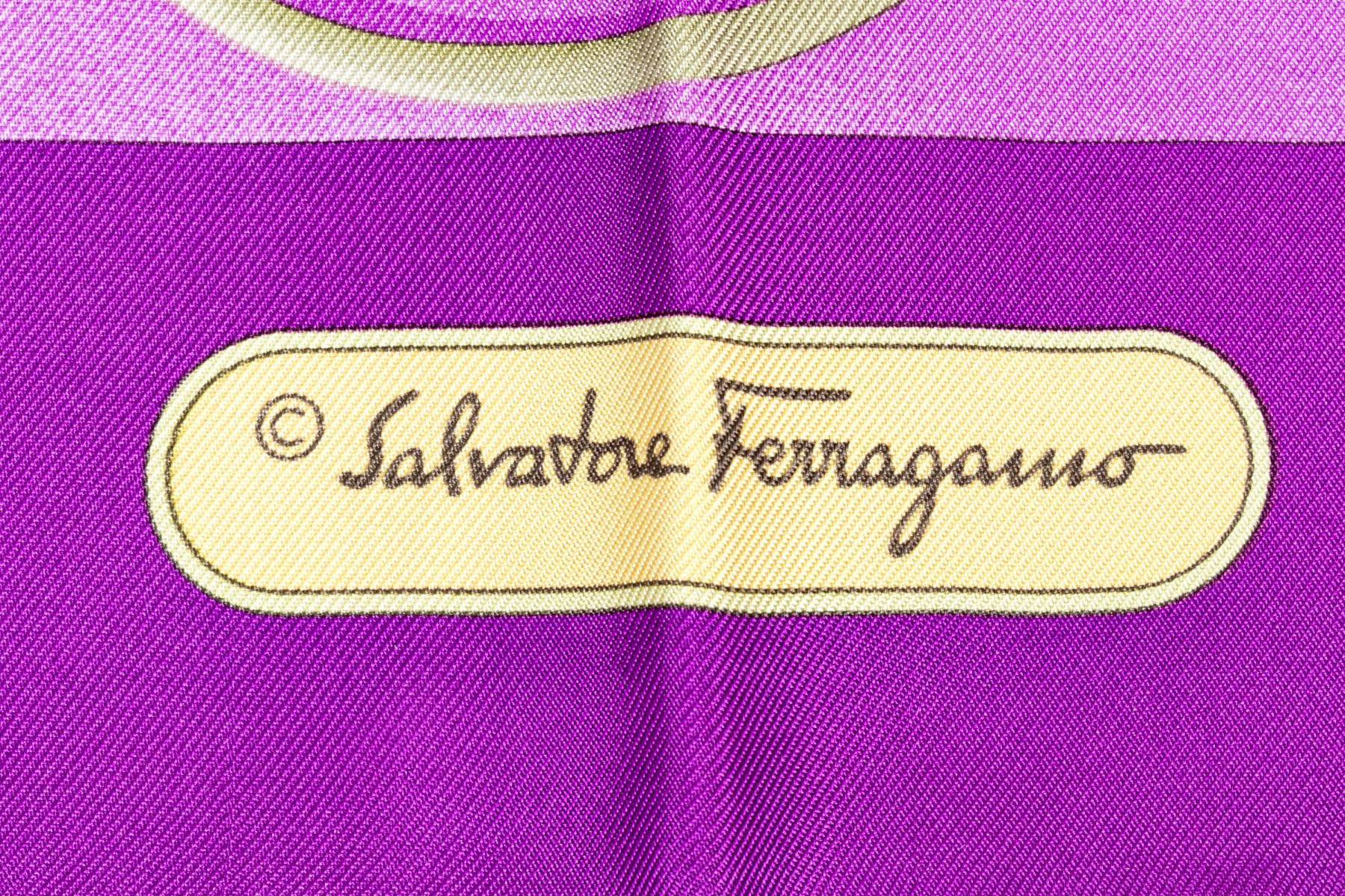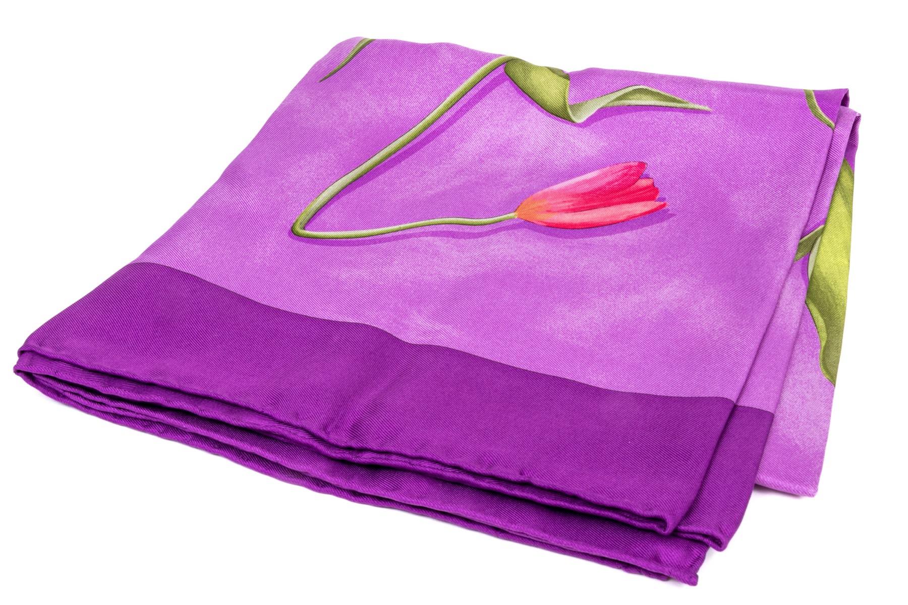 Salvatore Ferragamo lovely purple and green vintage silk tulip motif scarf
