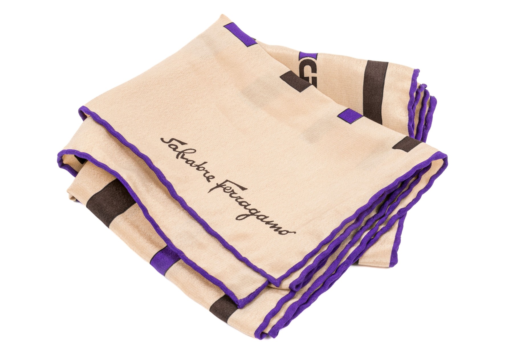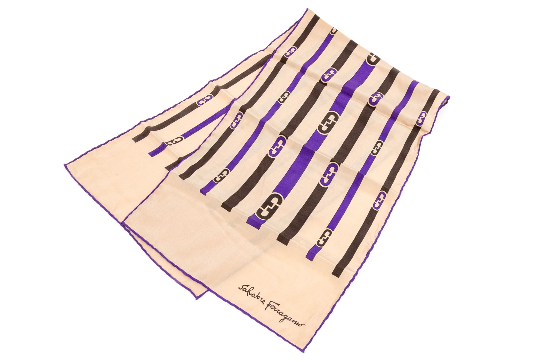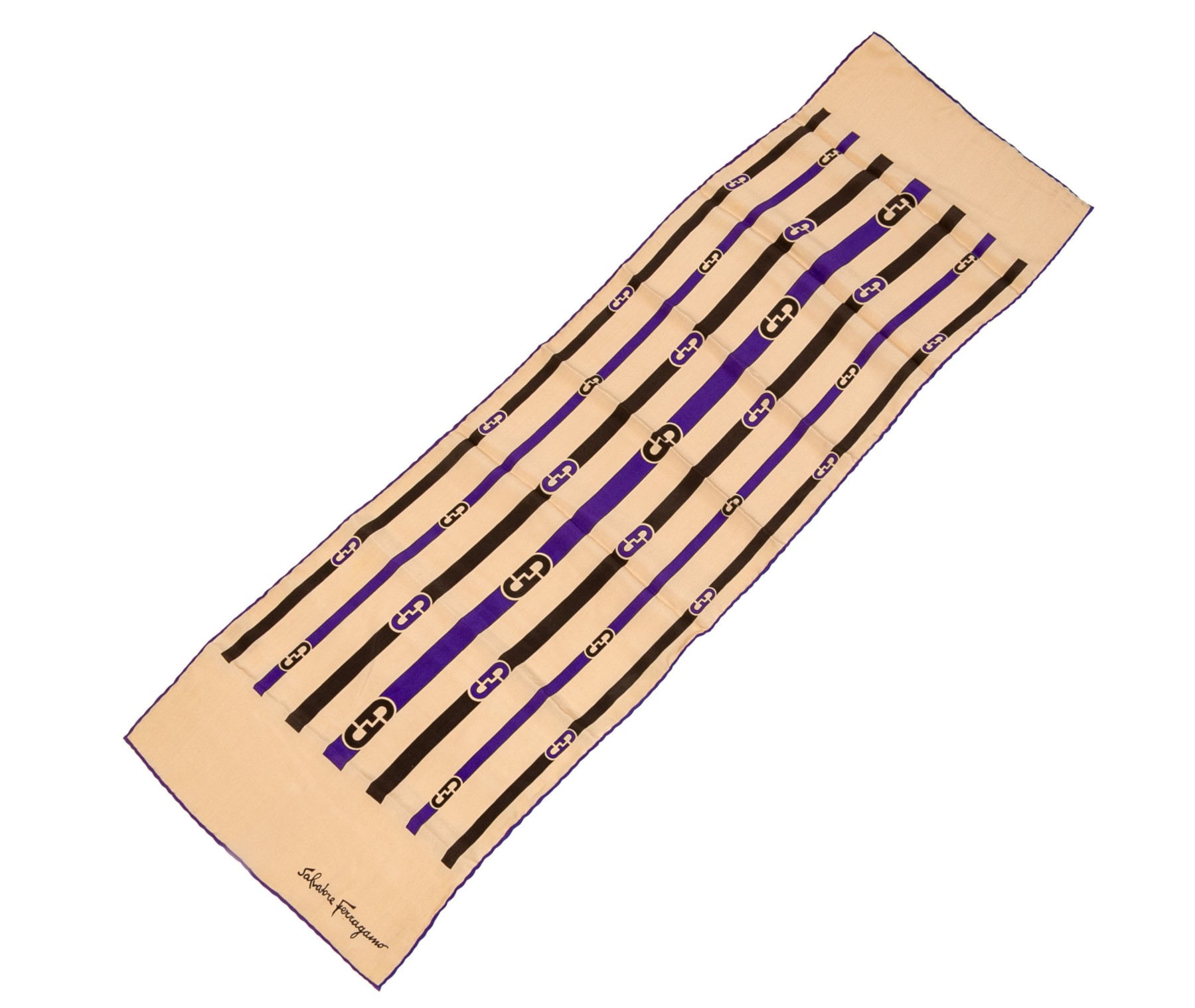 Salvatore Ferragamo striking vintage logo striped silk scarf