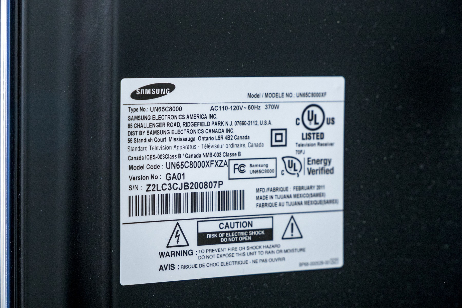 *Just the tv and power cord, no remote or base.   As Is.    65" Samsung model UN65C8000XF.