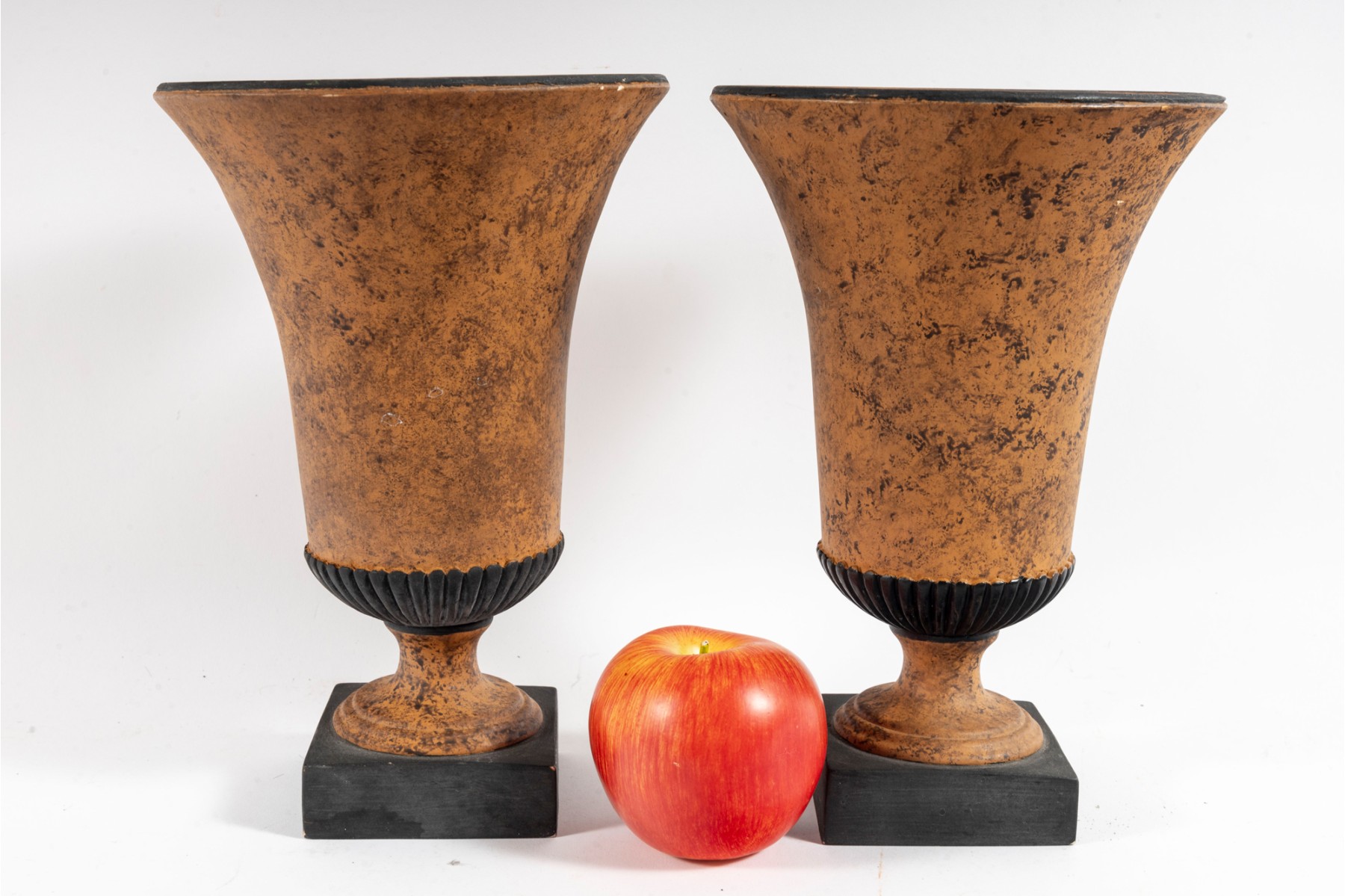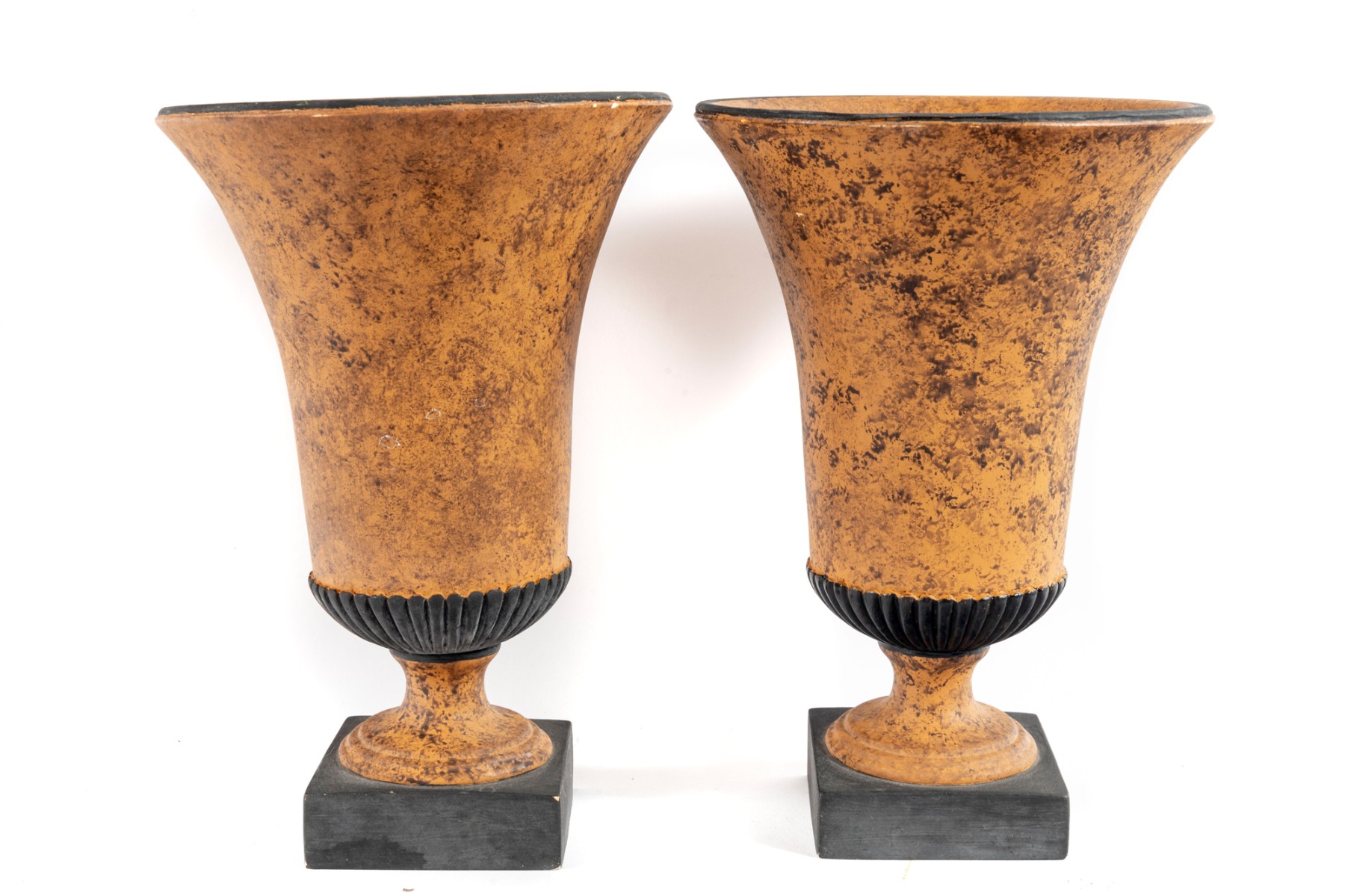 A pair of decorative ceramic urn-form planters/vases for your consideration. Produced by Sarreid LTD.