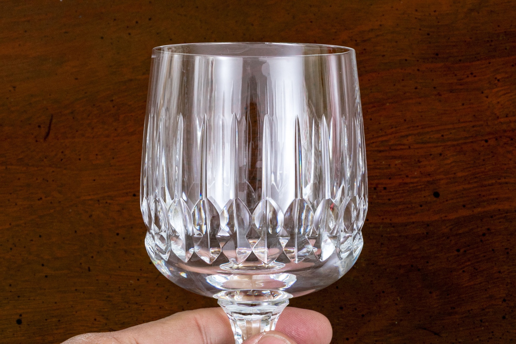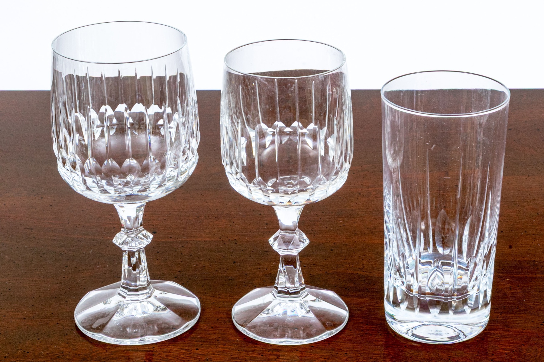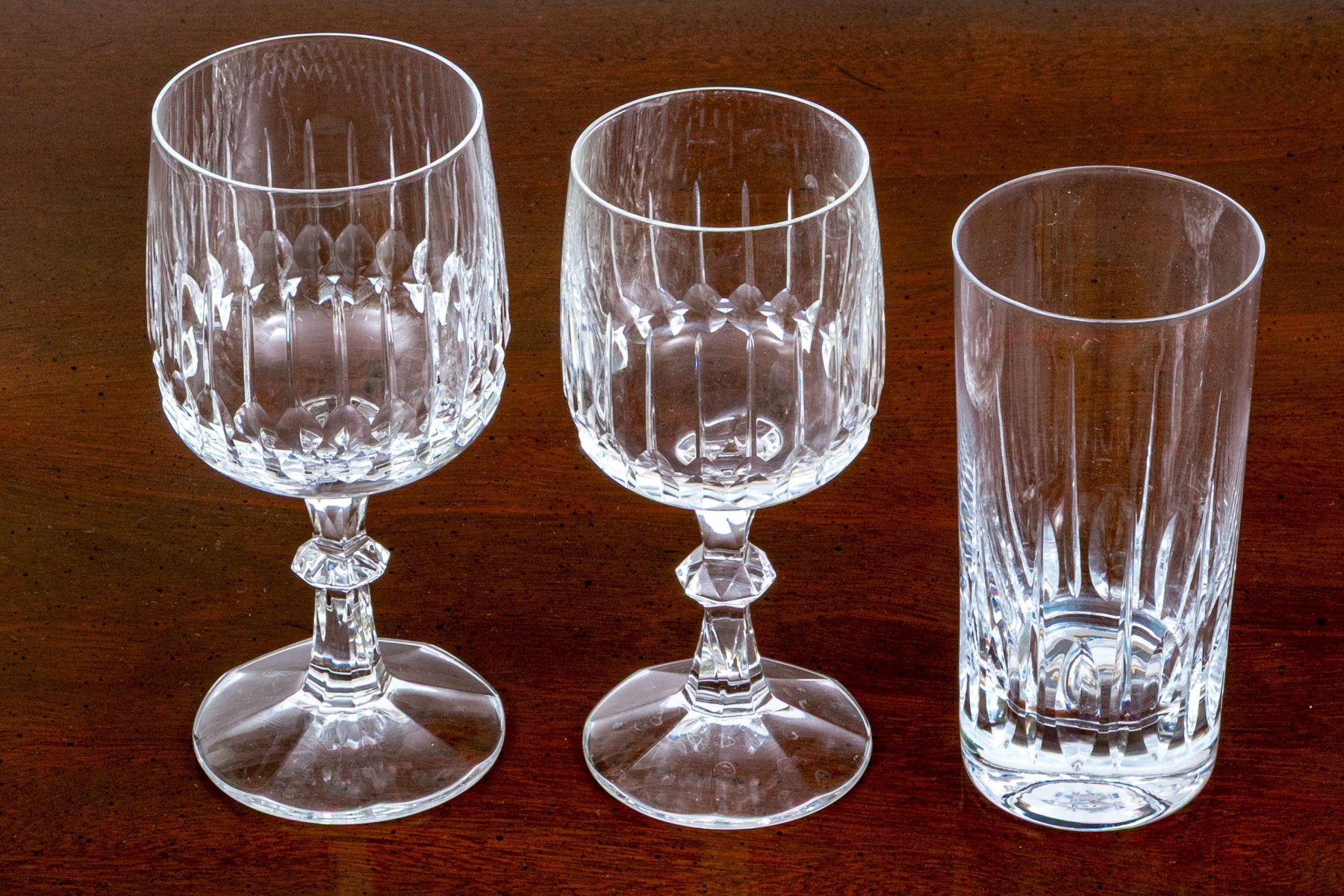 A fabulous group of Schott-Zwiesel "Tango" crystal drinkware designed with beautifully cut bowls, elegantly shaped stems with faceted bun knops, and gently beveled circular feet.