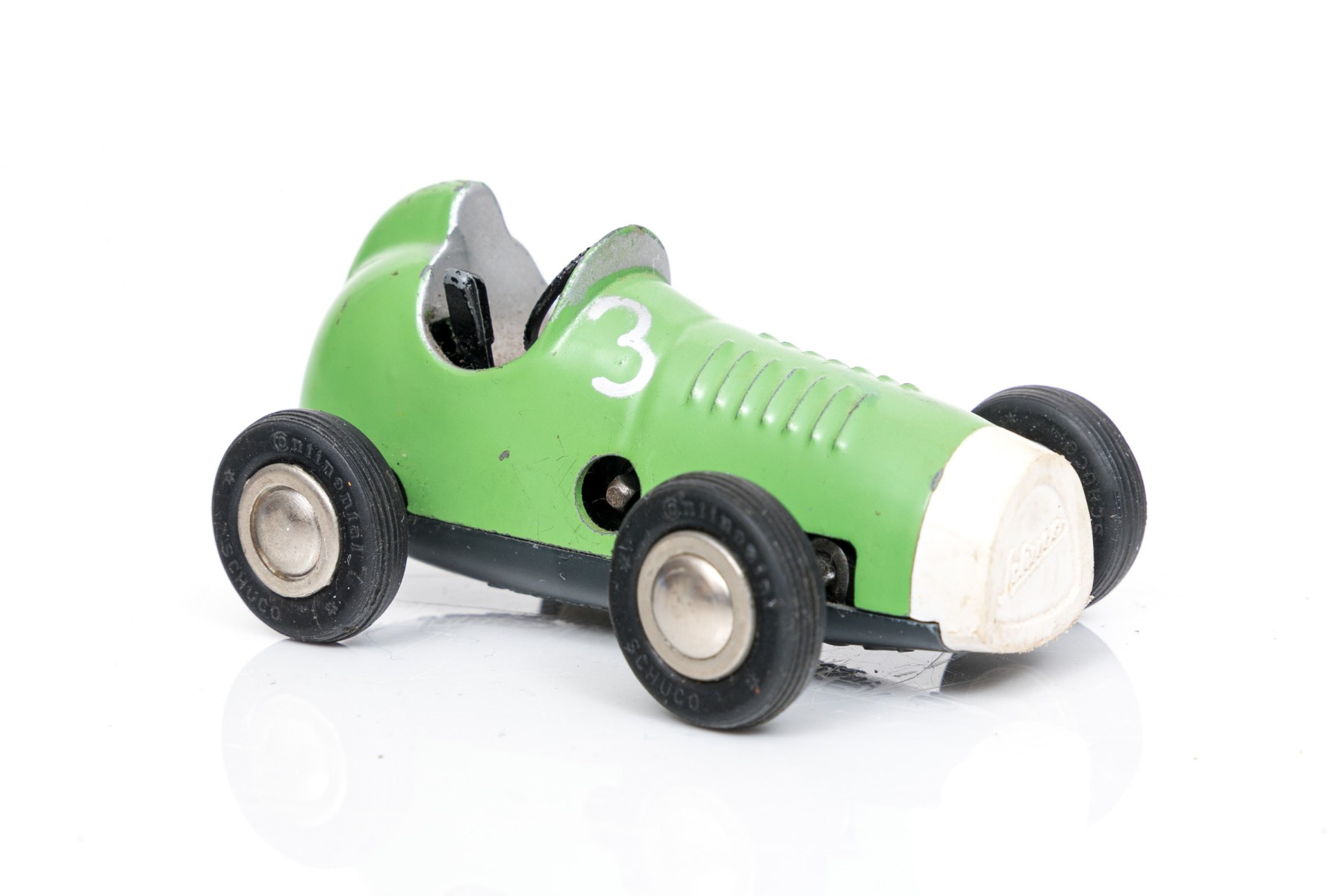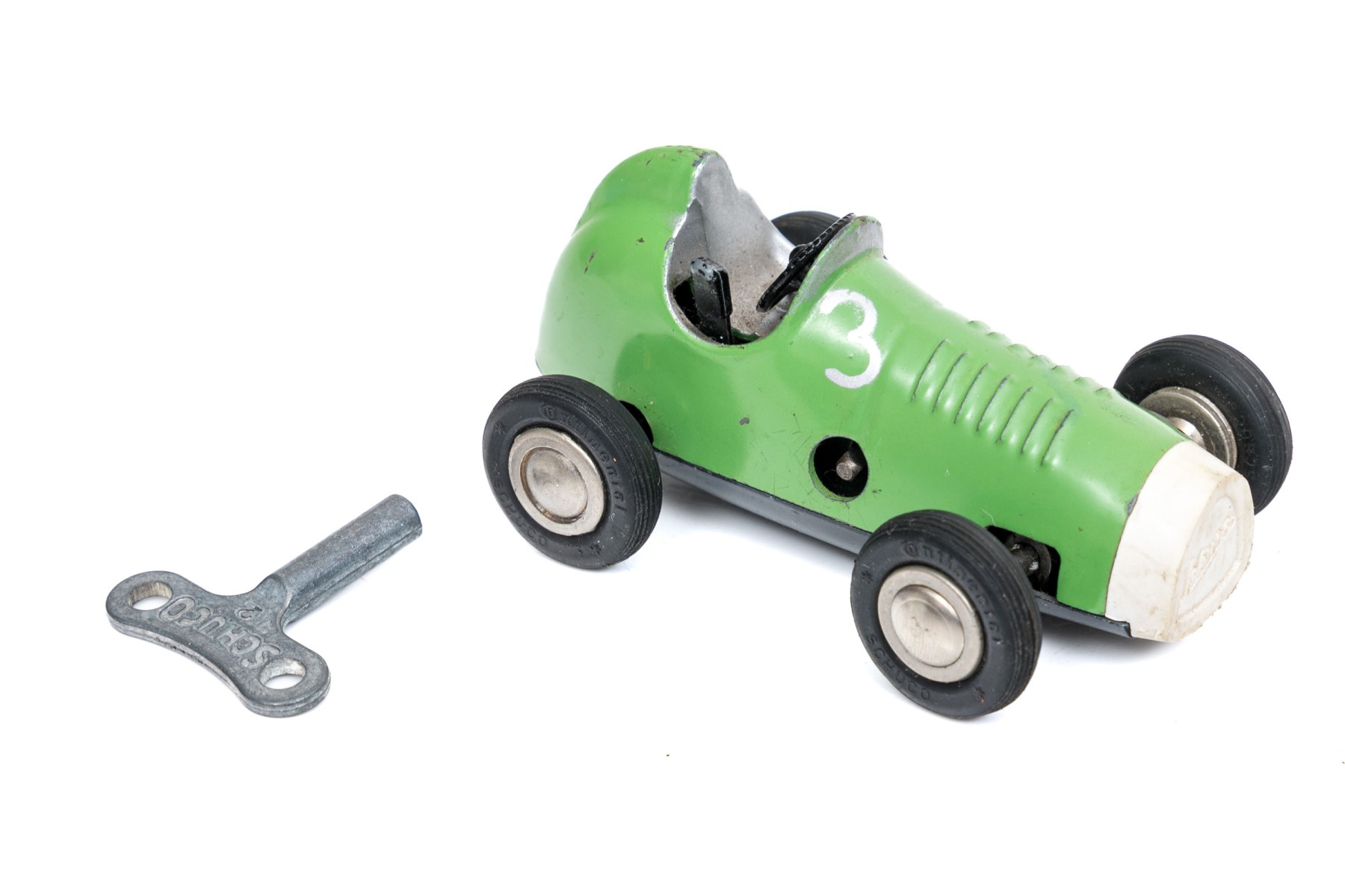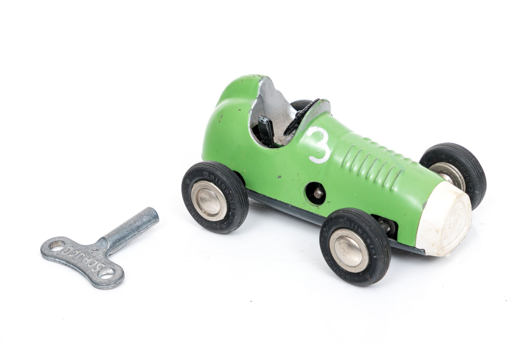 Schuco fun vintage green micro racer, with key
