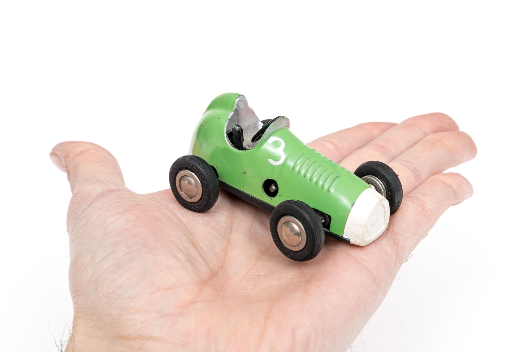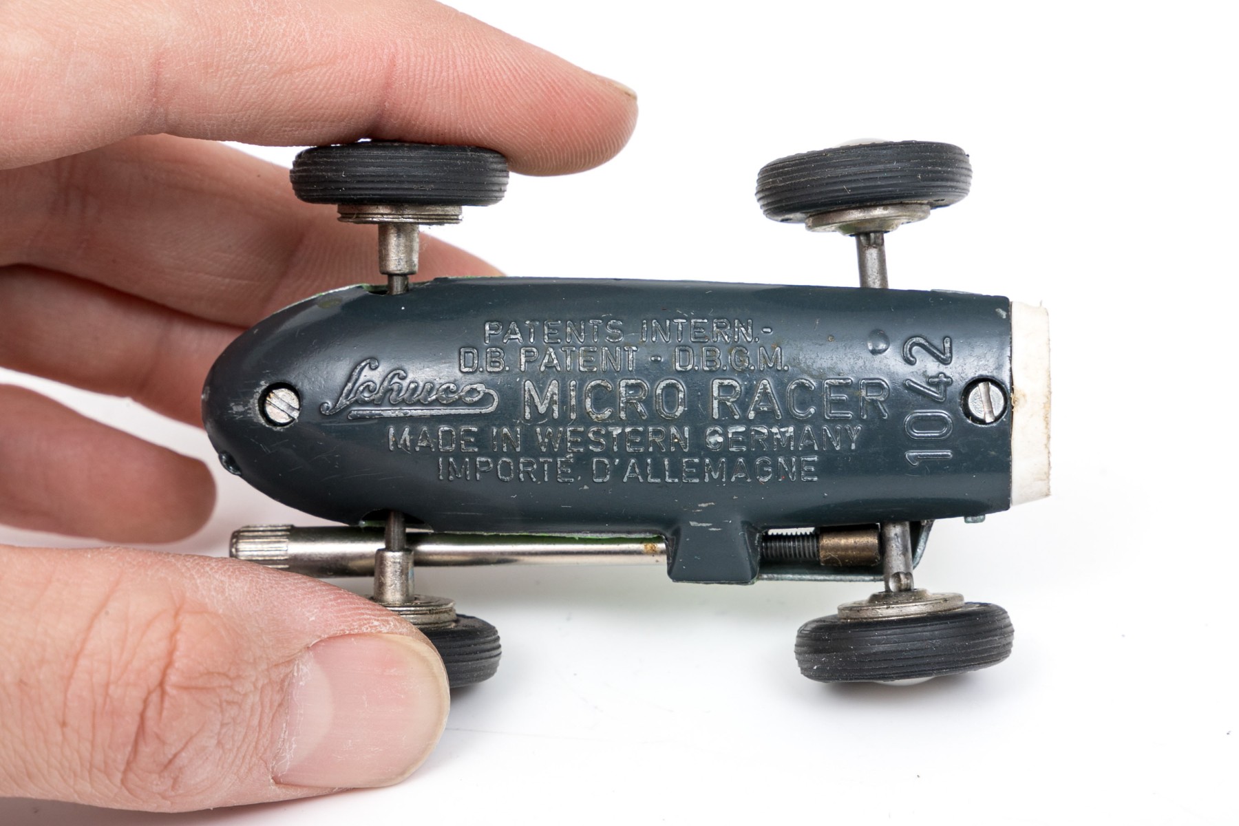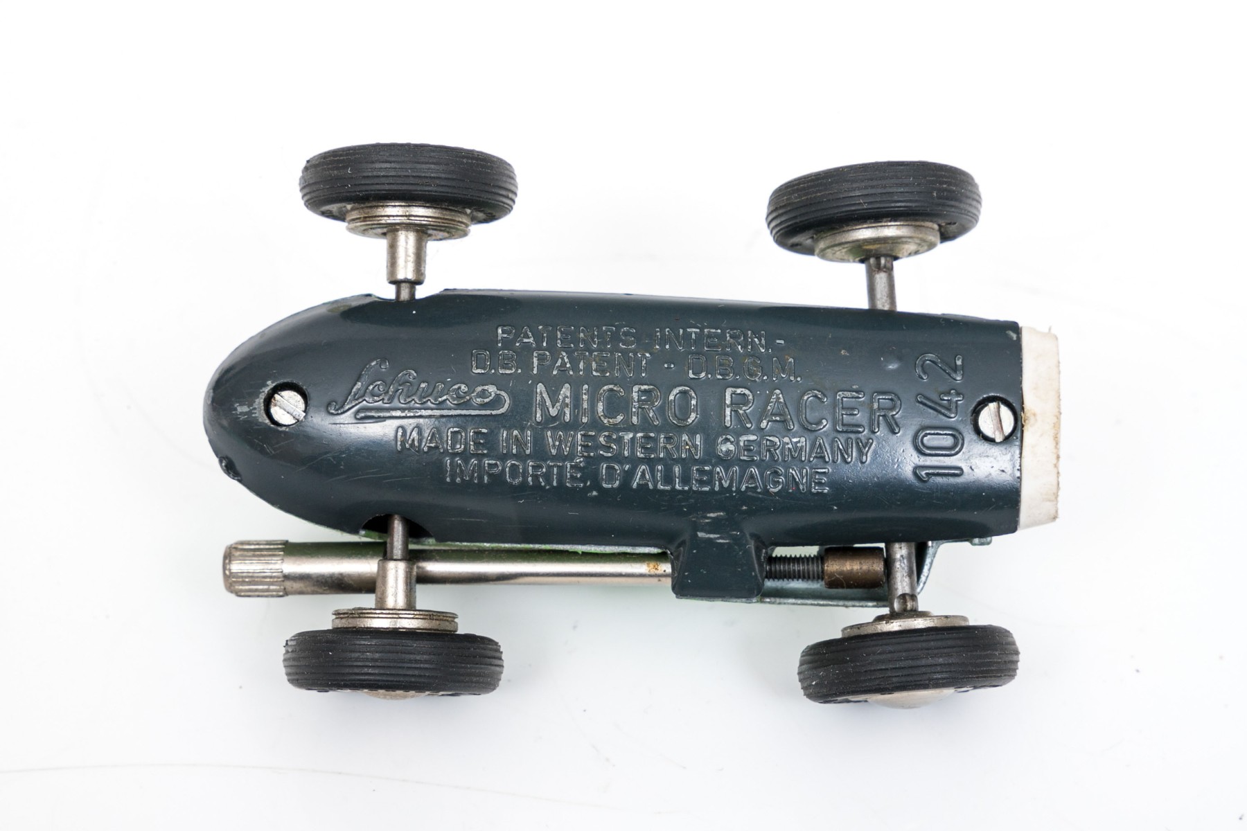 Schuco fun vintage green micro racer, with key