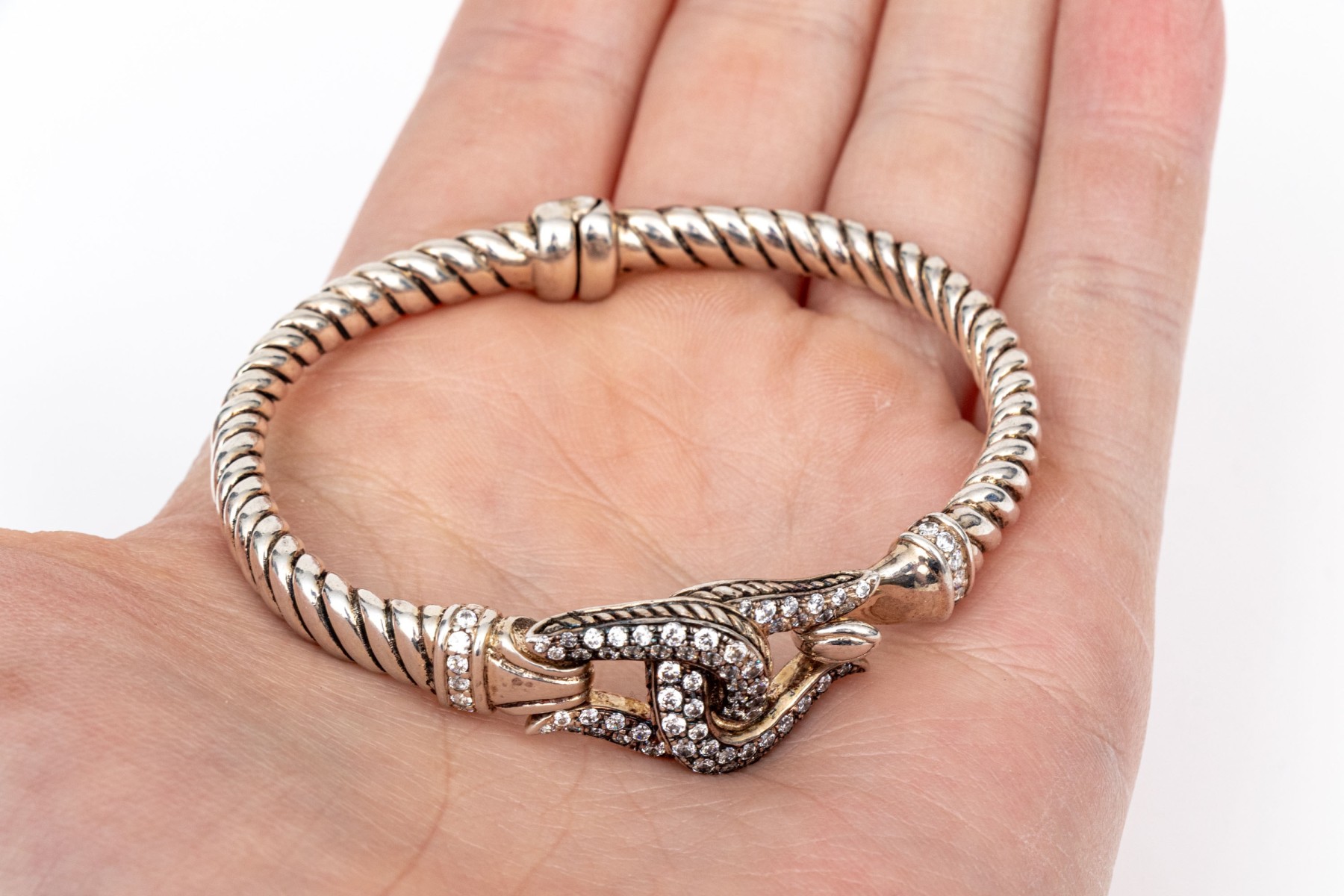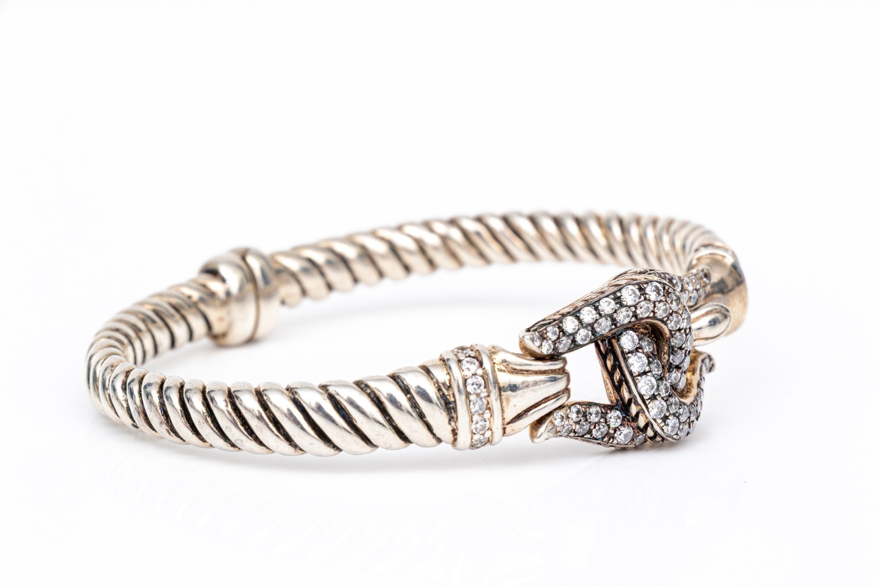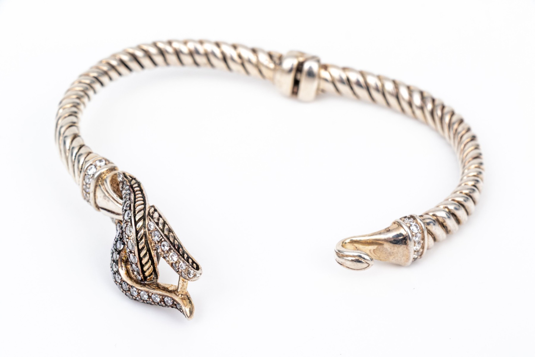 Scott Kay sterling silver fabulous CZ set knot and cable hook bracelet, small diameter