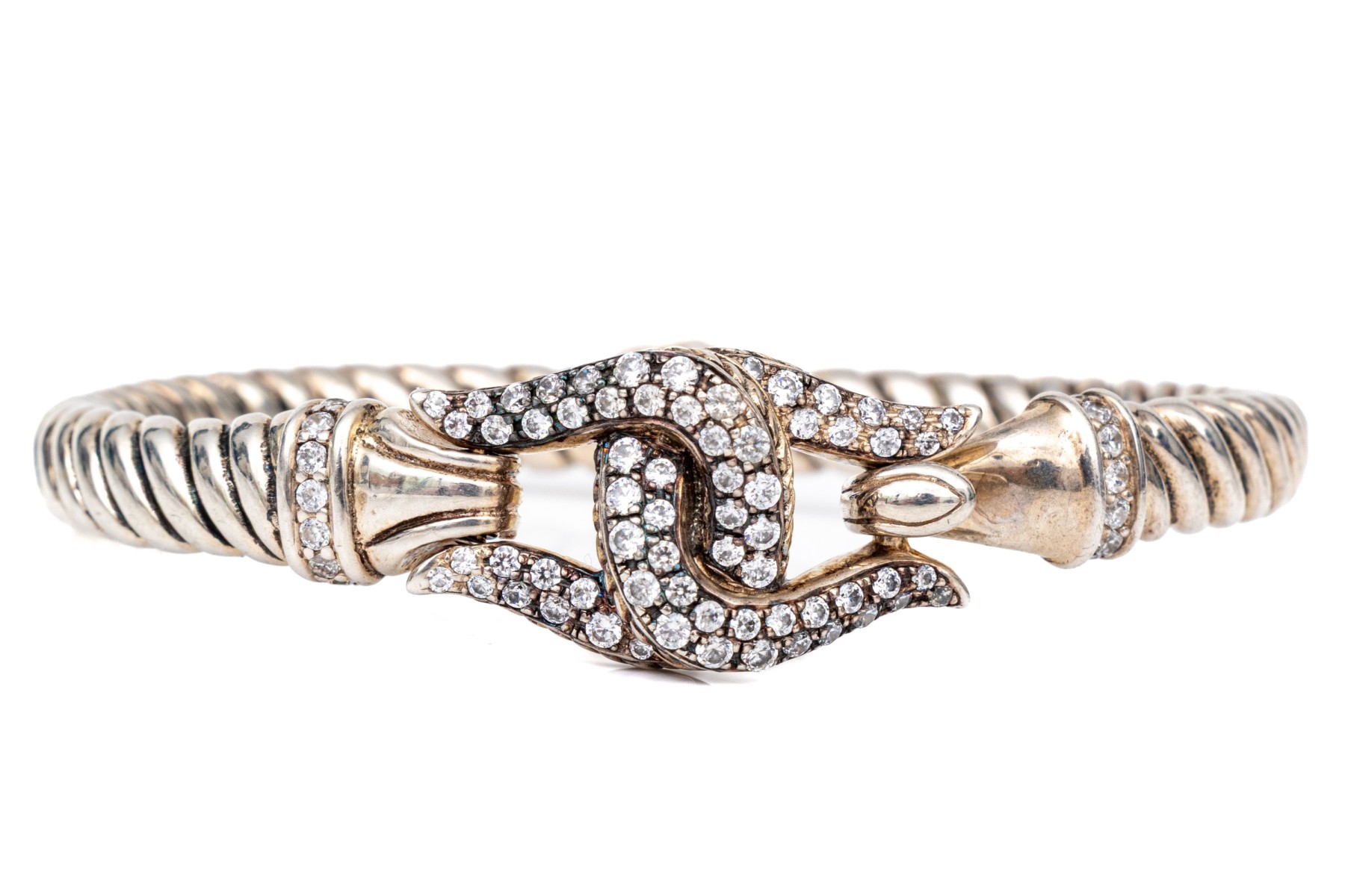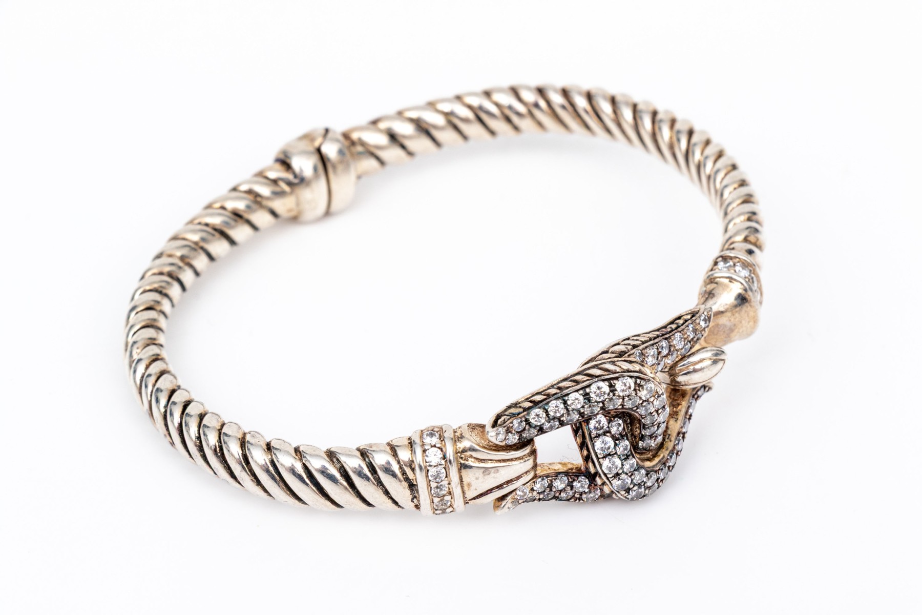 Scott Kay Sterling Silver Fabulous CZ Set Knot And Cable Hook Bracelet, Small Diameter #447323. Black Rock Galleries provides high end estate liquidation services through online estate auctions and a 50,000 sq ft designer showroom. estate liquidator, estate sale, online auction, antiques, fine art, liquidation, clean outs, auction, consignment, interior design, fine jewelry, collectibles, appraisals, estate appraisals, estate services, decor, furniture, furniture consignment, antique center, consignment shop. We offer appraisal services and specialize in fine art, jewelry, antiques and decorative arts. Sell with us. Black Rock Galleries is the tri-state's largest estate liquidator serving New England and the greater New York City area. We are the trusted source for expert appraisals, auction services, estate sales, and consignments. Black Rock Galleries is the east coast's largest and most trusted estate liquidator, with locations in Connecticut, greater Boston, MA and Raleigh, NC, Fairfield, Southport, Apex, TX. We are the best source for expert appraisals, auction services, estate sales and consignments. We have served thousands of families and estates with compassion, professionalism and expertise. BRG works with attorneys, executors, realtors and families to bring the greatest return on personal and estate property in the current market. Our unique combination of services make us the easy choice to get the job done in a timely and stress-free manner. We are with you from the initial consultation to the final clean out. Our house-built online auction software platform offers clients a dynamic approach to liquidating their personal property. This venue is most successful in bringing the best return with the least amount of disruption for our clients. See our services page for a complete description of this offering. Scott Kay Sterling Silver Fabulous CZ Set Knot And Cable Hook Bracelet, Small Diameter #447323