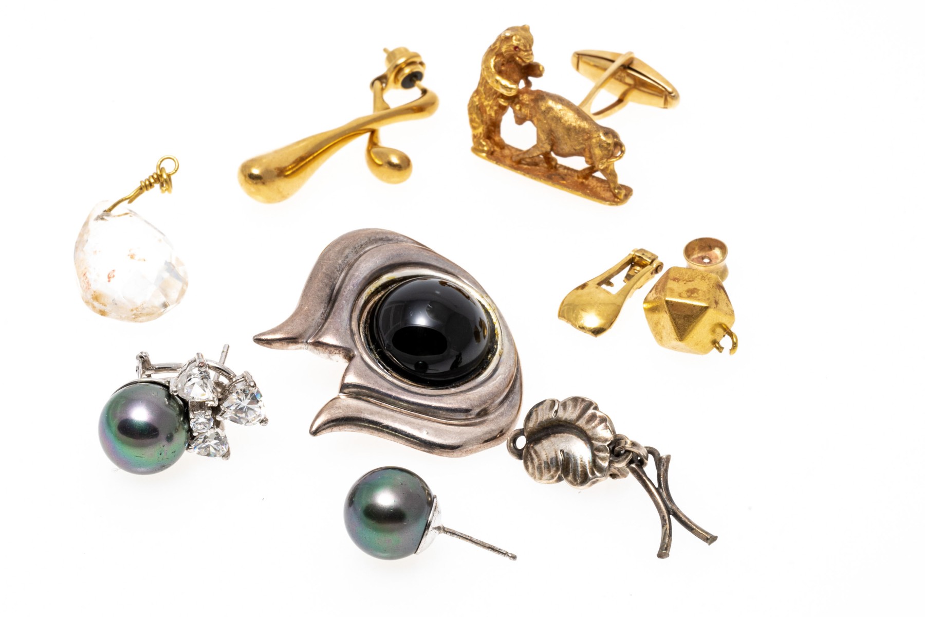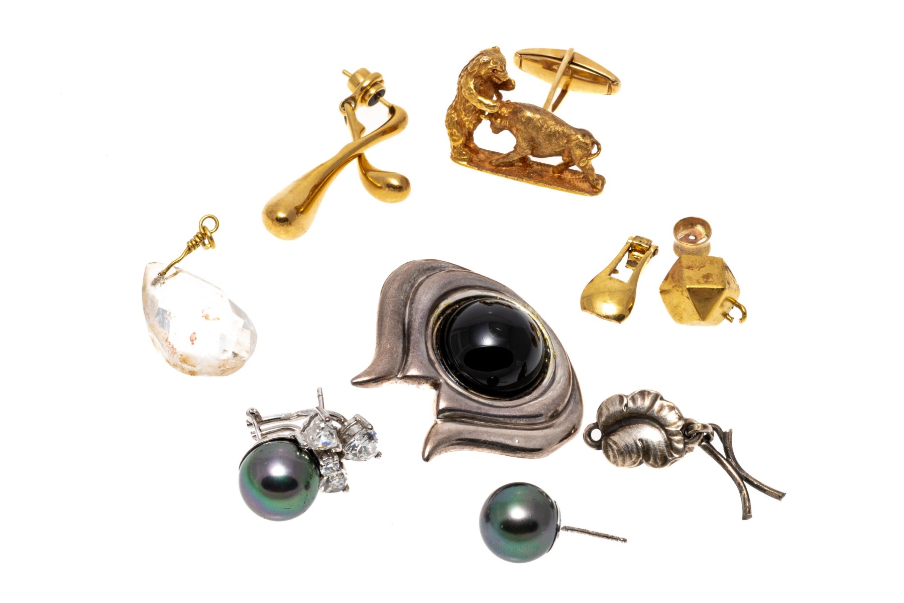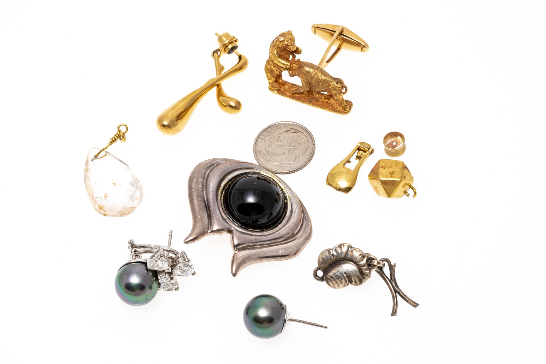 Scrap lot of 14k gold, 17.6 gross dwt and sterling silver, 15.4 gross dwt; included in the scrap is Georg Jensen half pair earring