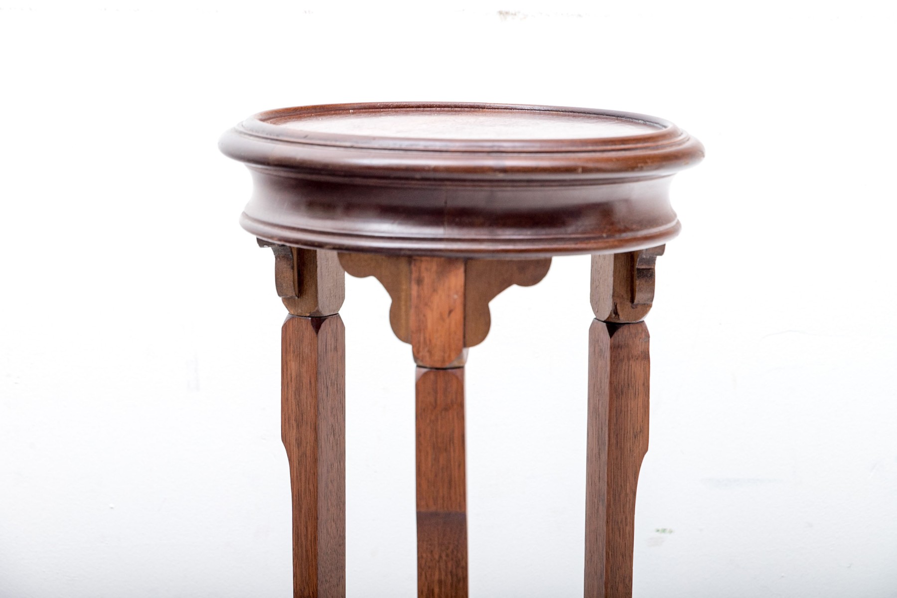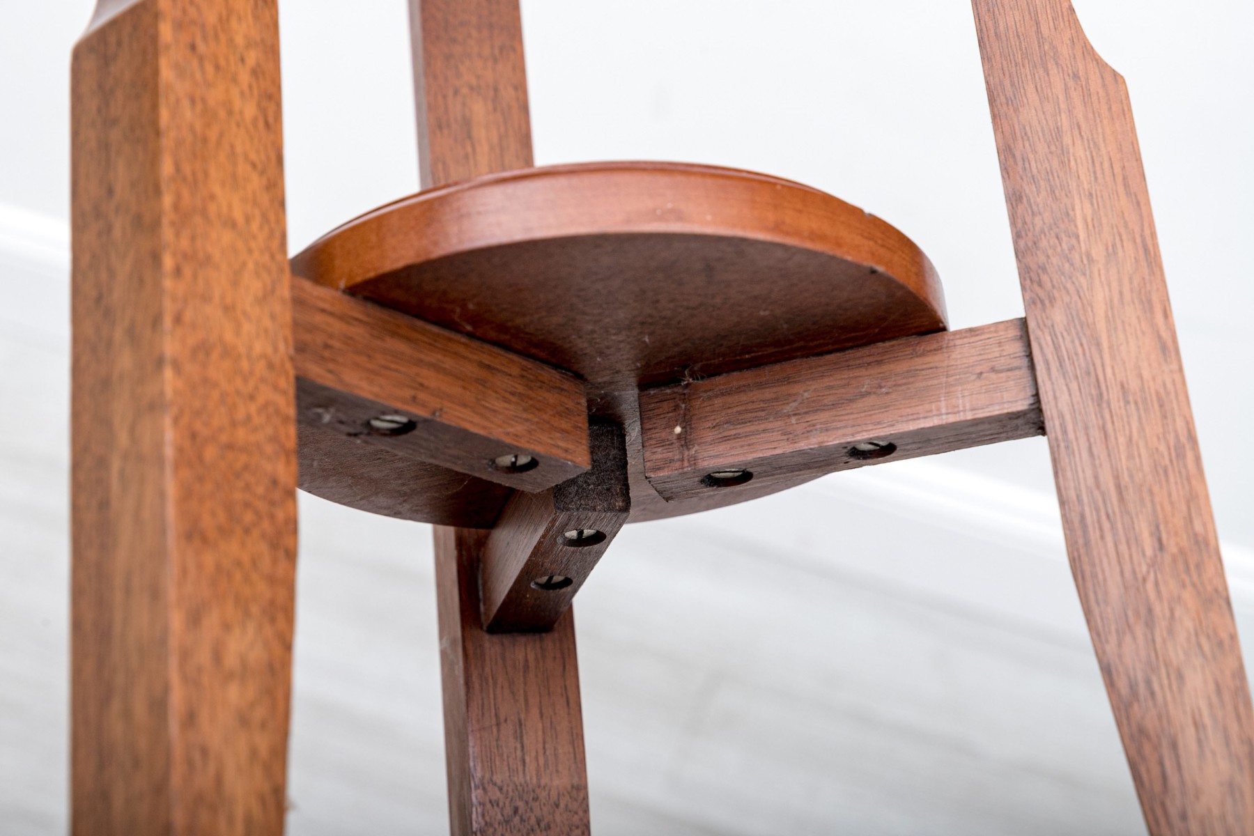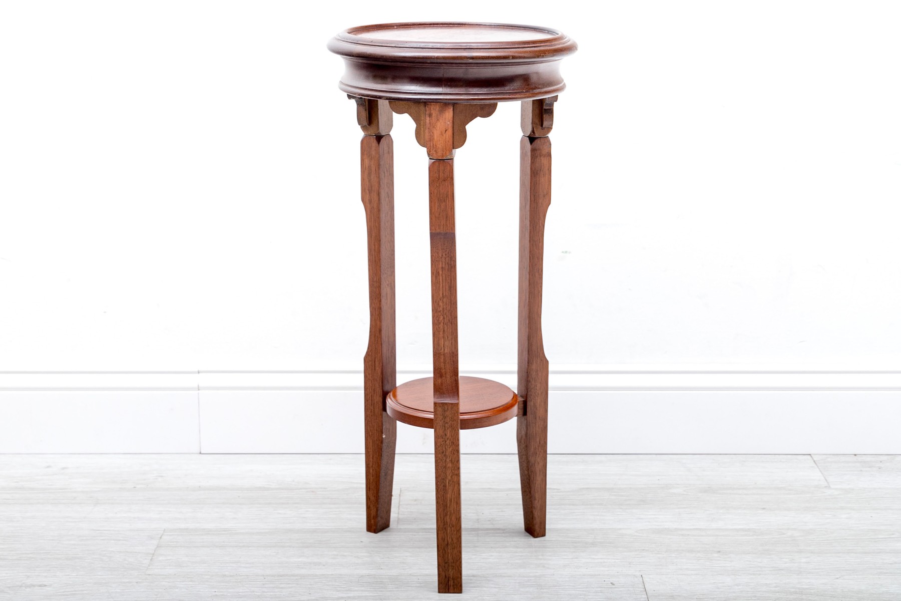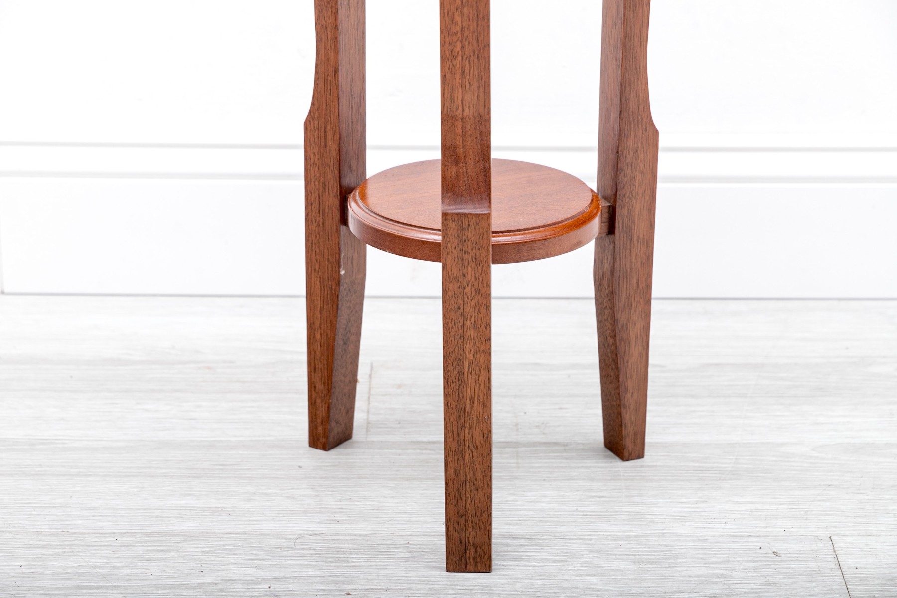 Sharp, rigid edges and scrolled details adorn this lovely tripod pedestal plant stand.