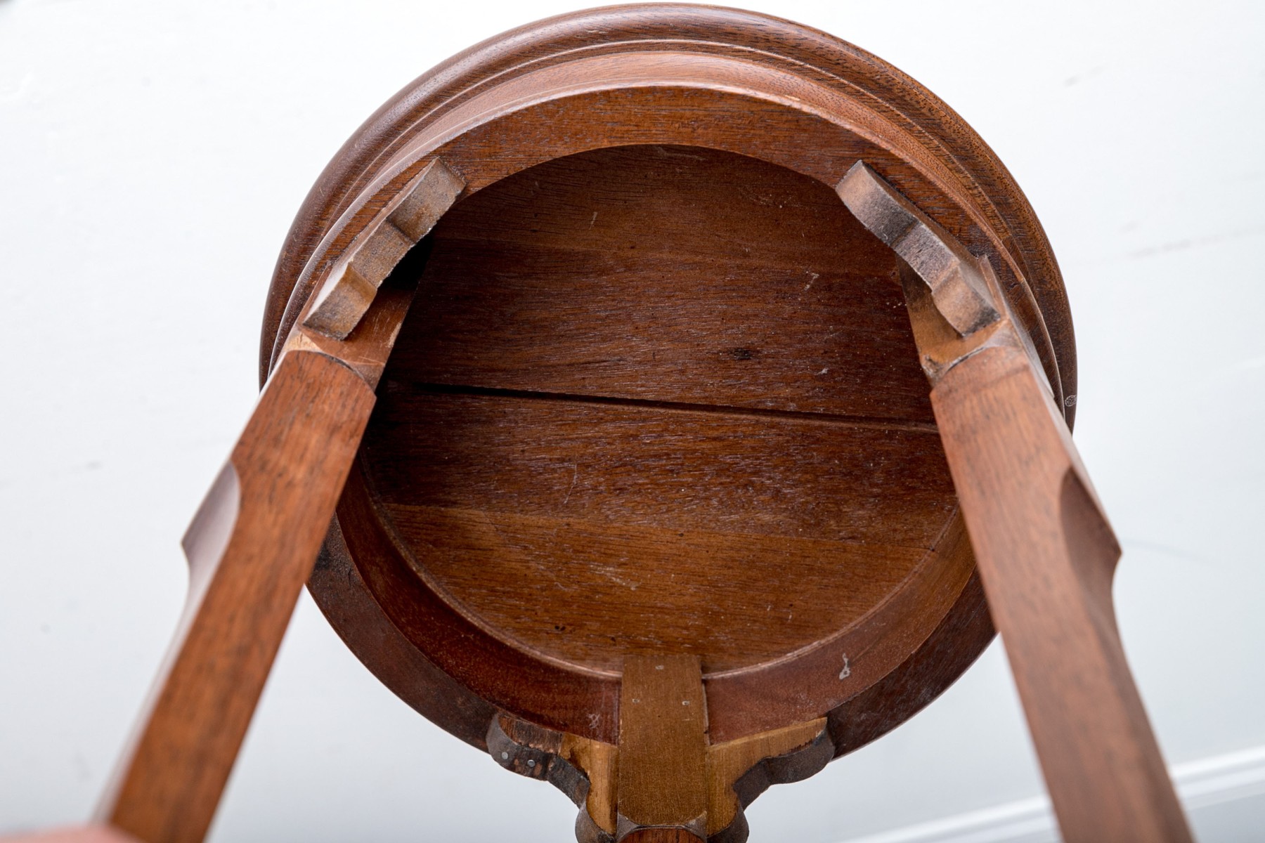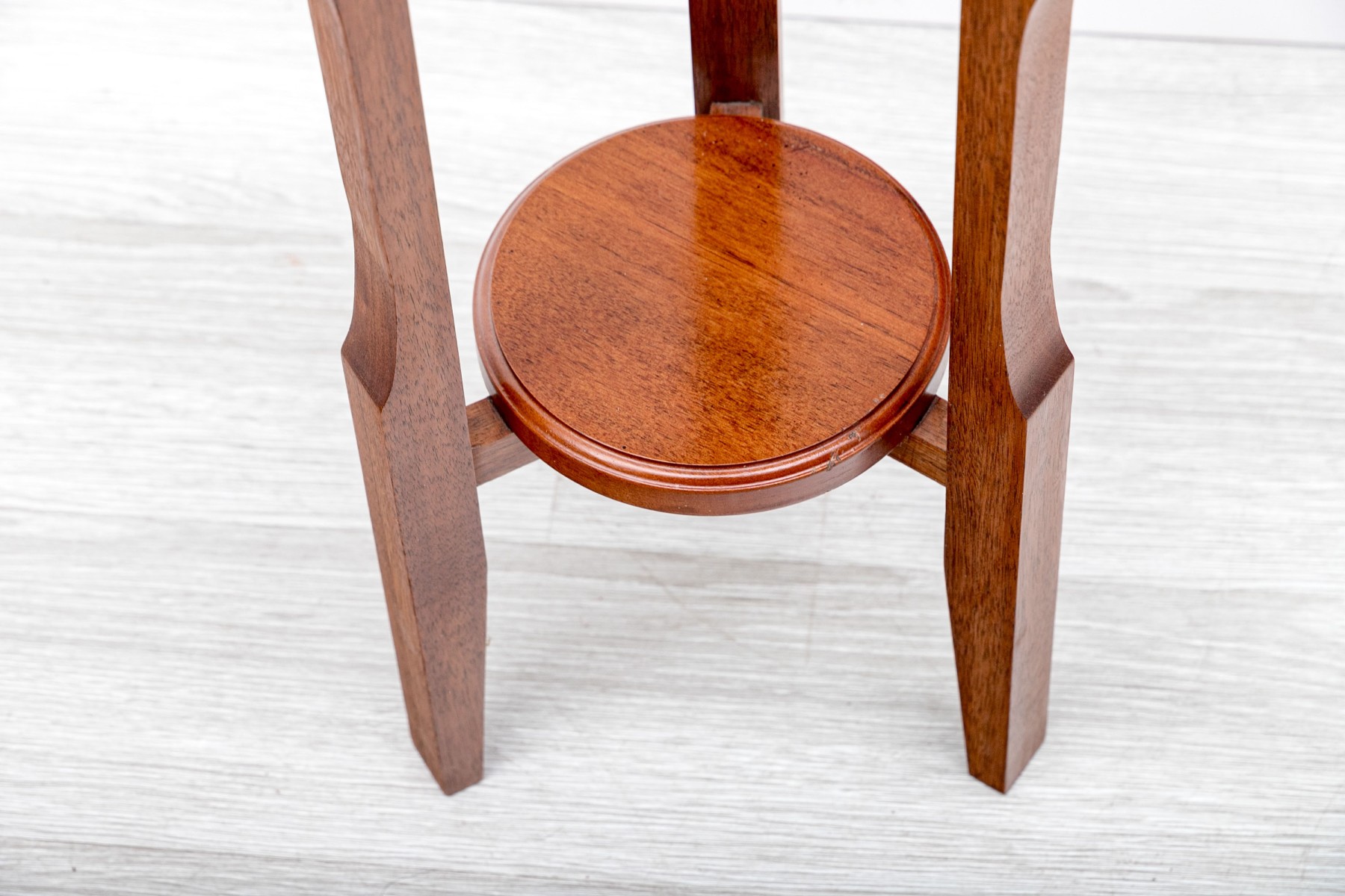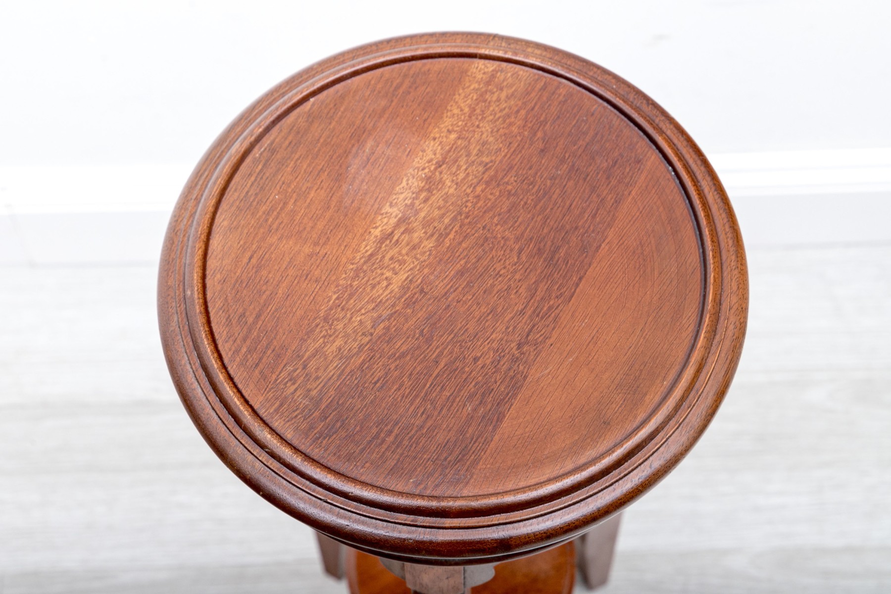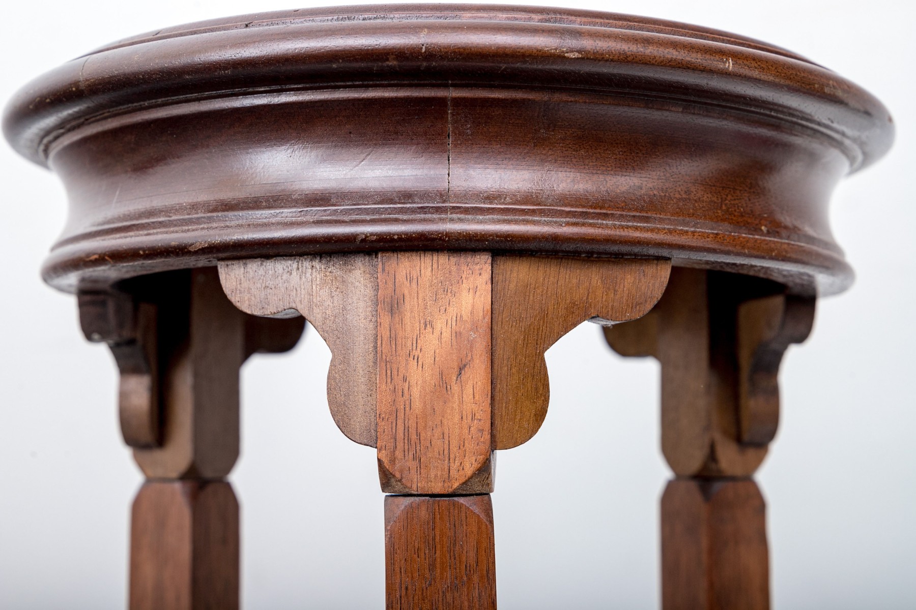 Sharp, rigid edges and scrolled details adorn this lovely tripod pedestal plant stand.