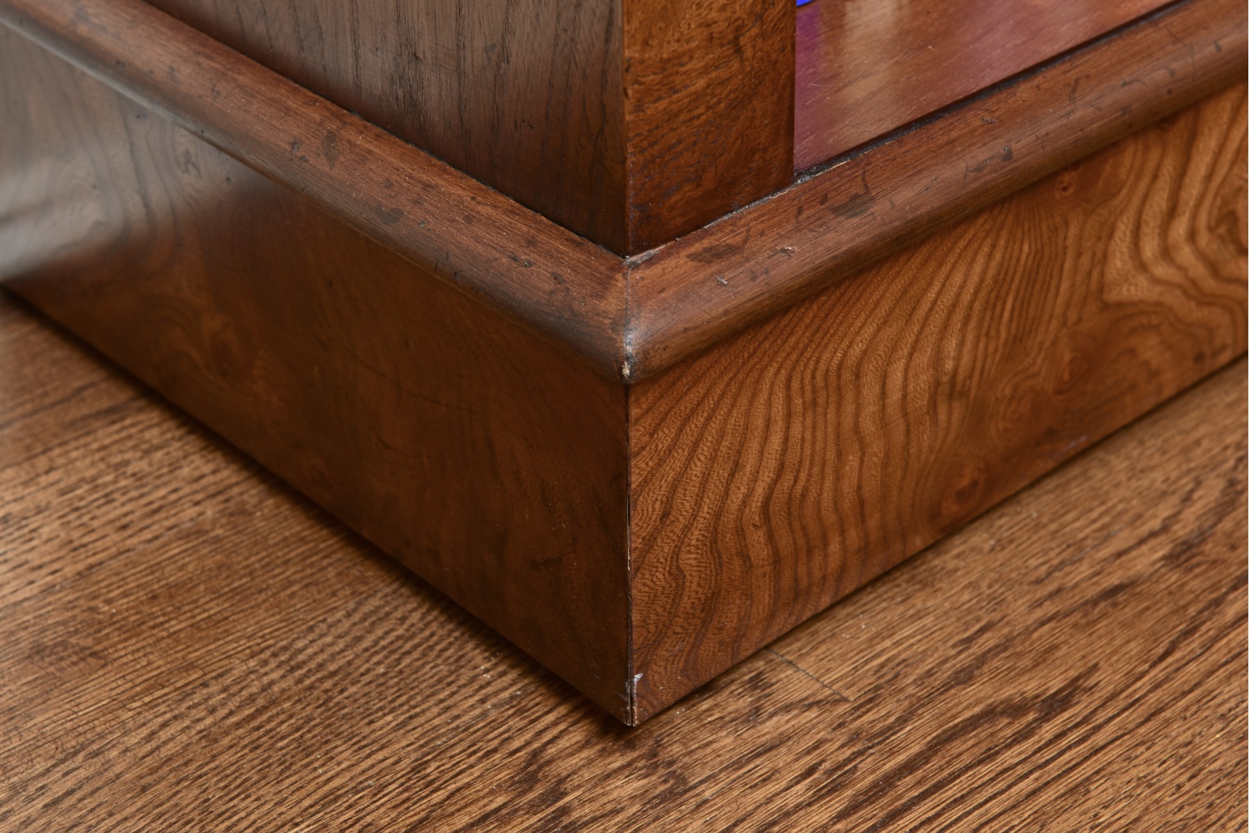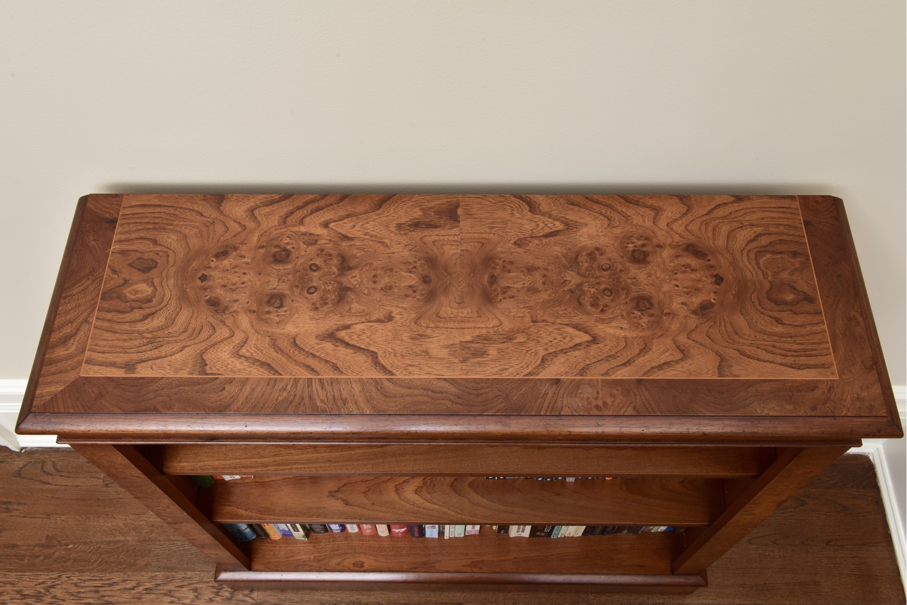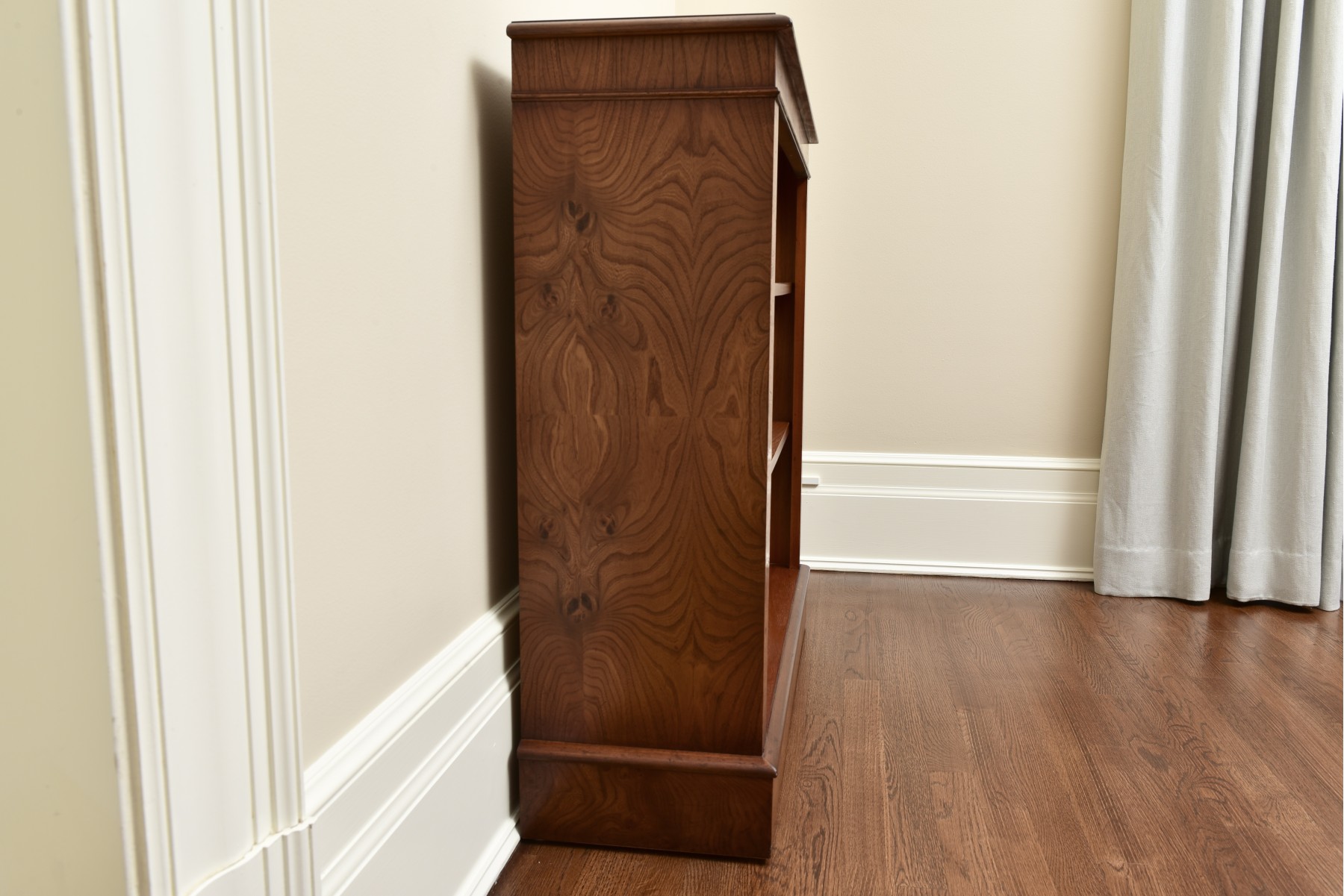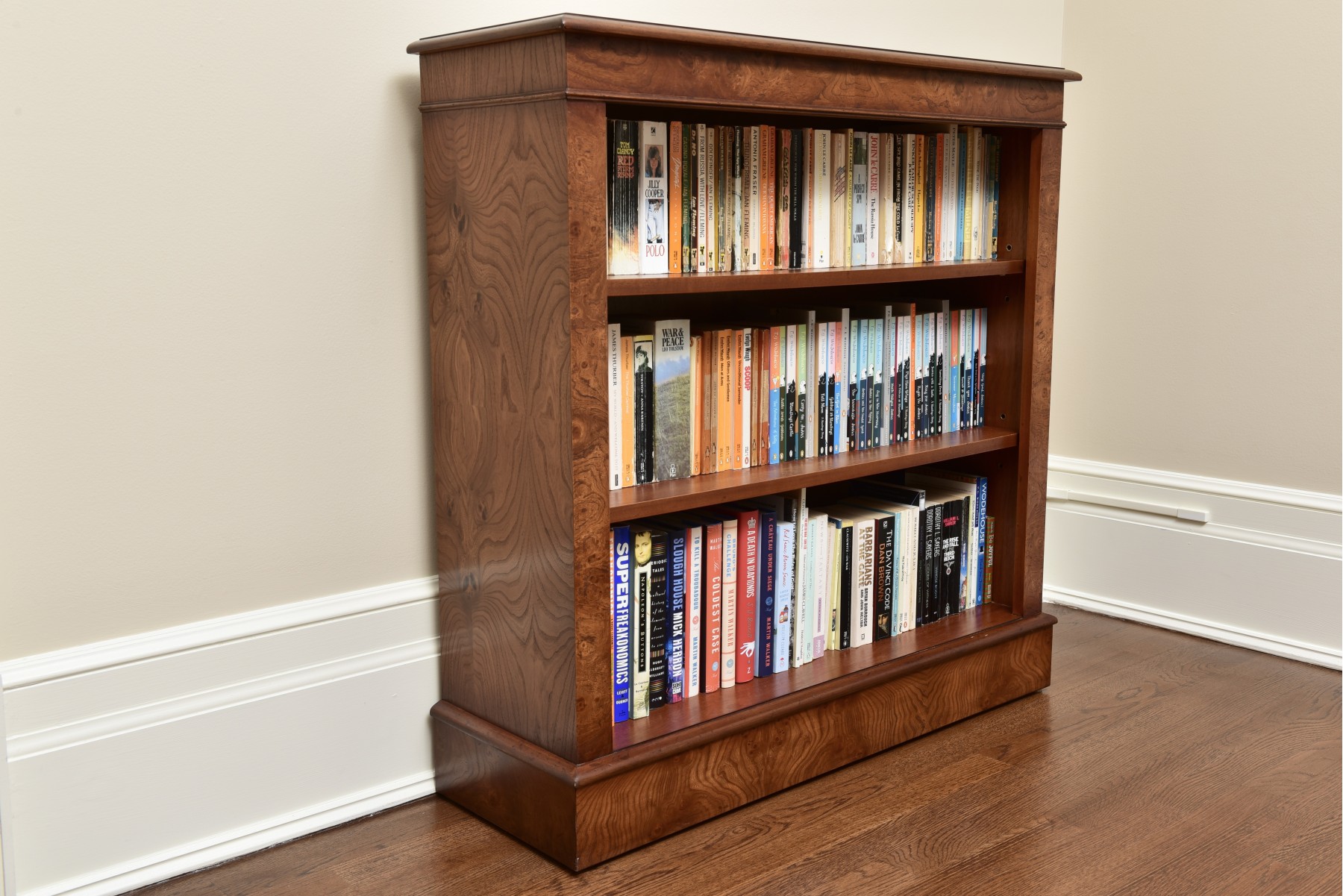 The Scully and Scully Elm bookcase is a beautifully crafted piece that showcases the rich, warm tones of elm wood. With its classic design, this bookcase features three shelves, providing ample space for books, decorative items, and personal treasures. The fine craftsmanship is evident in the intricate detailing and smooth finish, making it a standout addition to any home office or living space. Its timeless elegance complements various decor styles, from traditional to contemporary, while the sturdy construction ensures durability. This bookcase not only serves a practical purpose but also adds a touch of sophistication to your interior.