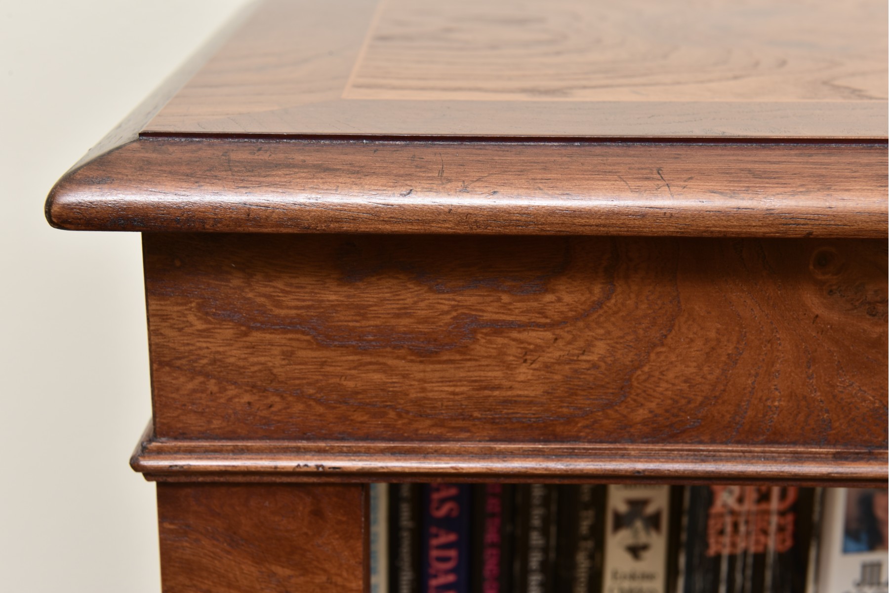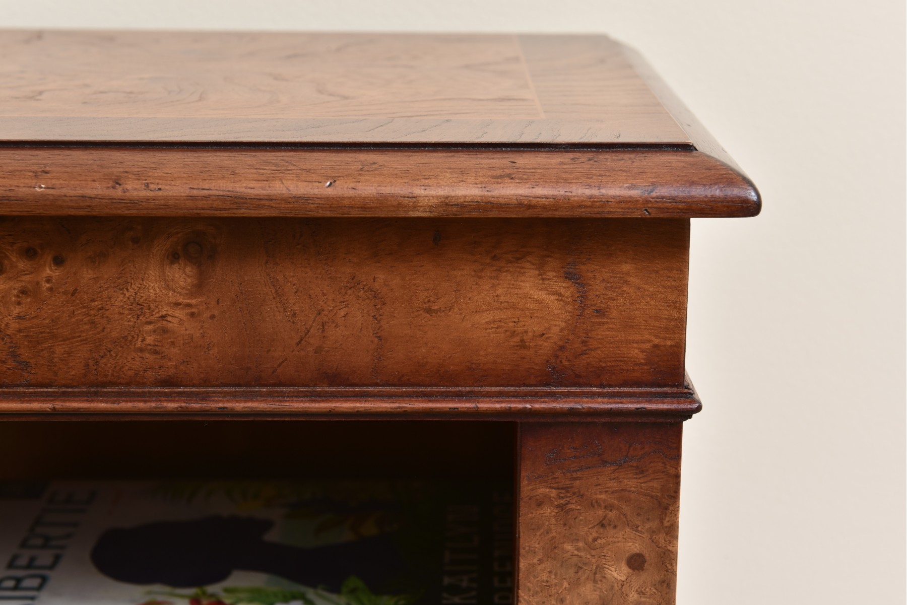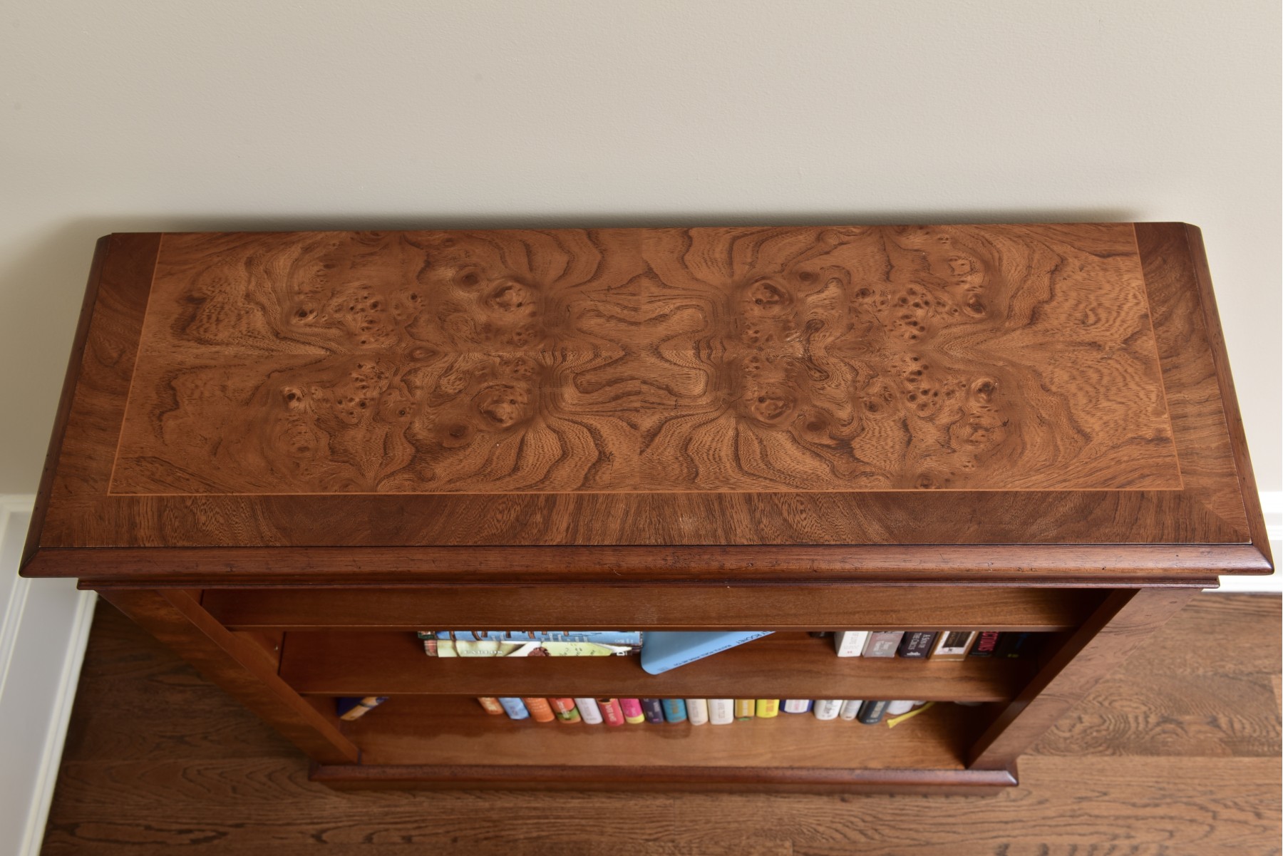 The Scully and Scully Elm bookcase is a beautifully crafted piece that showcases the rich, warm tones of elm wood. With its classic design, this bookcase features three shelves, providing ample space for books, decorative items, and personal treasures. The fine craftsmanship is evident in the intricate detailing and smooth finish, making it a standout addition to any home office or living space. Its timeless elegance complements various decor styles, from traditional to contemporary, while the sturdy construction ensures durability. This bookcase not only serves a practical purpose but also adds a touch of sophistication to your interior.