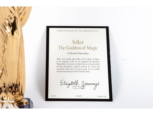 A fantastic 1989 Franklin Mint SELKET "The Goddess of Magic" porcelain figurine clad in 24K Gold.