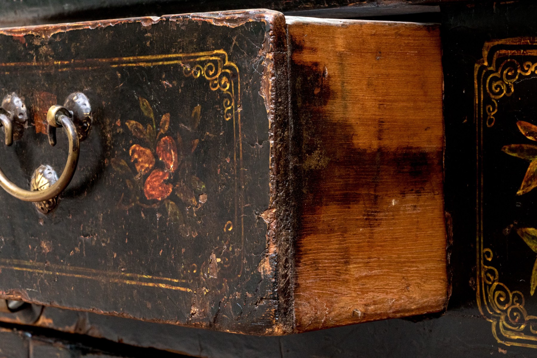 Wear to the lacquered finish with chipping and losses but despite the piece has charming aesthetic and can be used for a multitude of purposes. Please review the photos as they are part of the condition report.