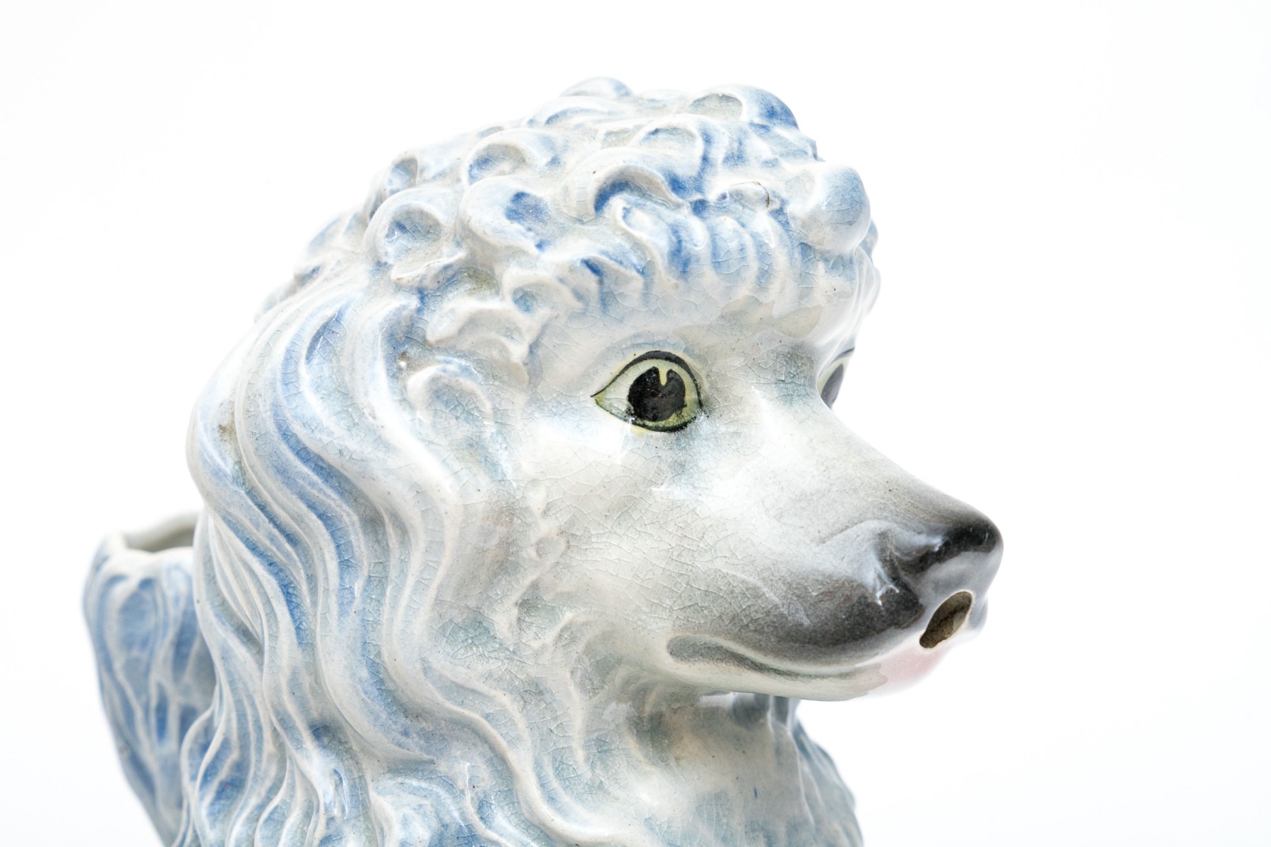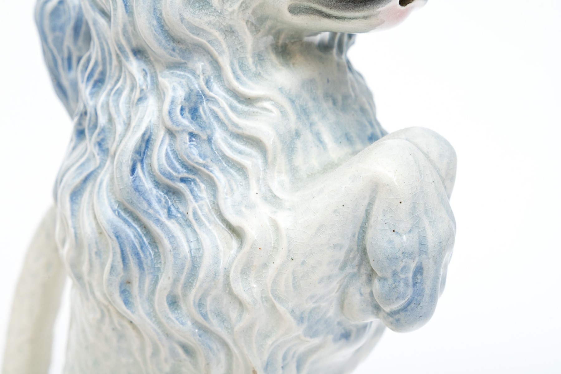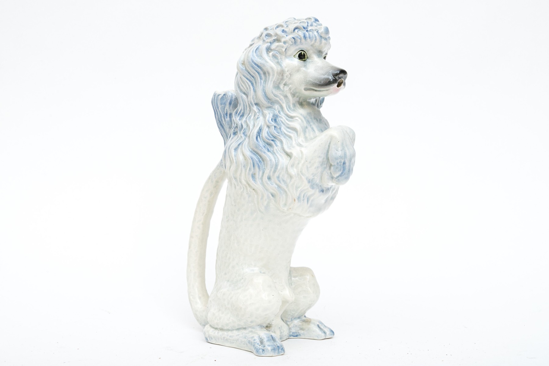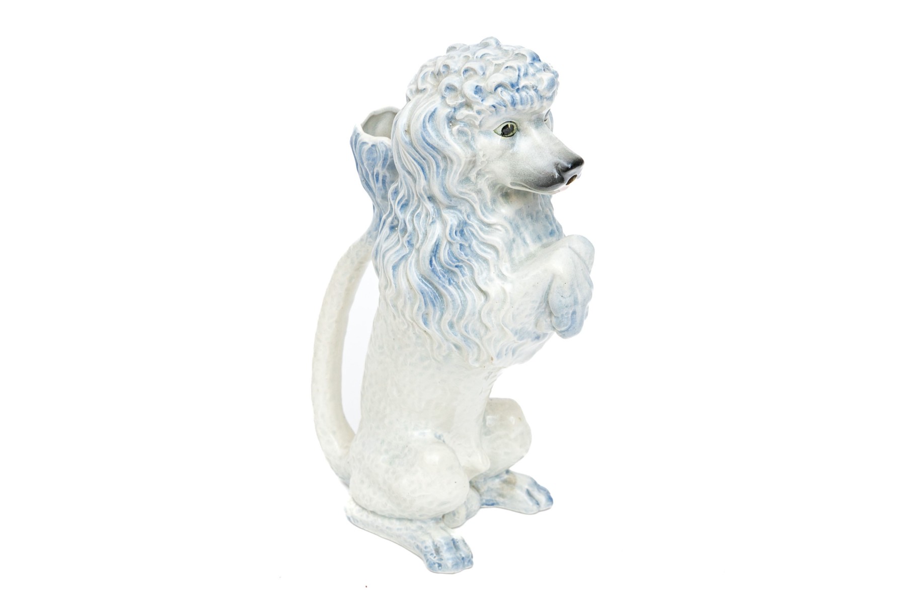 The poodle is wonderfully formed and decorated. With a handle and spout for use as a ewer.