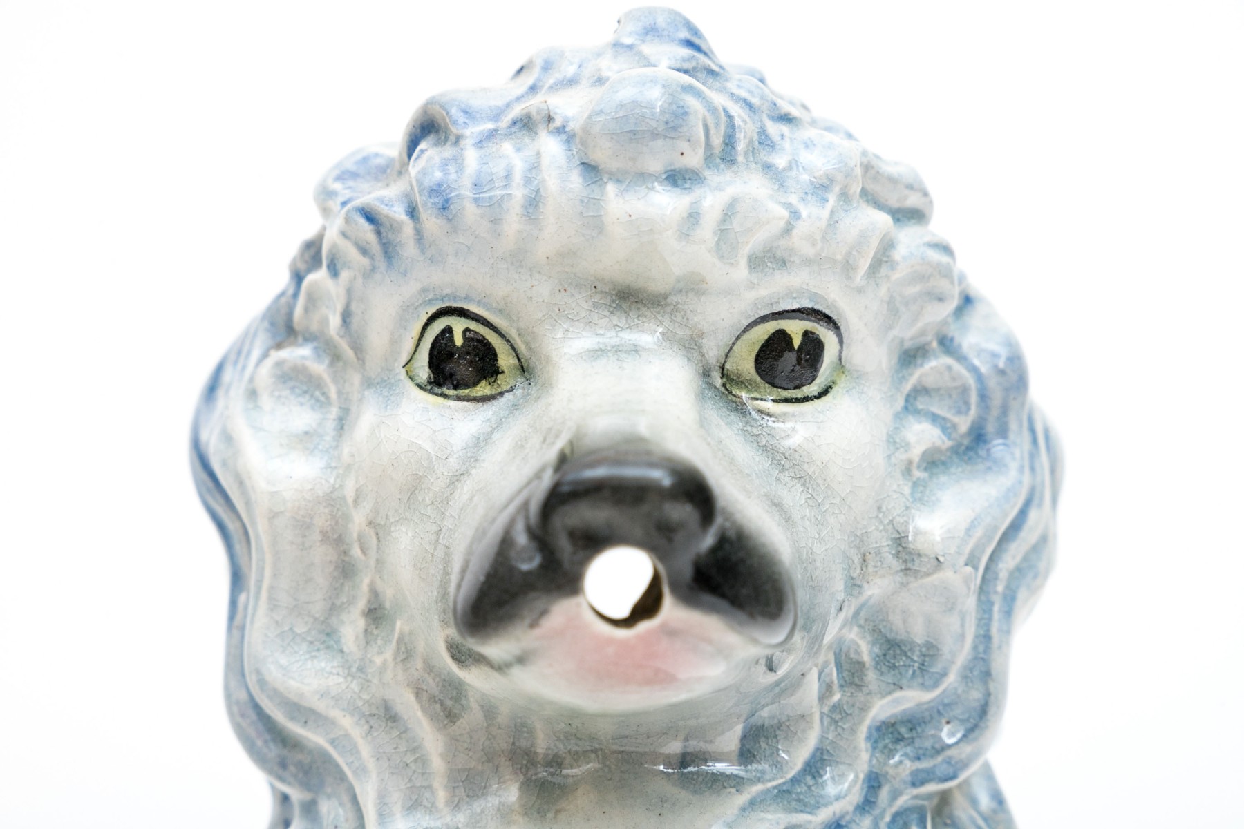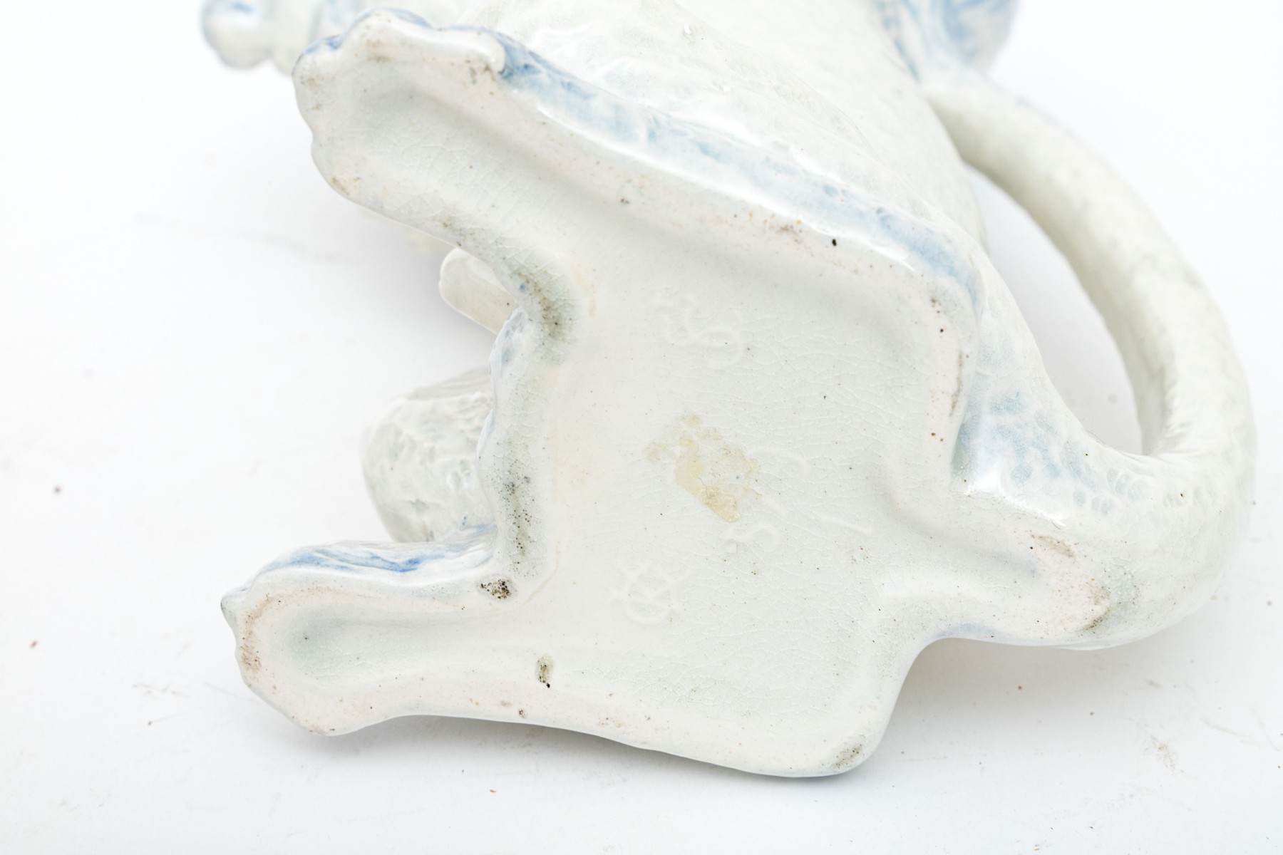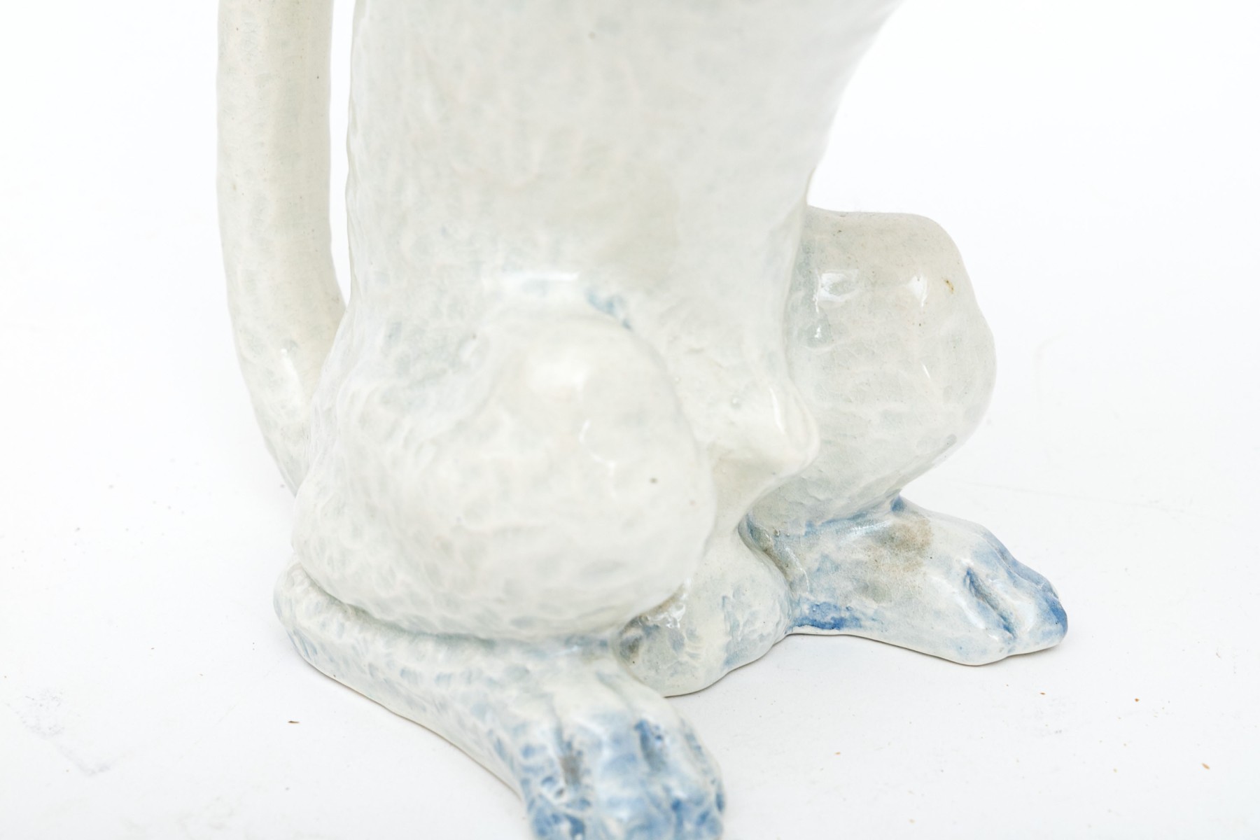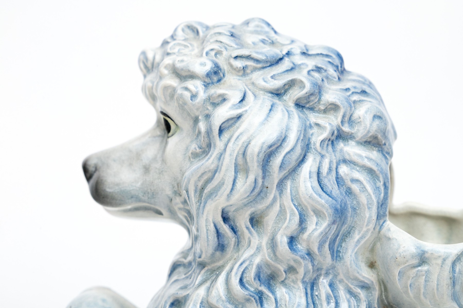 The poodle is wonderfully formed and decorated. With a handle and spout for use as a ewer.