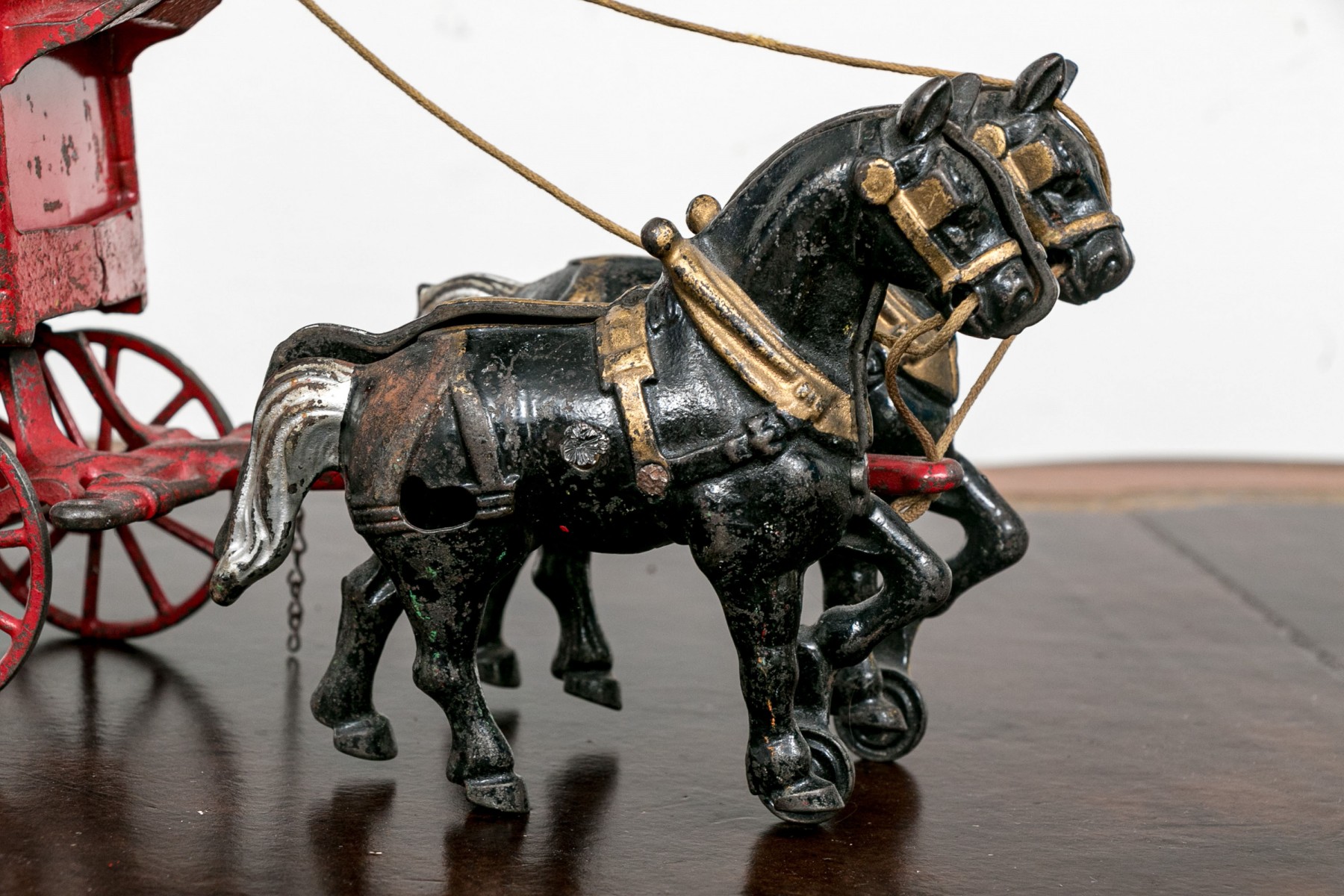 Condition: Wear to the paint finish throughout and wear to the rope attaching the horses with driver and cart along with other wear and tear commensurate with age and use. Sold As Is but presents fantastically well overall.