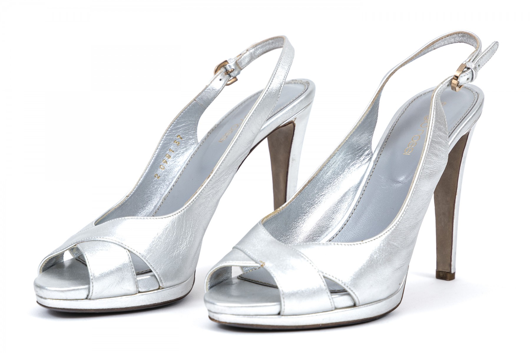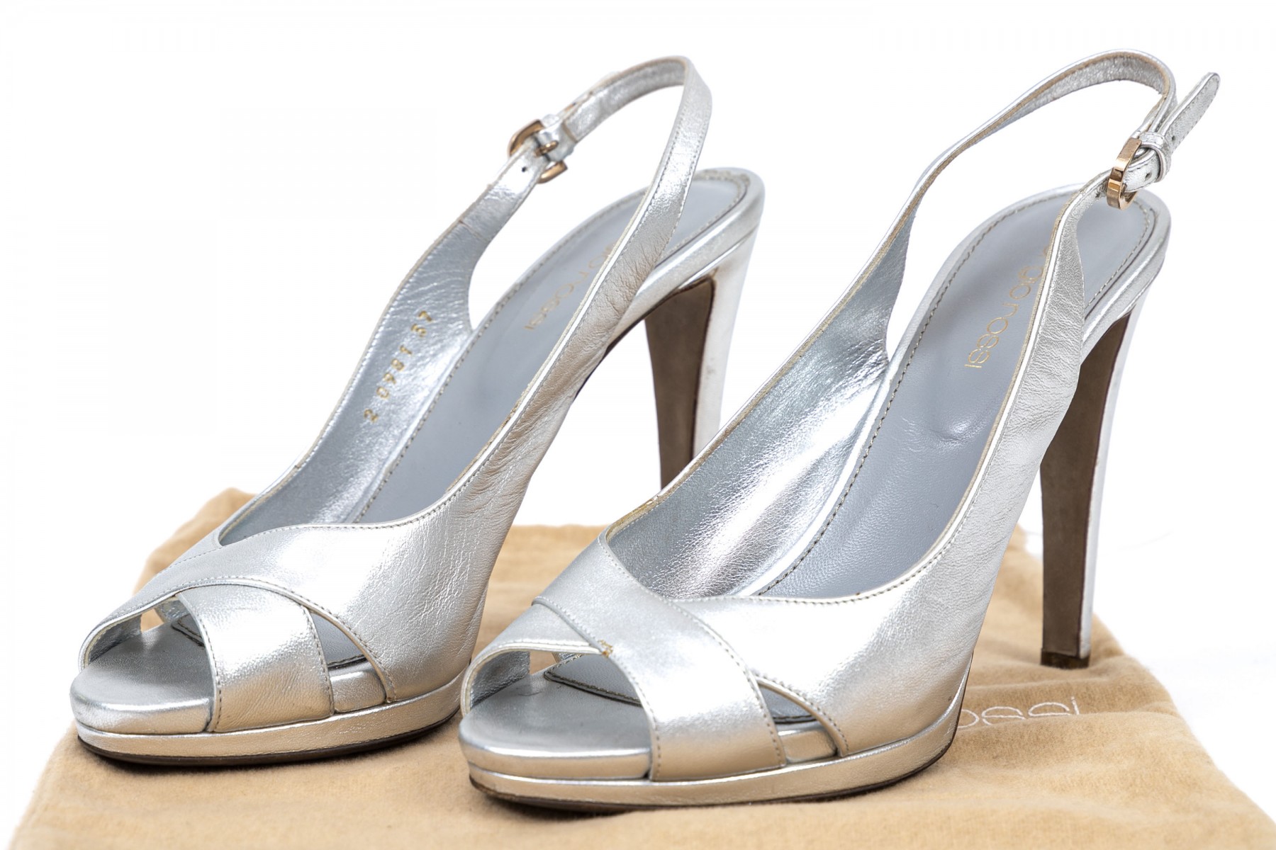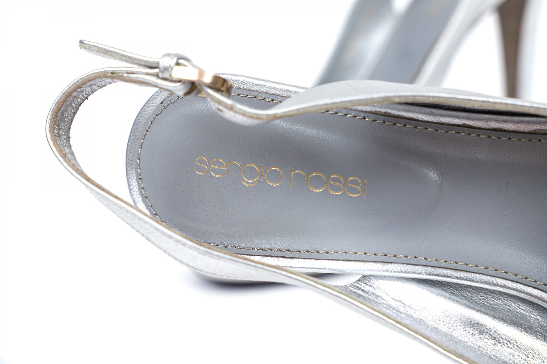 Sergio Rossi fabulous silver metallic peep toe slingbacks, size 37