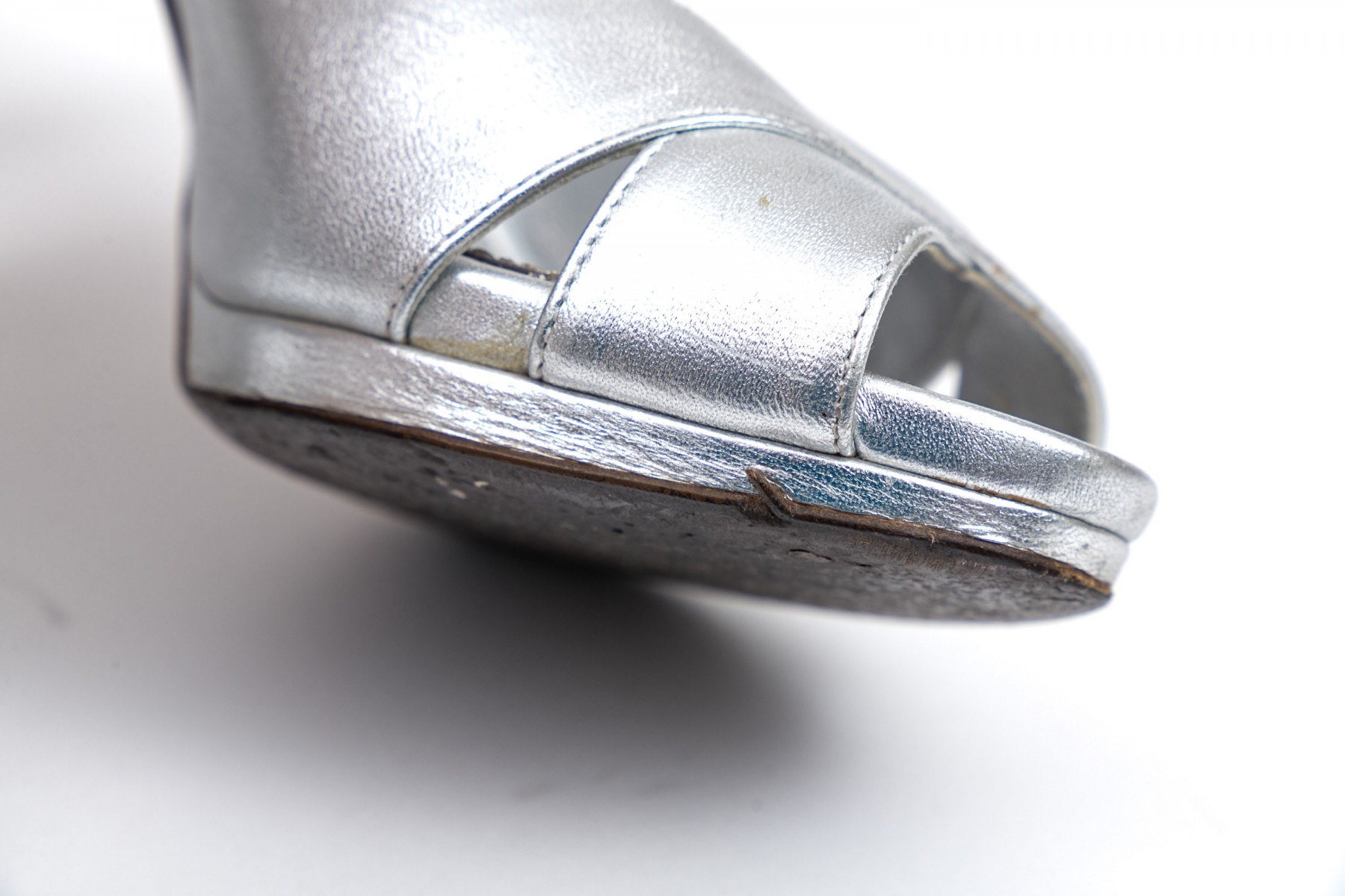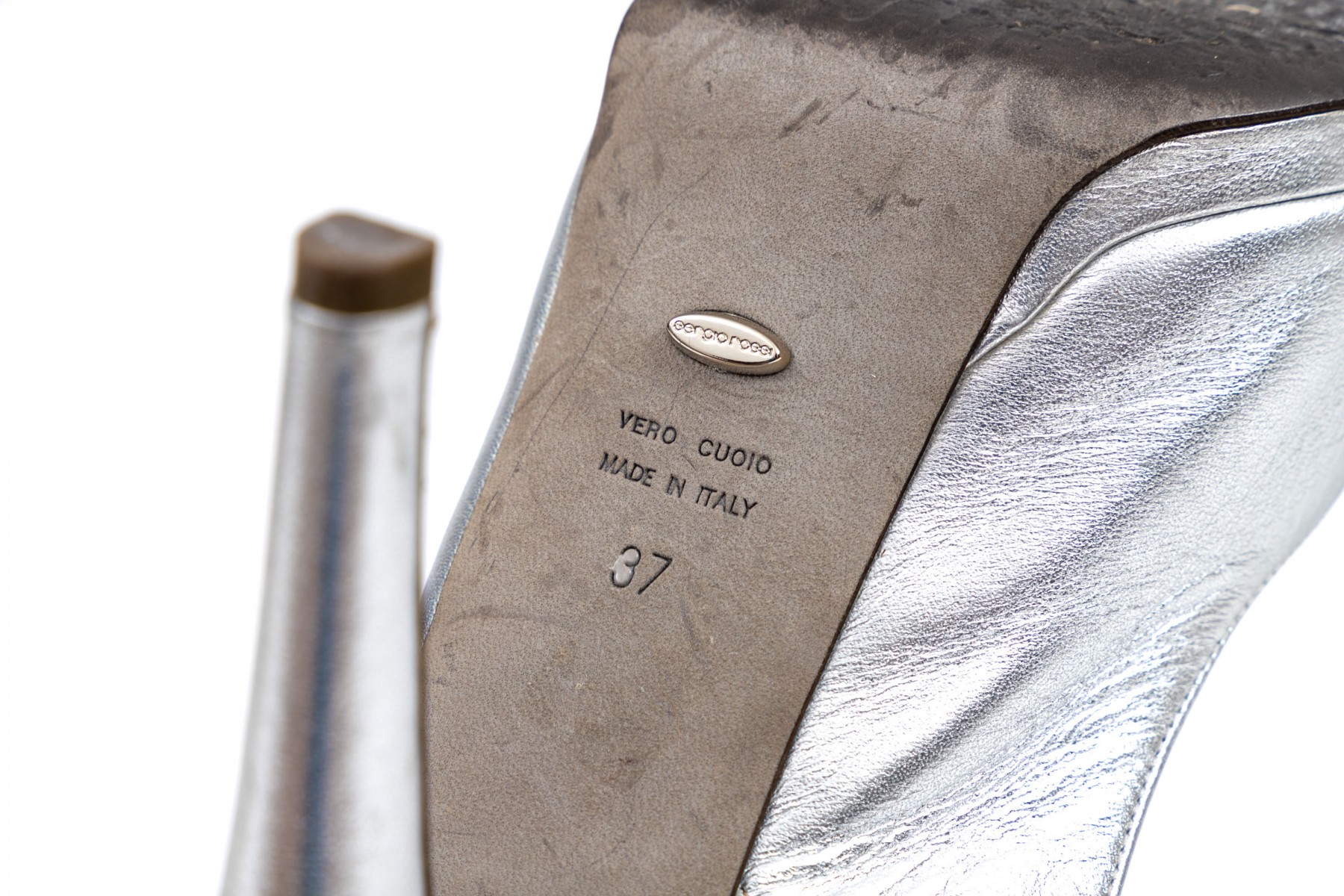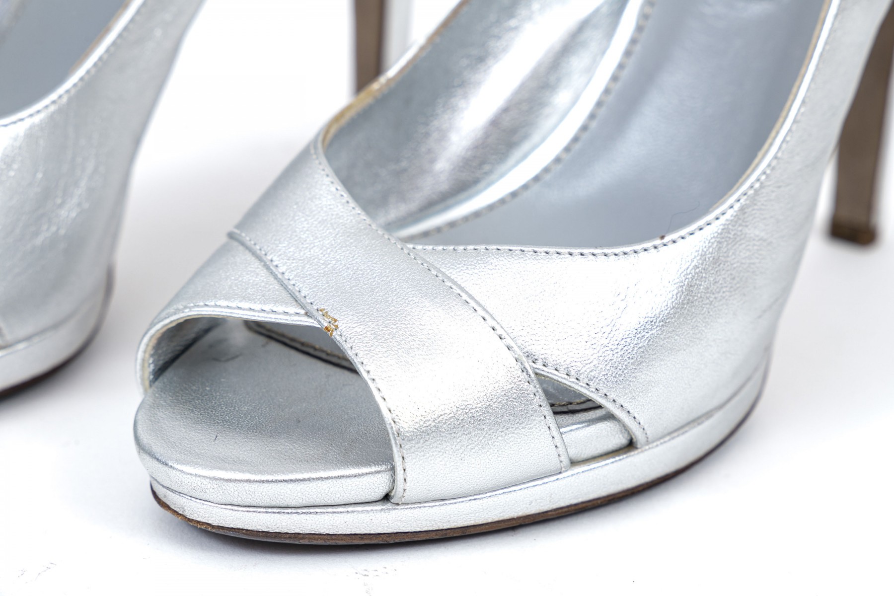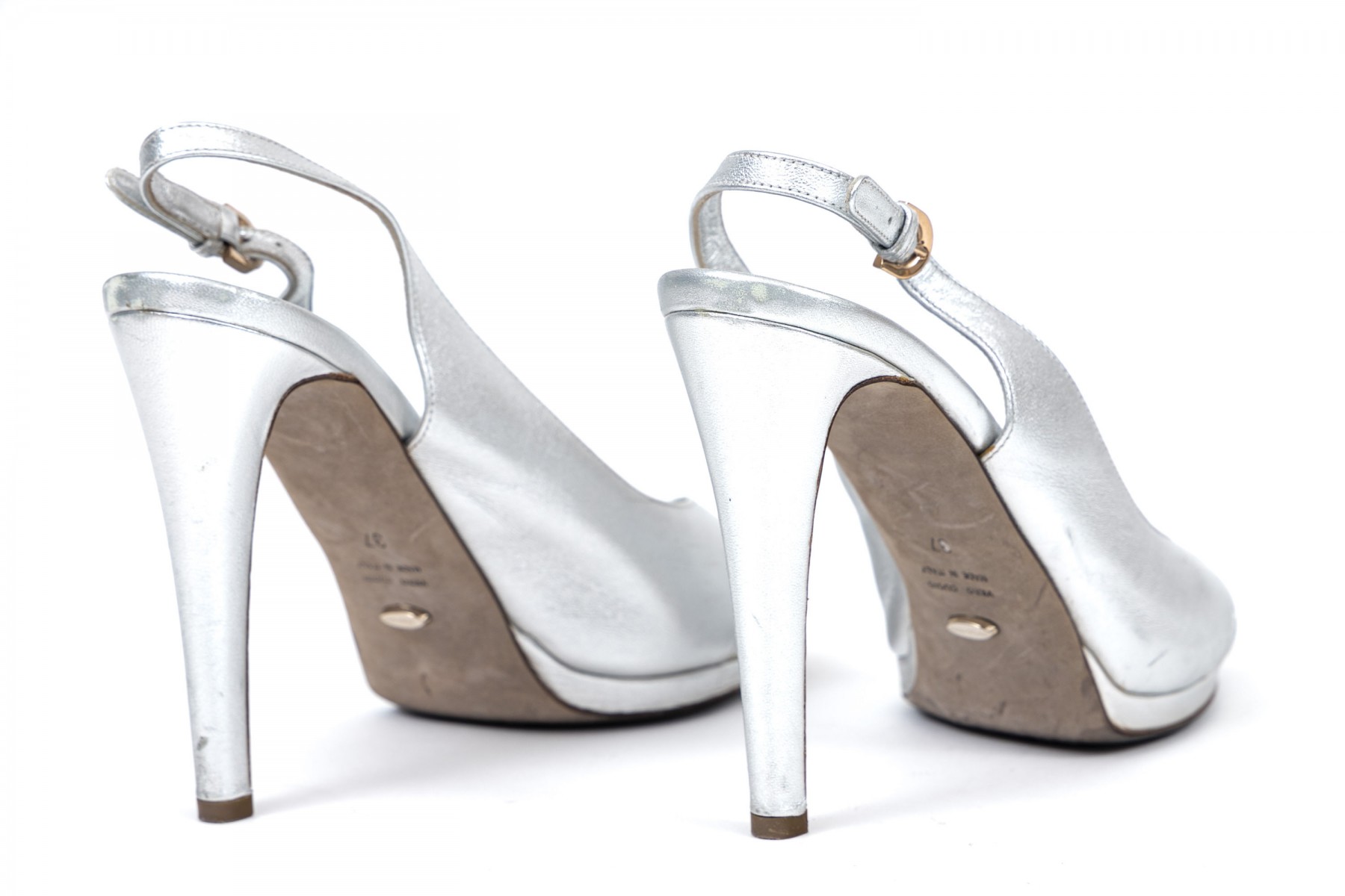 Sergio Rossi fabulous silver metallic peep toe slingbacks, size 37