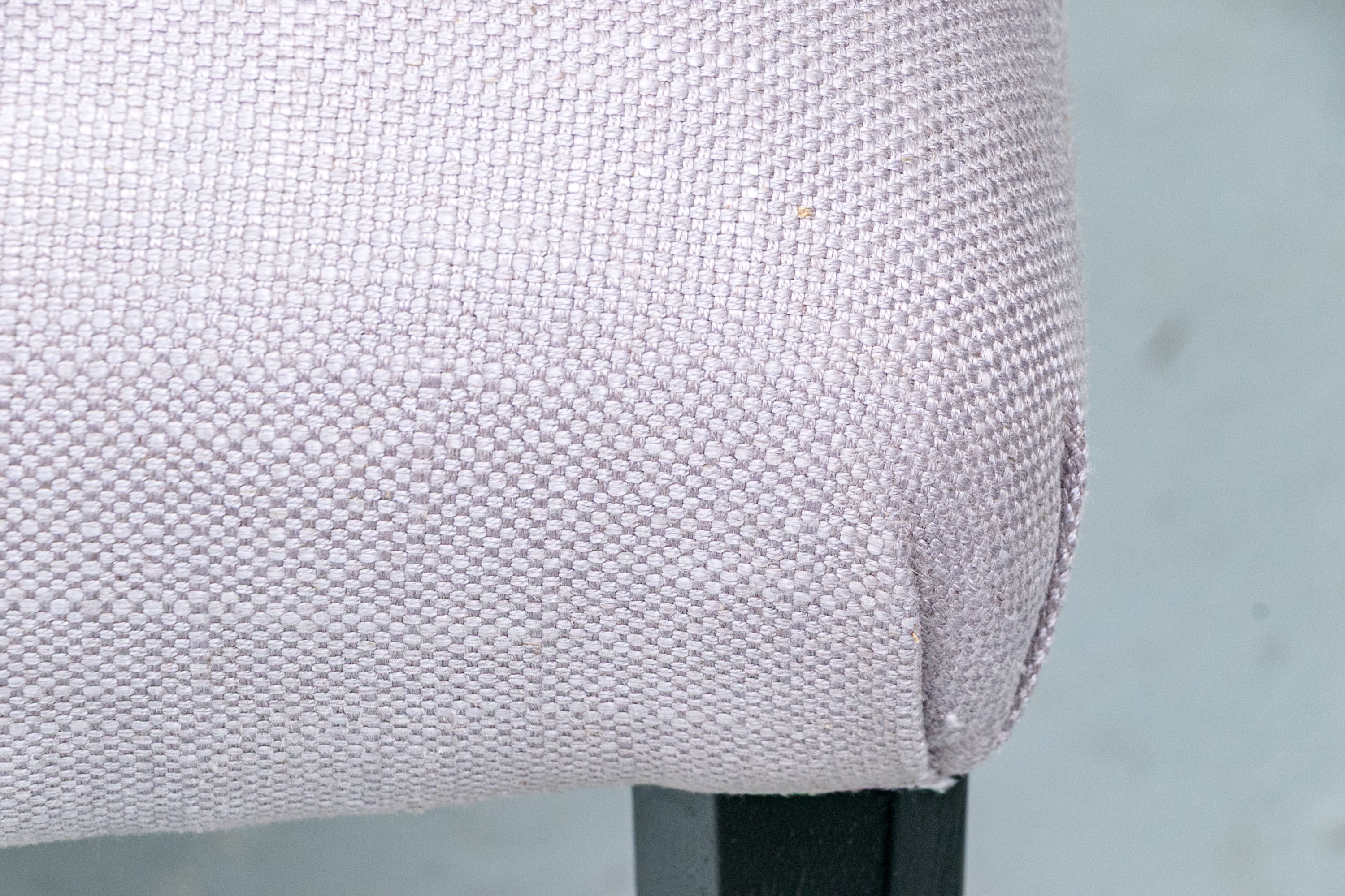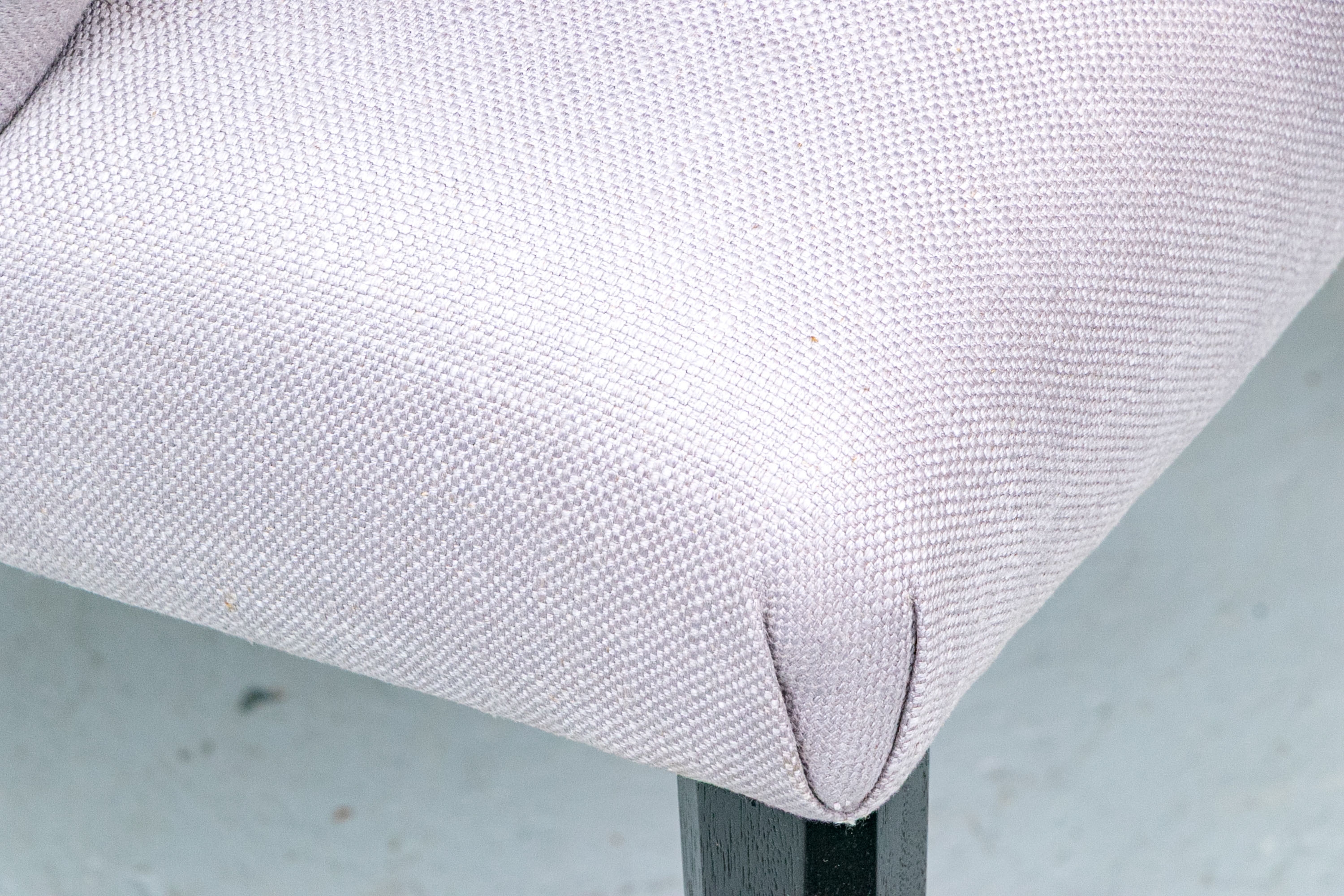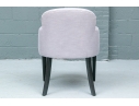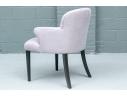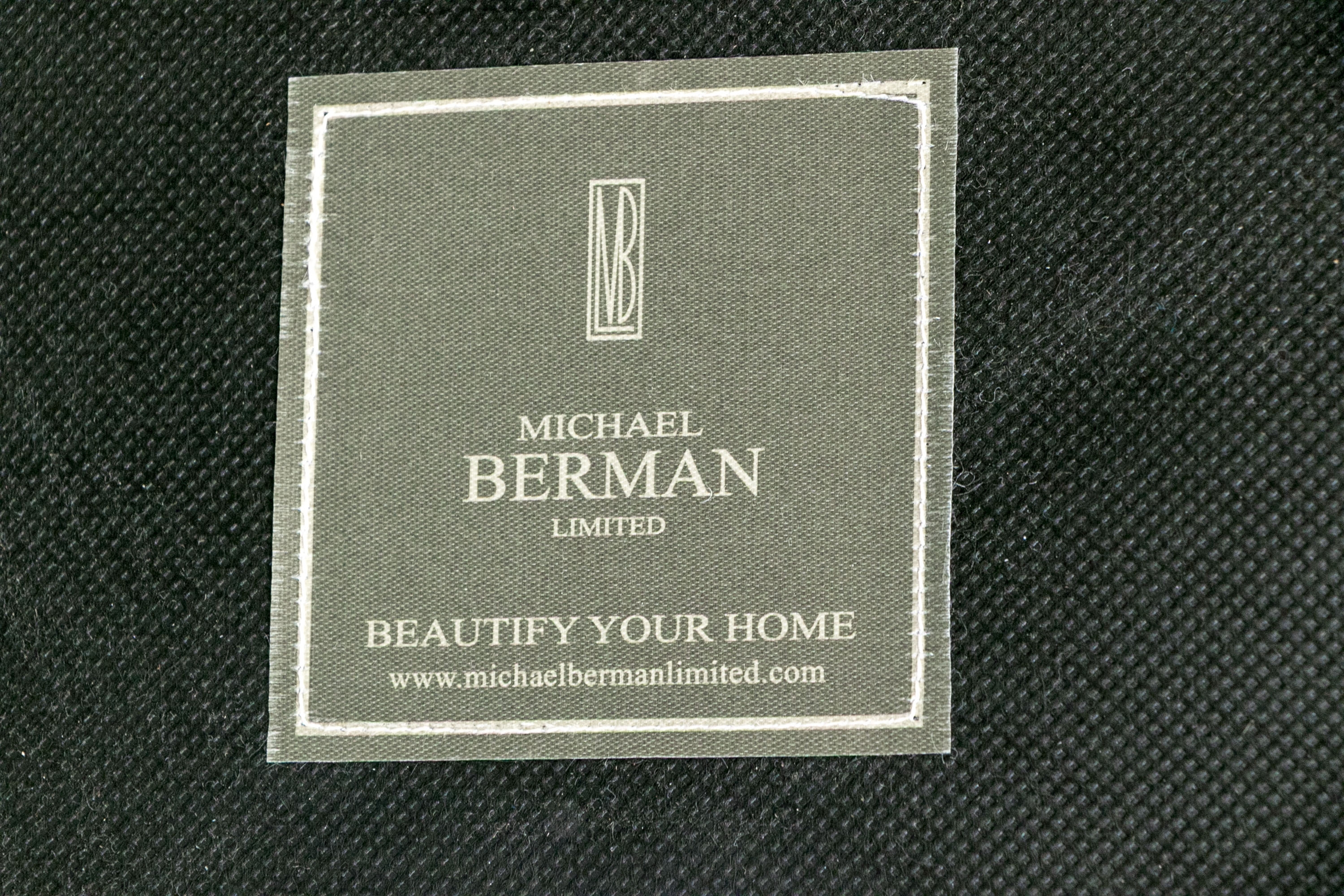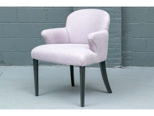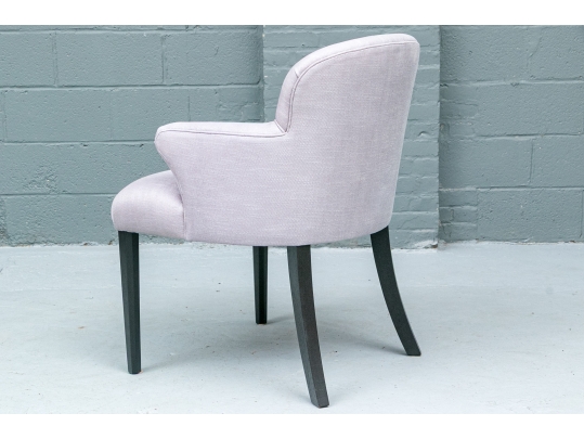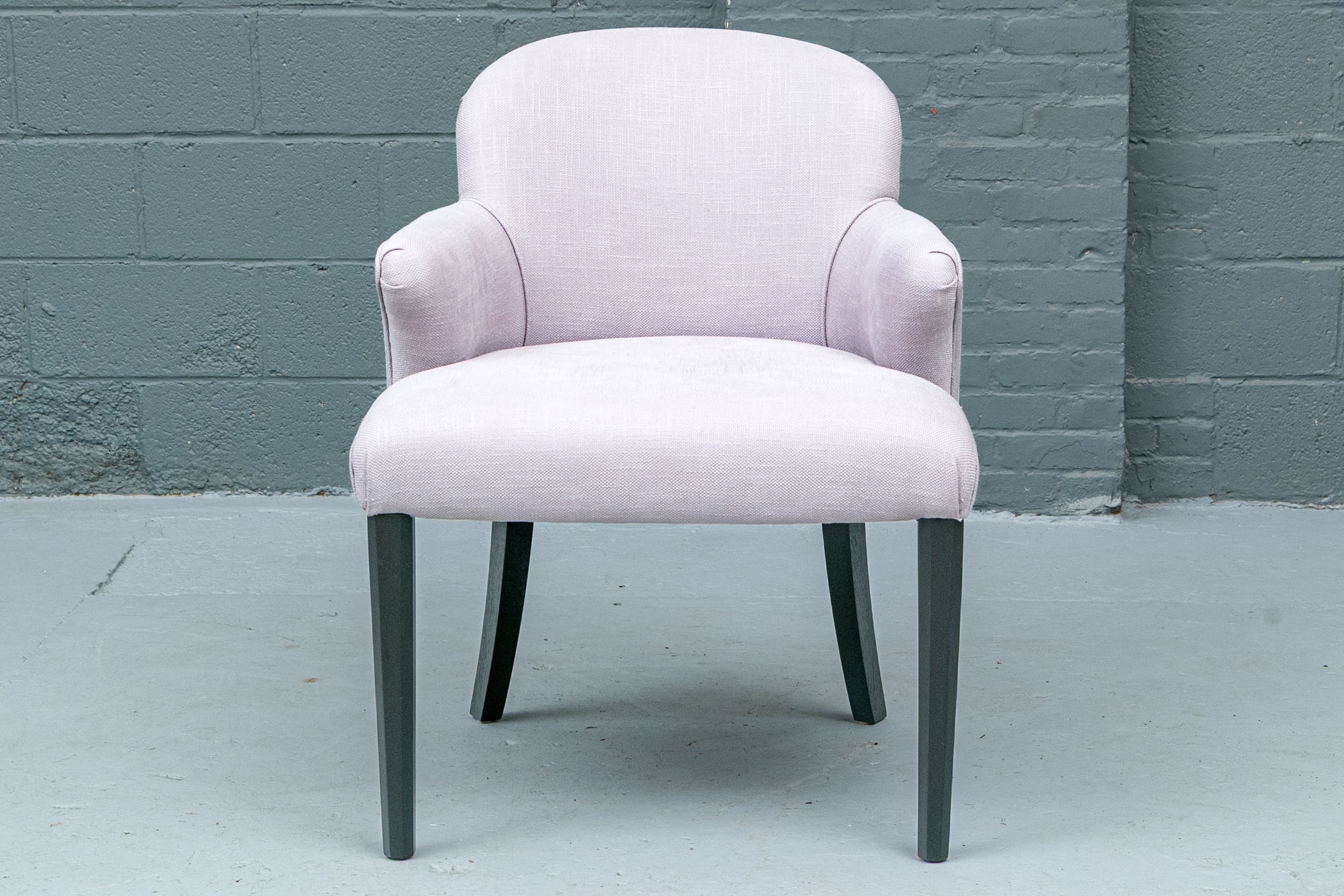 The chair is resting upon faceted and tapering front legs and saber back legs. The chairs bearing the Michael Berman Ltd. tag.