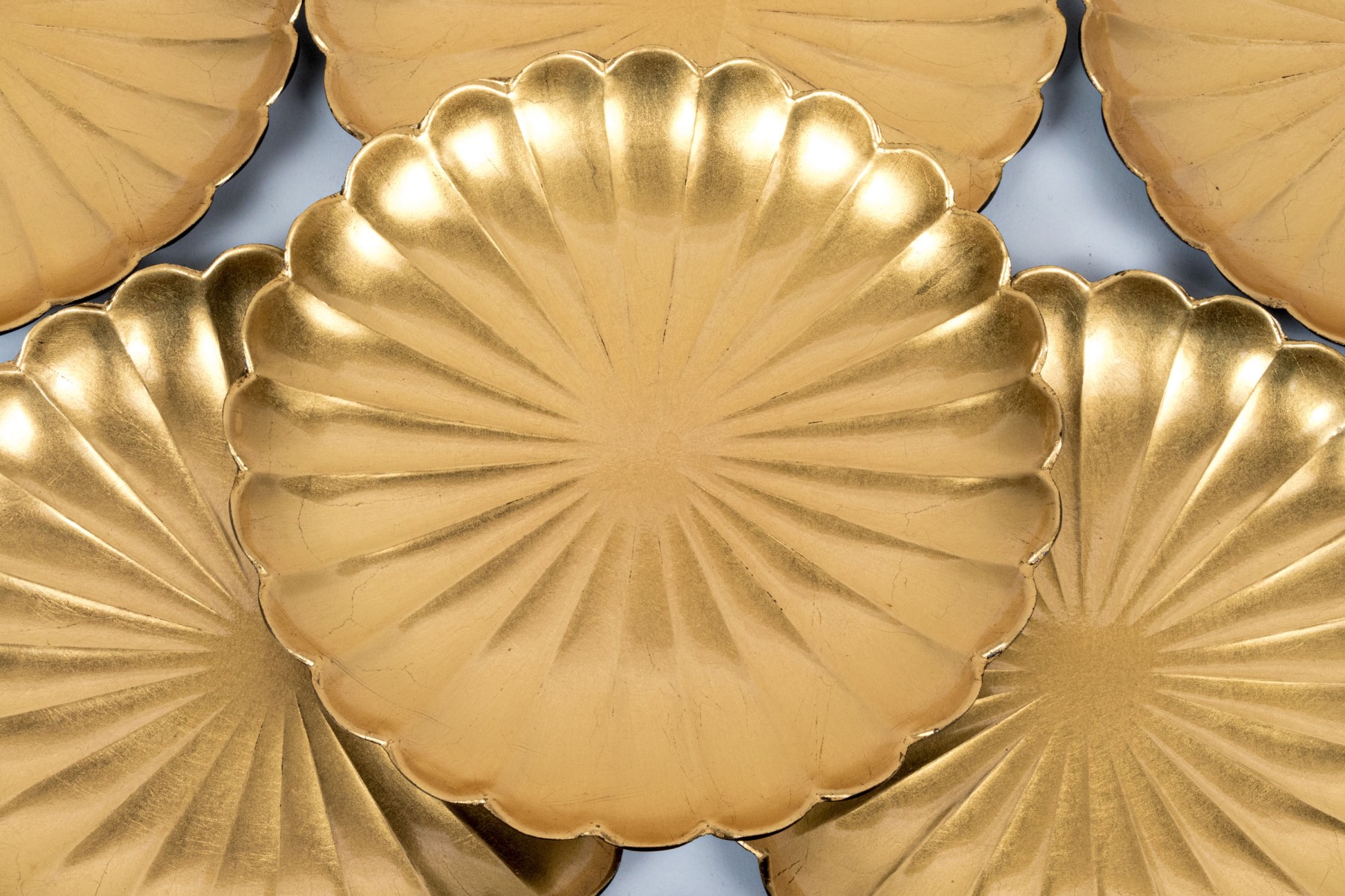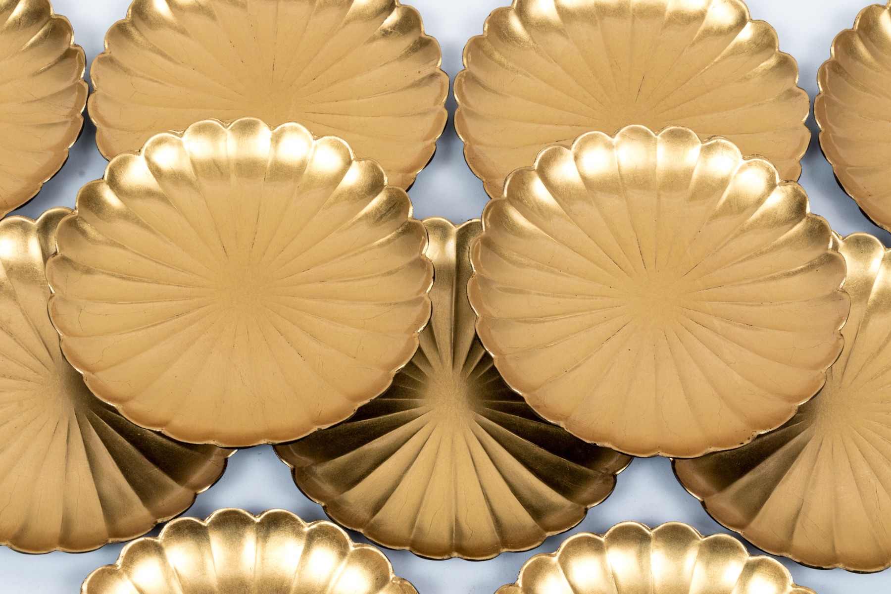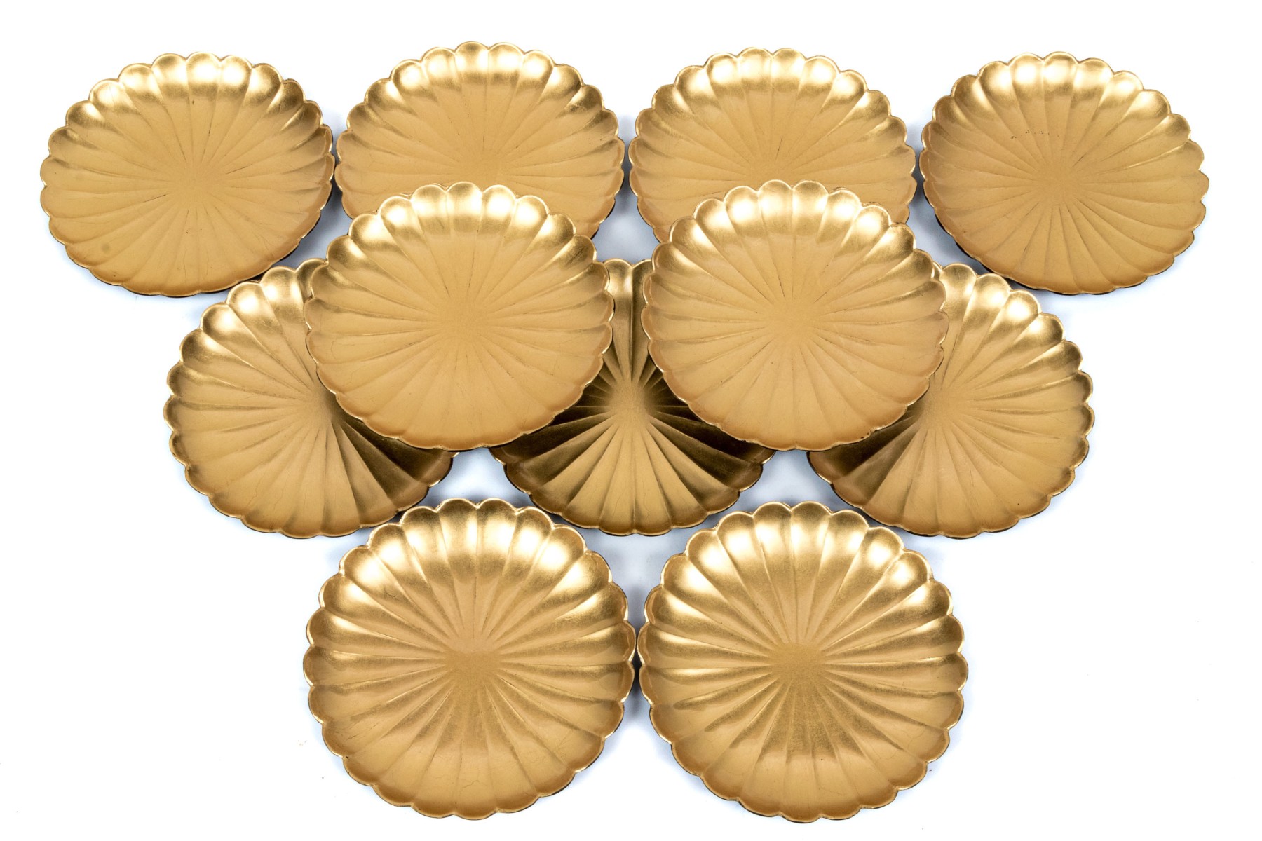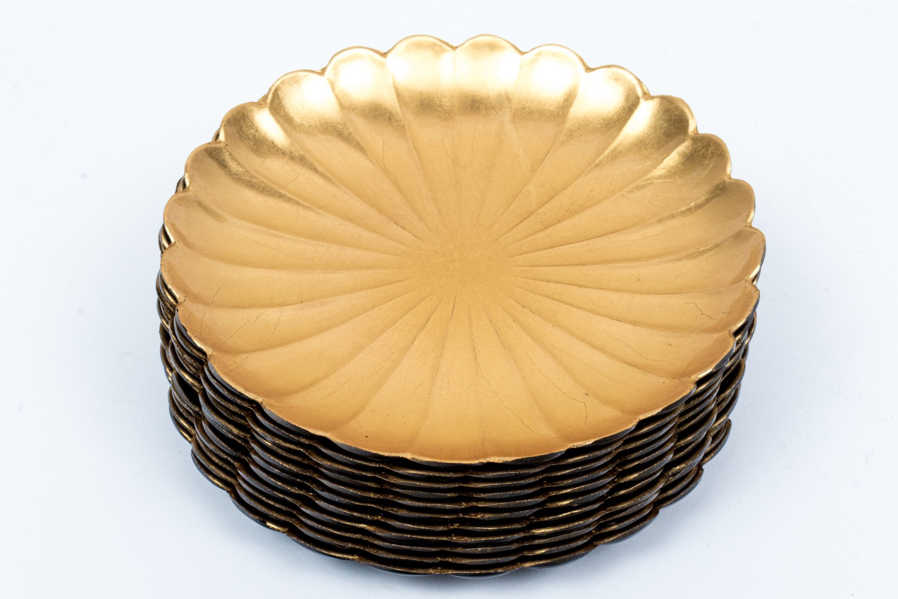 A fantastic and decorative set of 11 Japanese lacquered chrysanthemum form plates.
