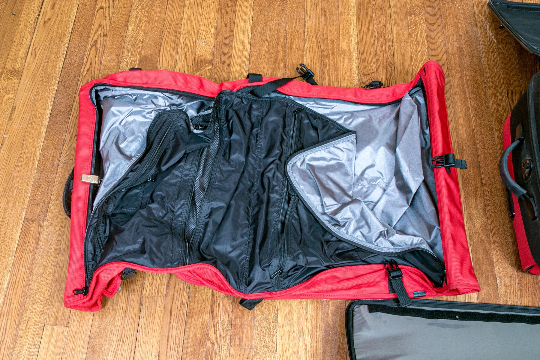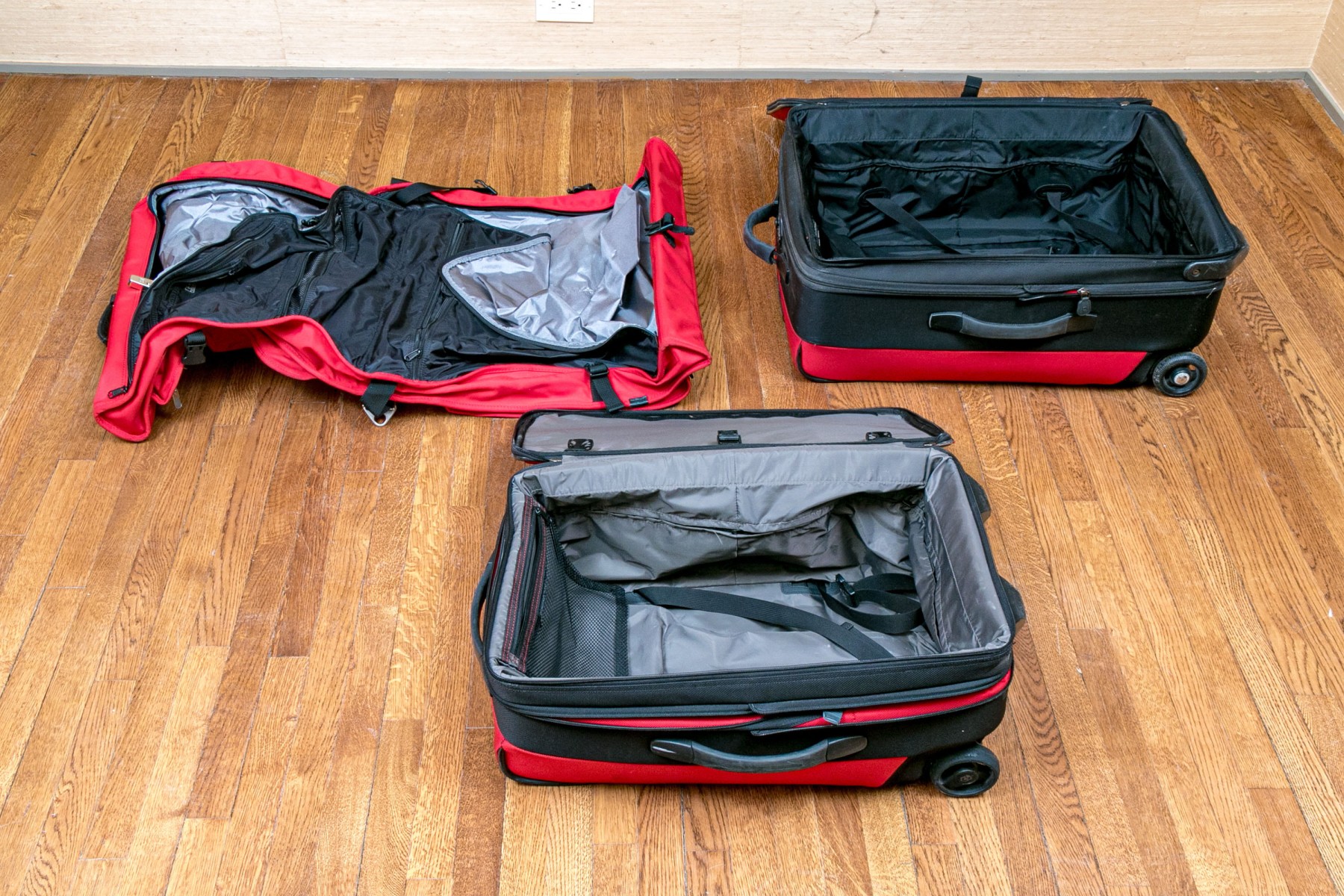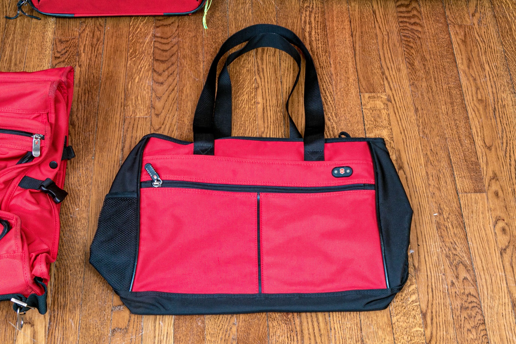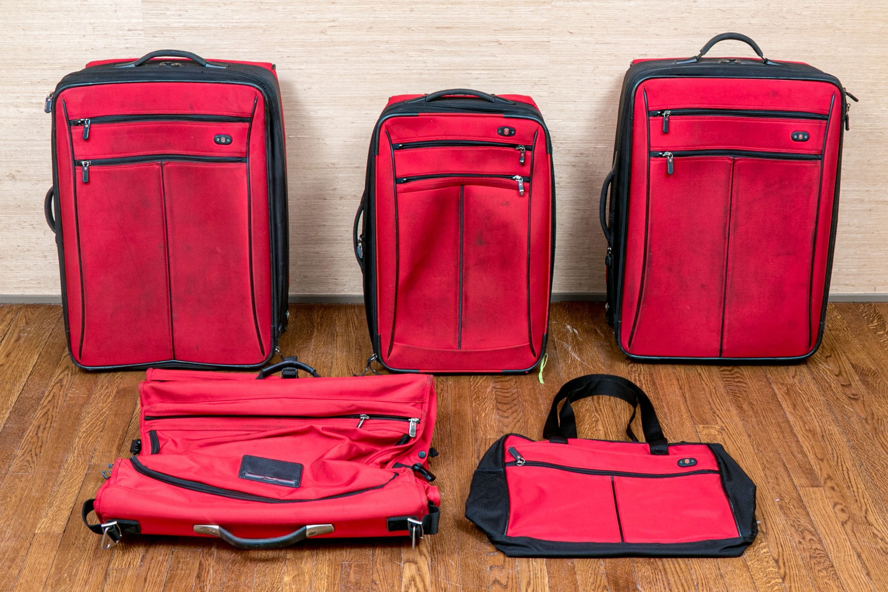 This 5 piece luggage collection includes a pair of larger rolling luggage bags, one slightly smaller rolling luggage bag. Together with a foldable carry on for garments, and finally a handy carry-on tote.