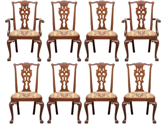 Set Of 8 Georgian Style Dining Chairs In Clarence House Fabric #170525. Black Rock Galleries provides high end estate liquidation services through online estate auctions and a 50,000 sq ft designer showroom. estate liquidator, estate sale, online auction, antiques, fine art, liquidation, clean outs, auction, consignment, interior design, fine jewelry, collectibles, appraisals, estate appraisals, estate services, decor, furniture, furniture consignment, antique center, consignment shop. We offer appraisal services and specialize in fine art, jewelry, antiques and decorative arts. Sell with us. Black Rock Galleries is the tri-state's largest estate liquidator serving New England and the greater New York City area. We are the trusted source for expert appraisals, auction services, estate sales, and consignments. Black Rock Galleries is the east coast's largest and most trusted estate liquidator, with locations in Connecticut, greater Boston, MA and Raleigh, NC, Fairfield, Southport, Apex, TX. We are the best source for expert appraisals, auction services, estate sales and consignments. We have served thousands of families and estates with compassion, professionalism and expertise. BRG works with attorneys, executors, realtors and families to bring the greatest return on personal and estate property in the current market. Our unique combination of services make us the easy choice to get the job done in a timely and stress-free manner. We are with you from the initial consultation to the final clean out. Our house-built online auction software platform offers clients a dynamic approach to liquidating their personal property. This venue is most successful in bringing the best return with the least amount of disruption for our clients. See our services page for a complete description of this offering. Set Of 8 Georgian Style Dining Chairs In Clarence House Fabric #170525